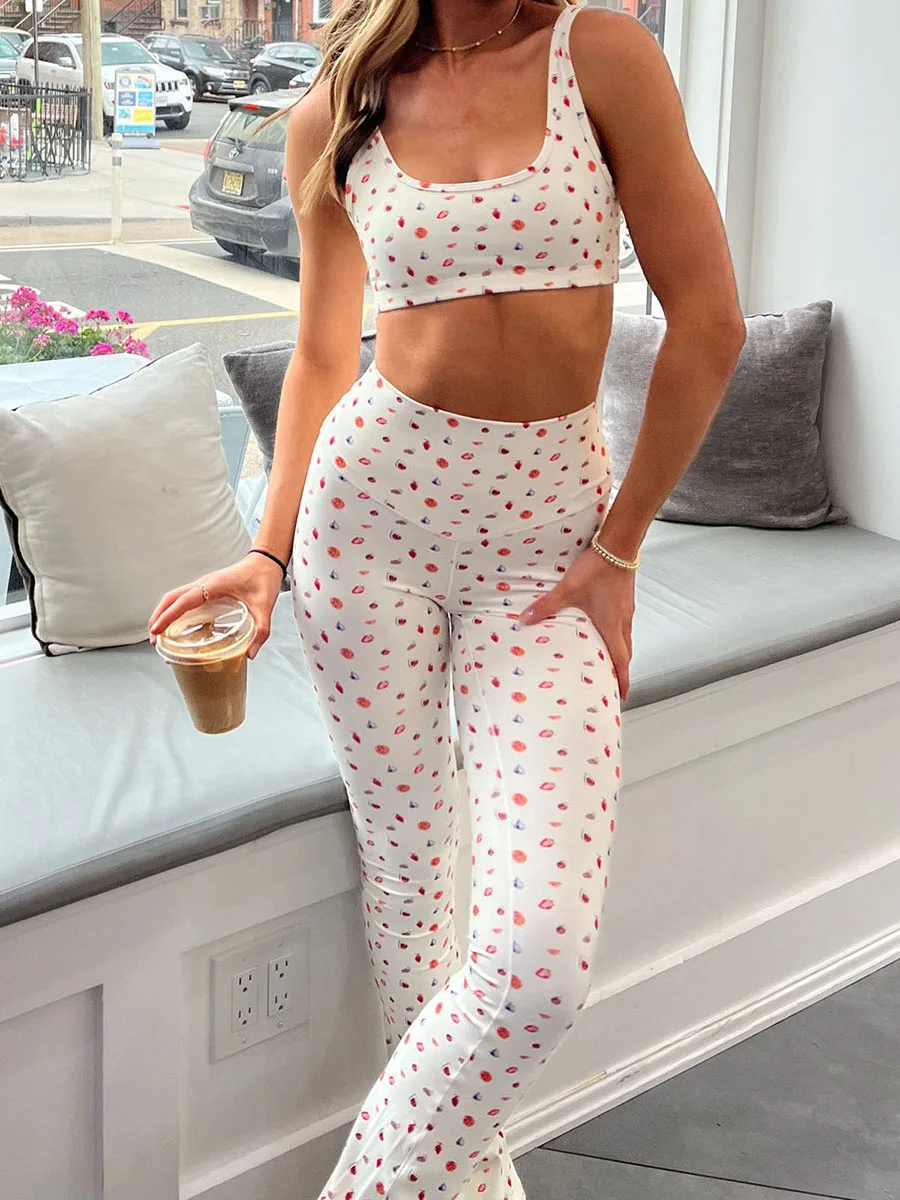 Cyflymder Women's Summer Two Piece Yoga Sportswear Plaid Bow Print U-Neck Bra with High Waist Slim Leggings Set Y2K Streetwear