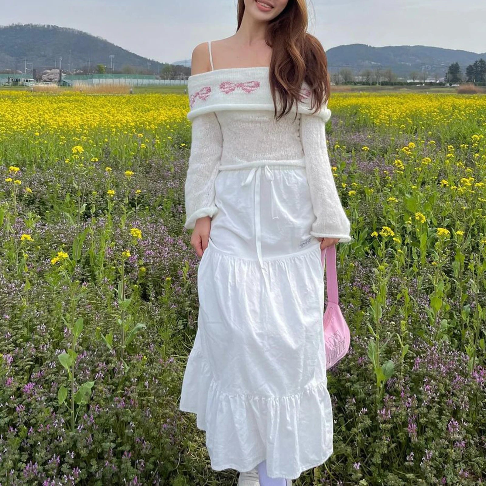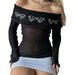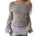 Cyflymder Women's Y2K Cute Off Shoulder Sweaters Chest Folding Slash Neck Flare Long Sleeve Slim Fit Knitted See-through Tops