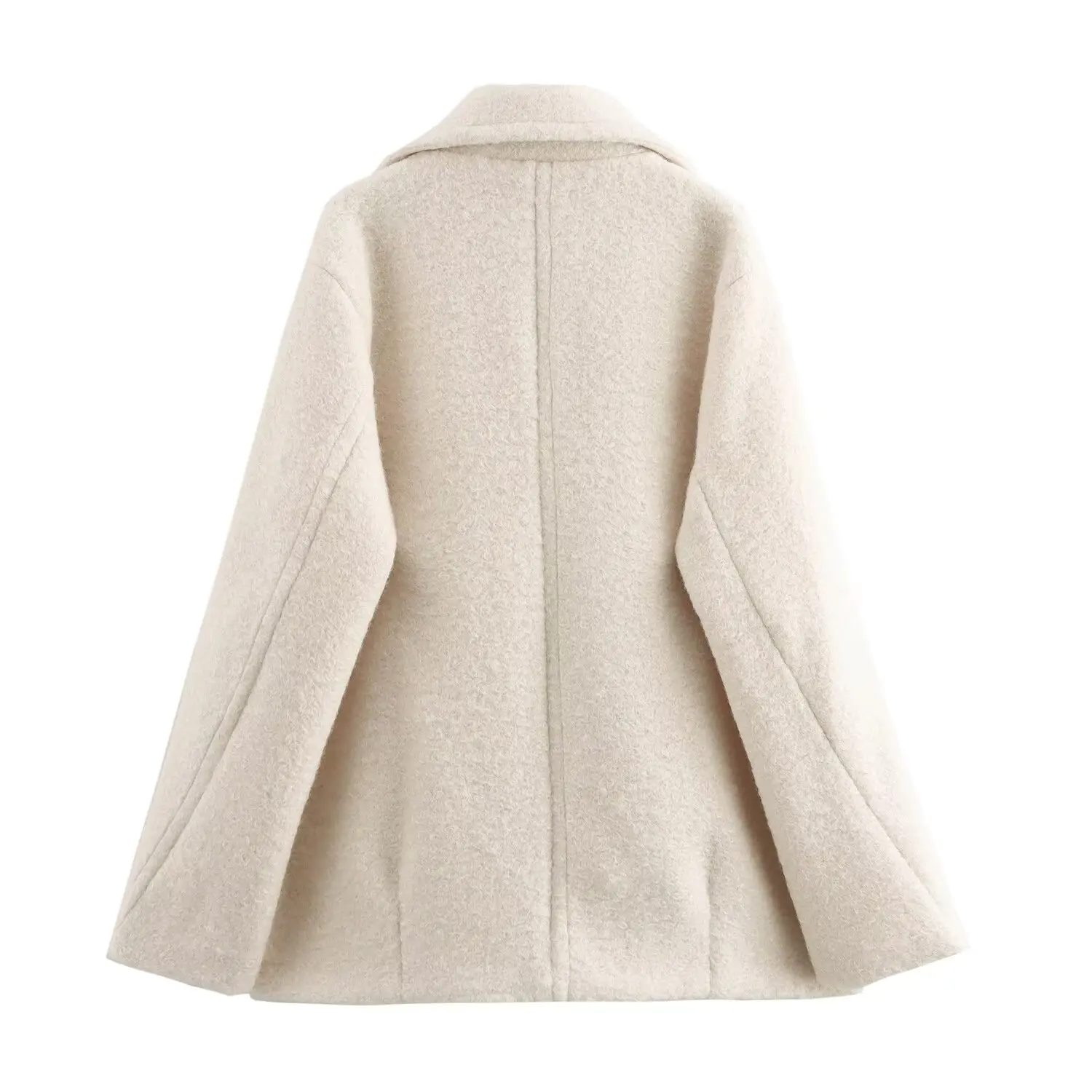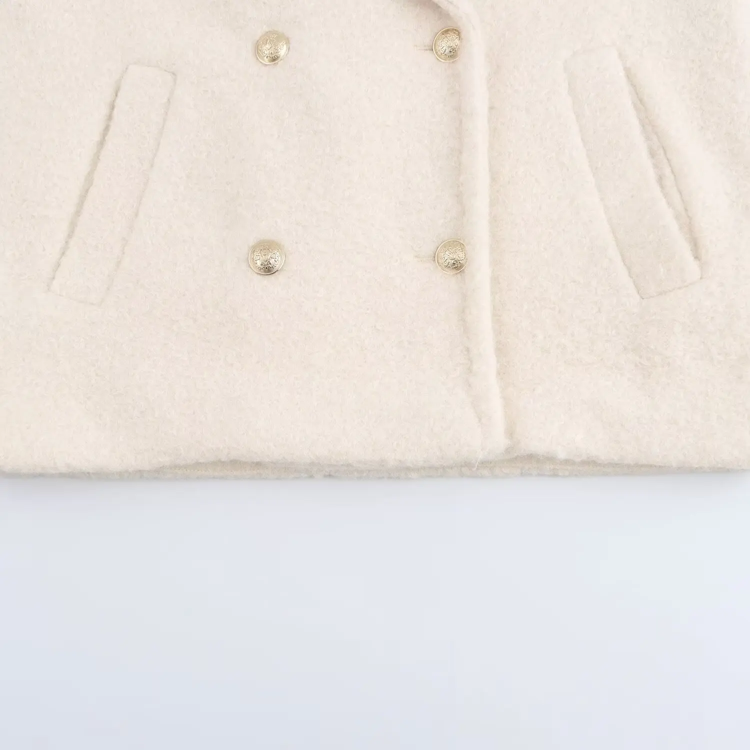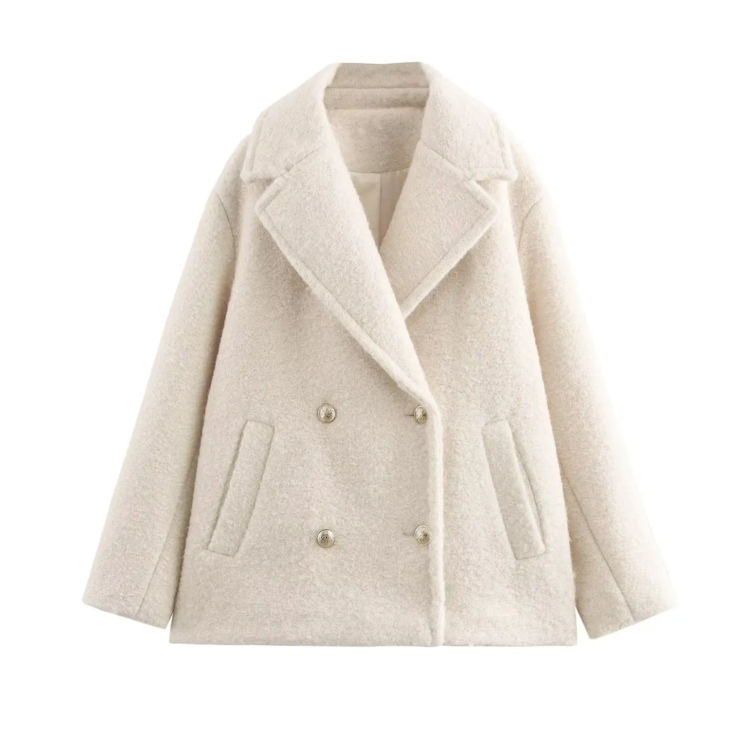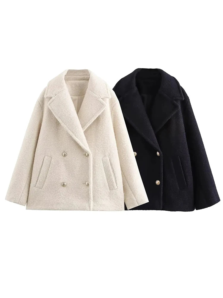 Cyflymder Wool Blend Double-Breasted Coats Women 2025 New Autumn Winter Fashion Solid Lapel Elegant Long Sleeve Warm Short Jacket Coats