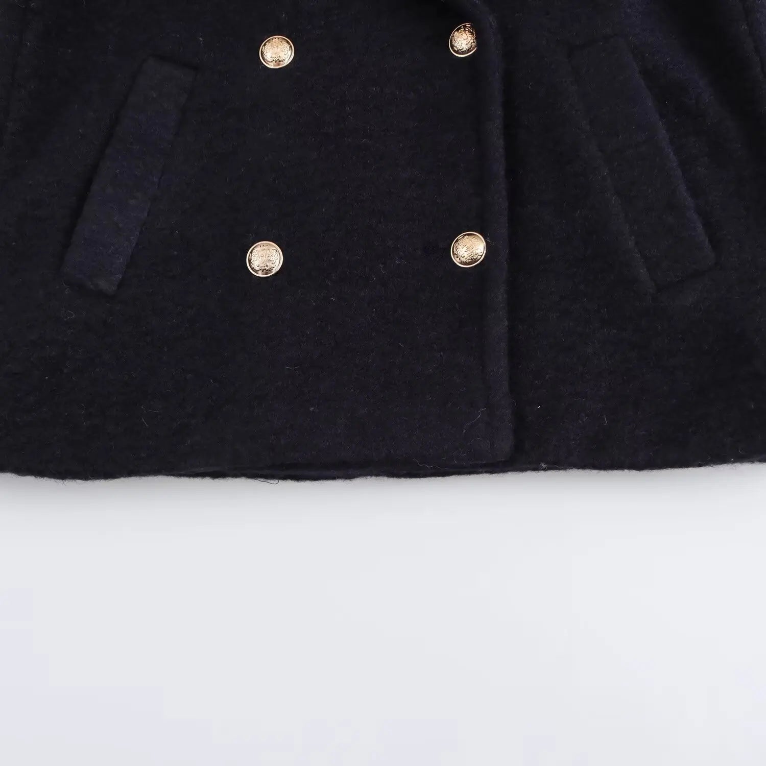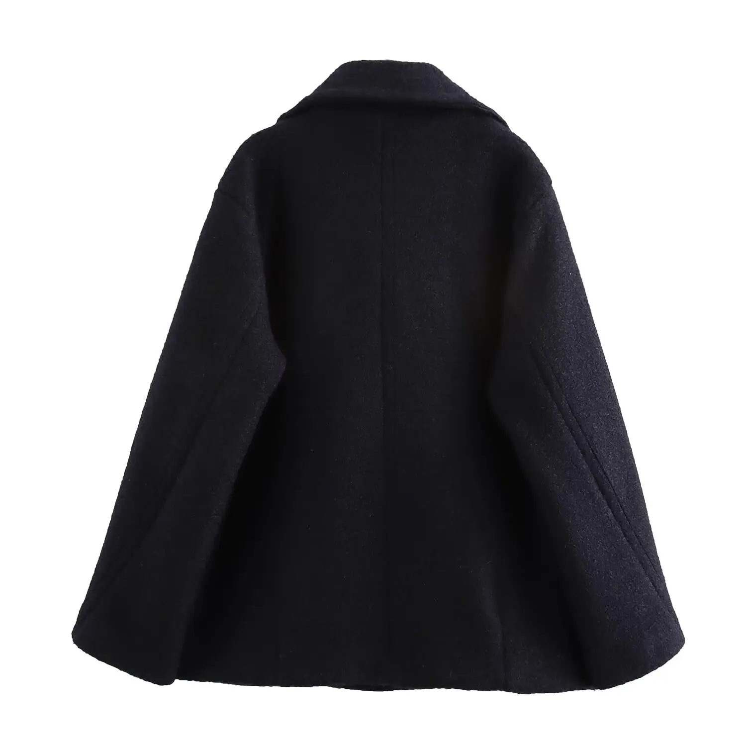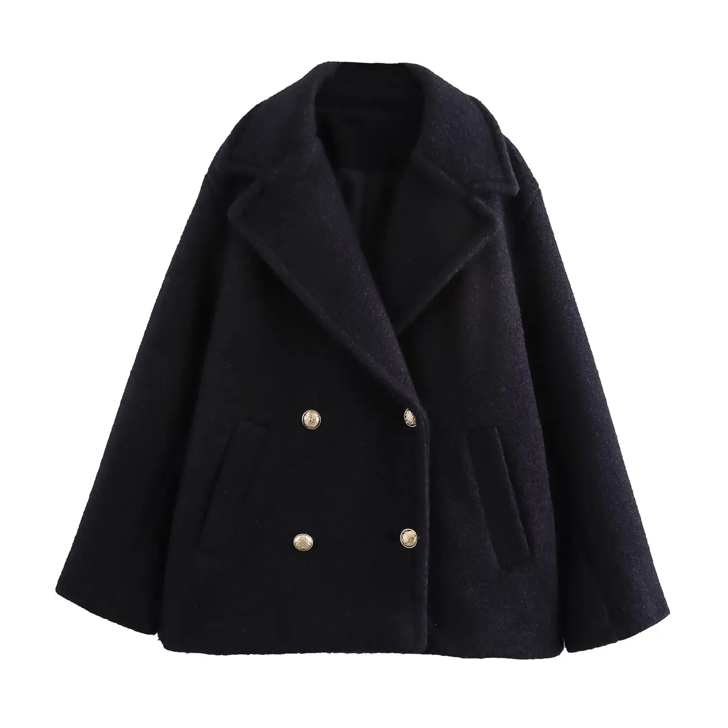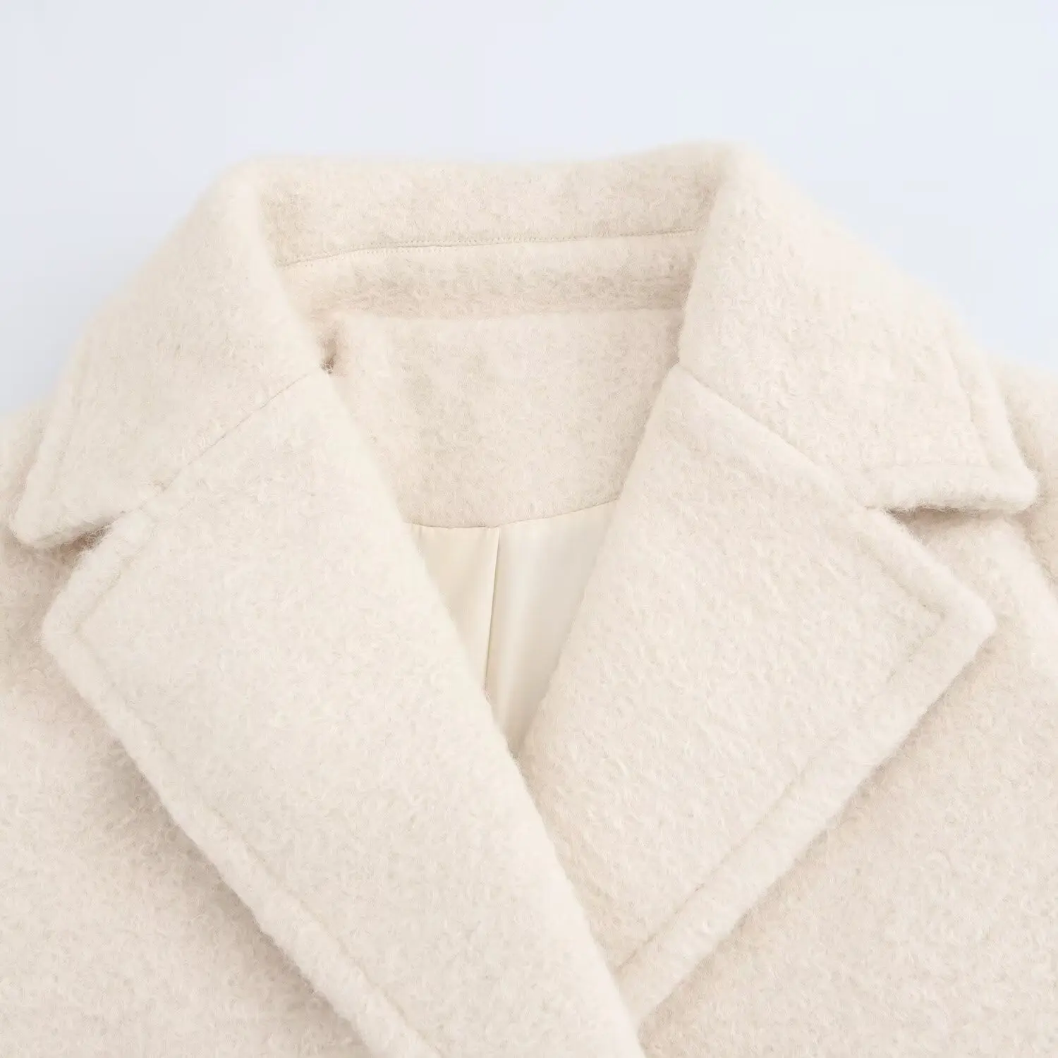 Cyflymder Wool Blend Double-Breasted Coats Women 2025 New Autumn Winter Fashion Solid Lapel Elegant Long Sleeve Warm Short Jacket Coats