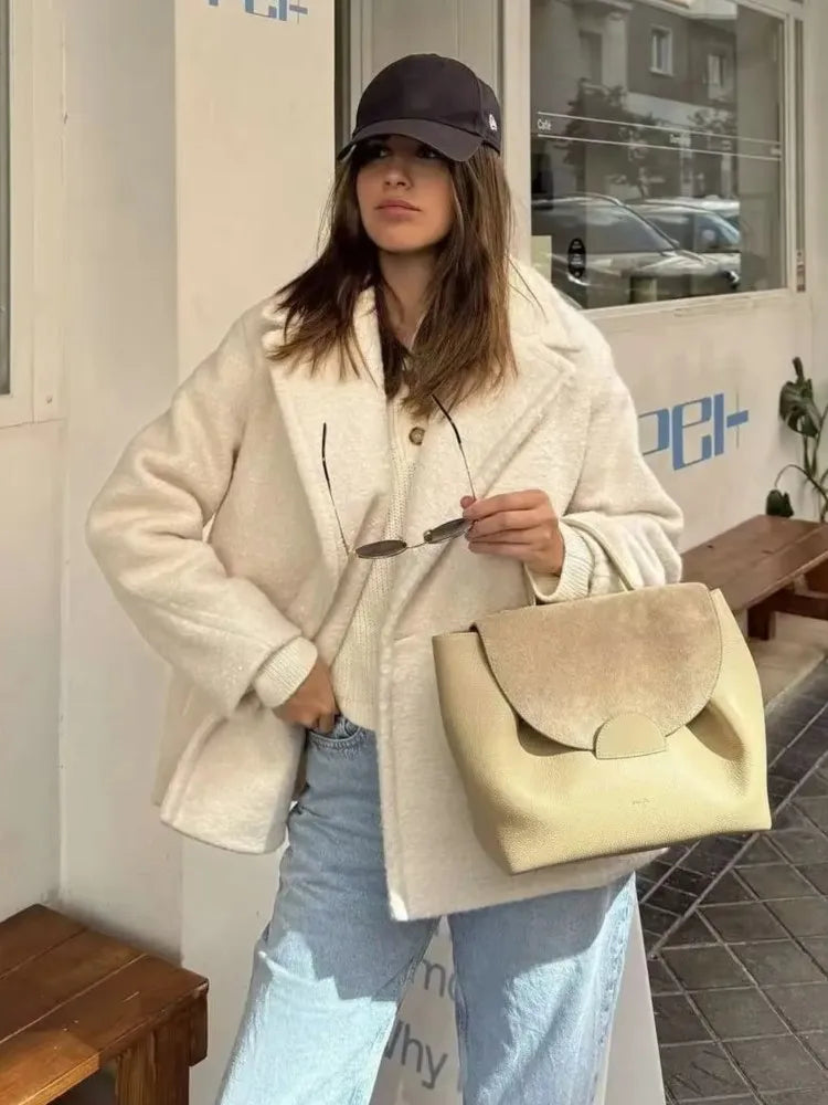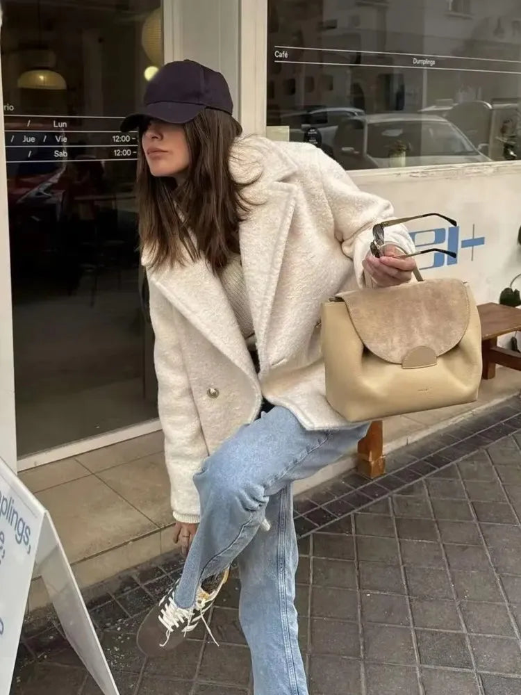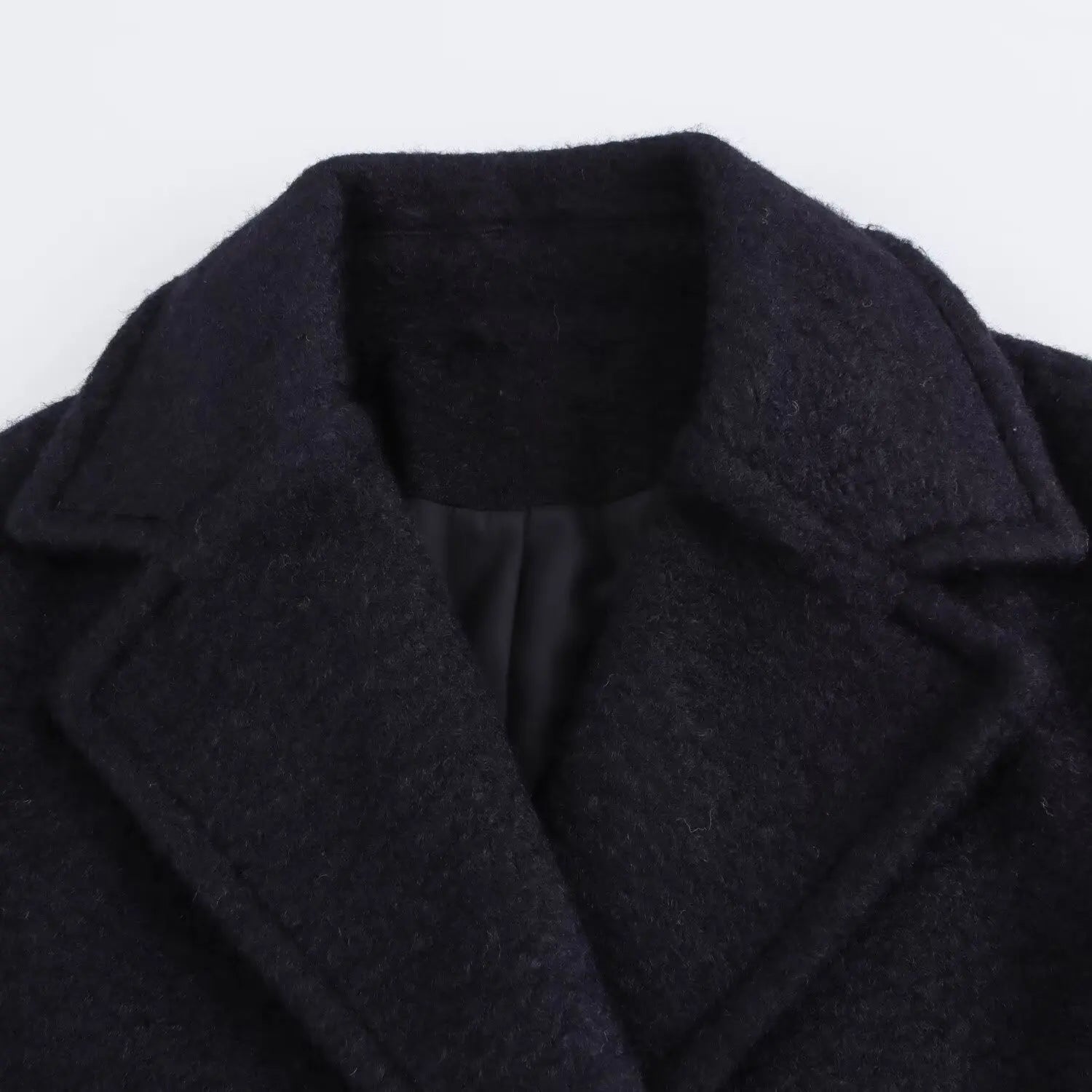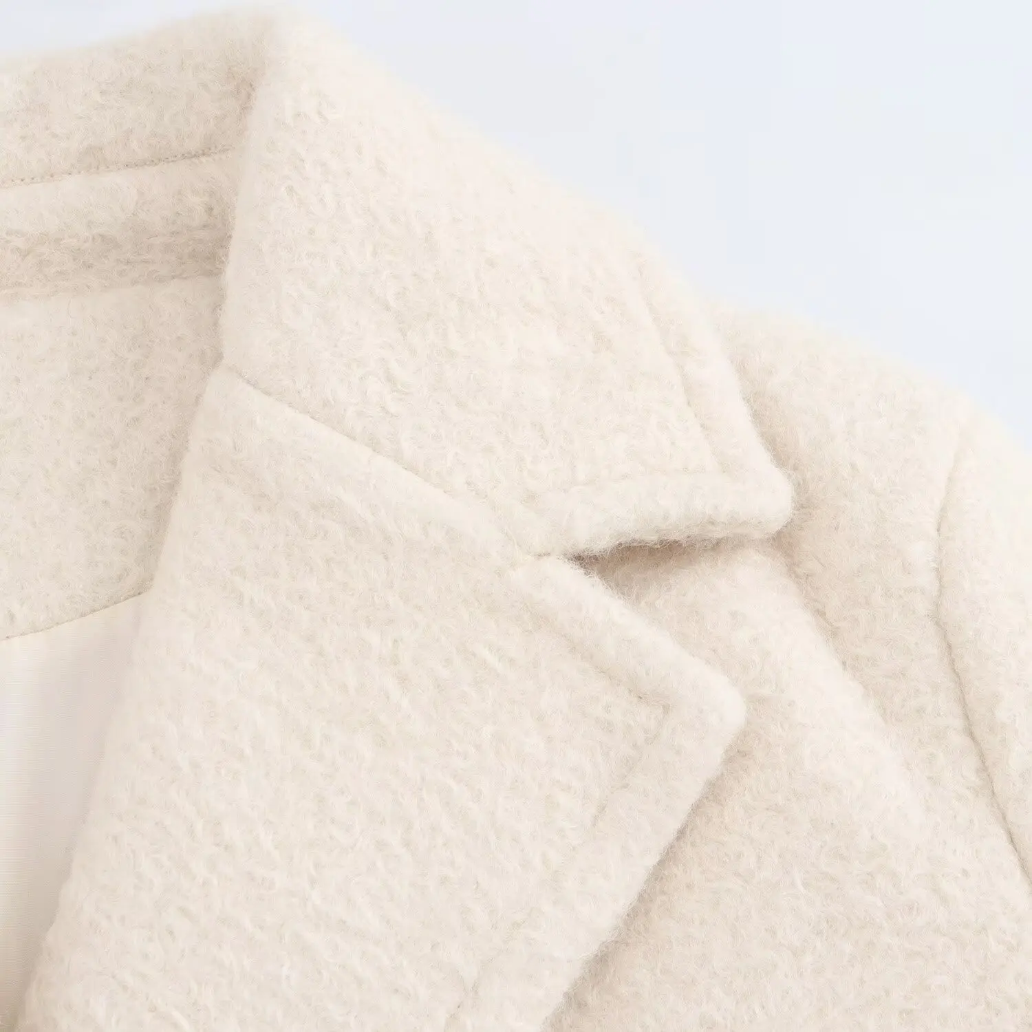 Cyflymder Wool Blend Double-Breasted Coats Women 2025 New Autumn Winter Fashion Solid Lapel Elegant Long Sleeve Warm Short Jacket Coats