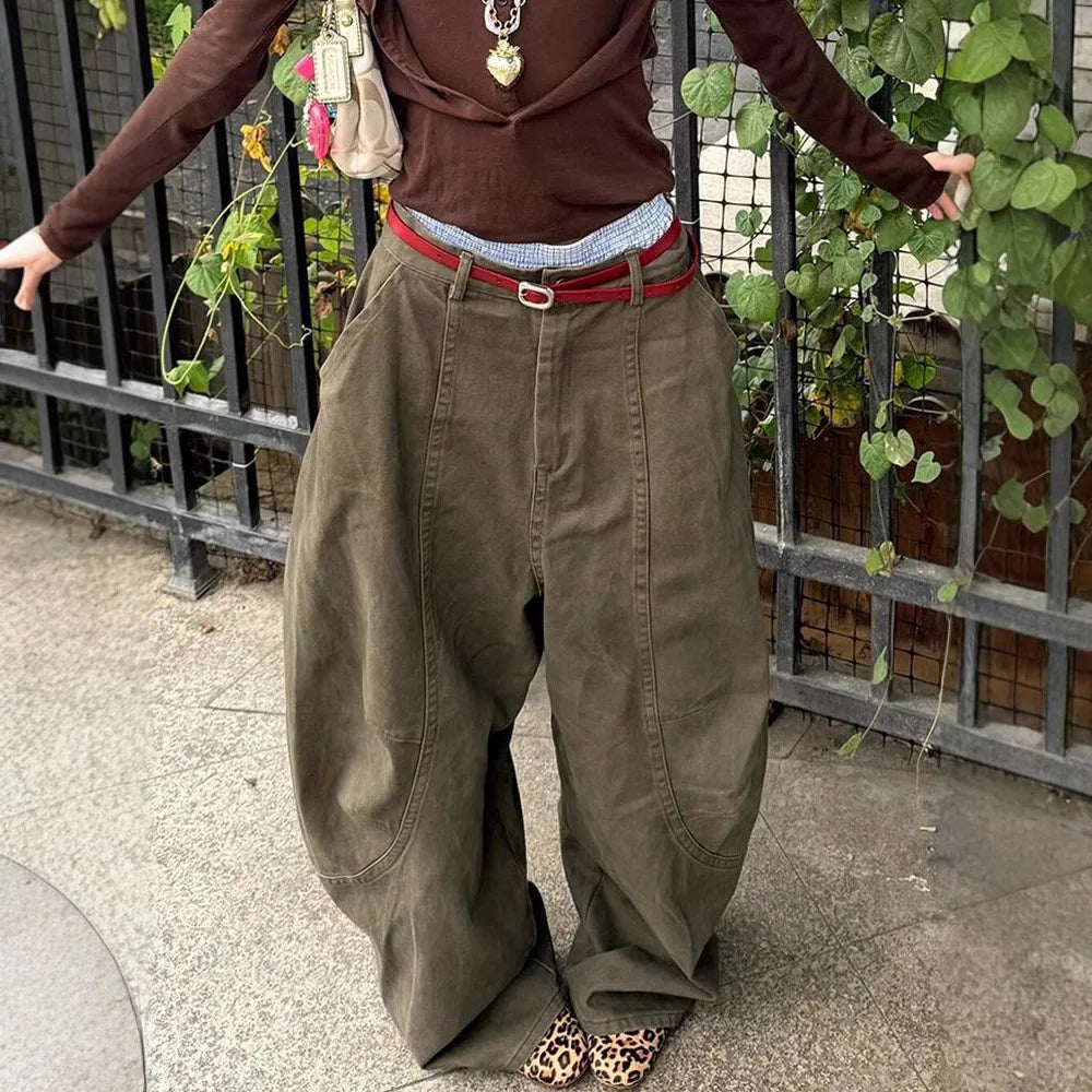 Cyflymder Y2K American Large Size Waed Knife Jeans Women's New Sle Spicy Bf Retro Floor Length Wide Leg Pants Casual High Waist