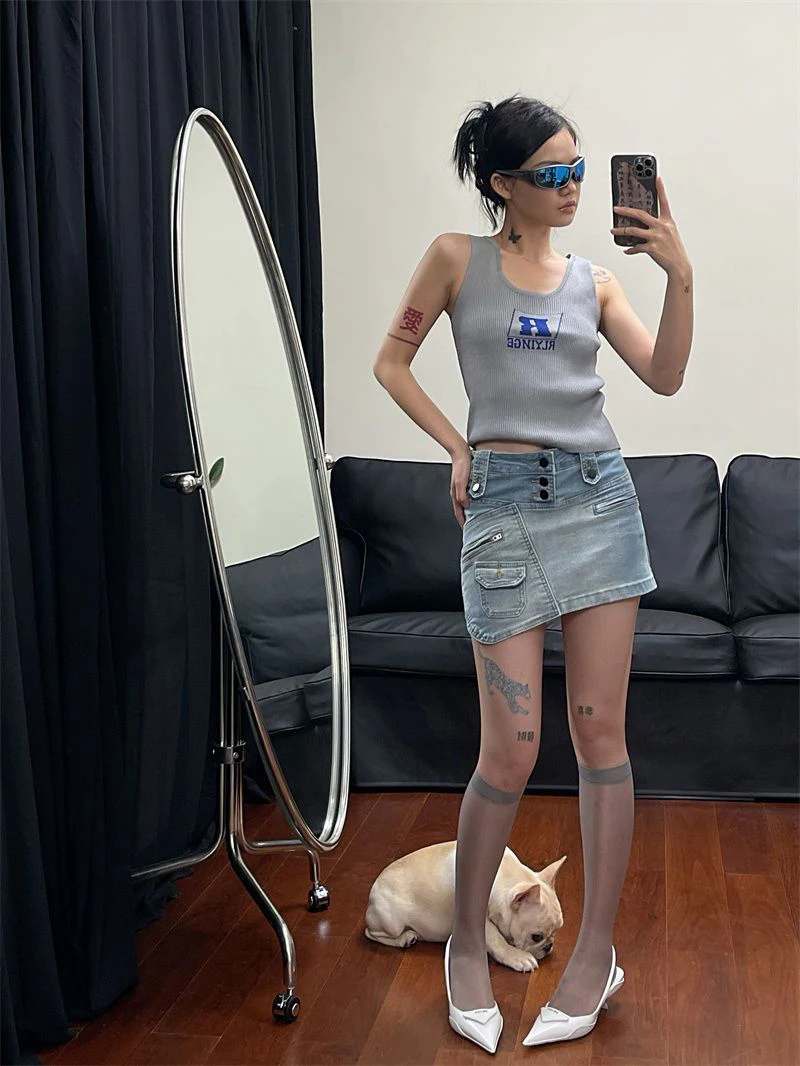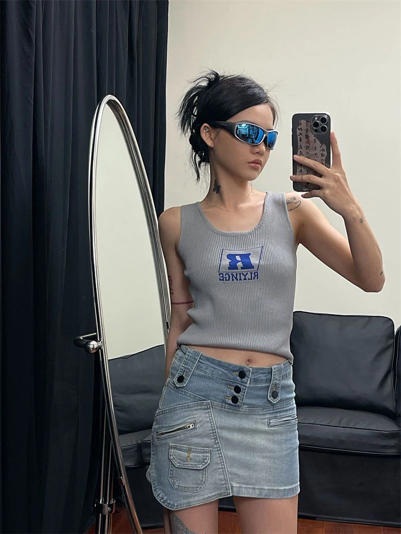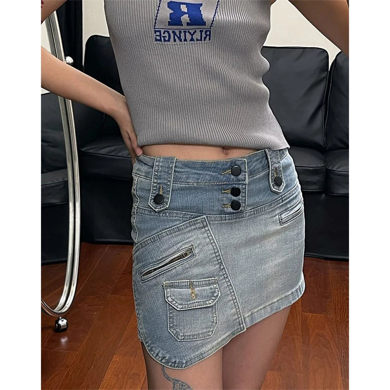 Cyflymder Y2K Cargo Denim Mini Skirt Women Vintage 90S Washed Hip Wrap Skirts Summer Streetwear Korean Sexy Gyaru High Waist Design Faldas