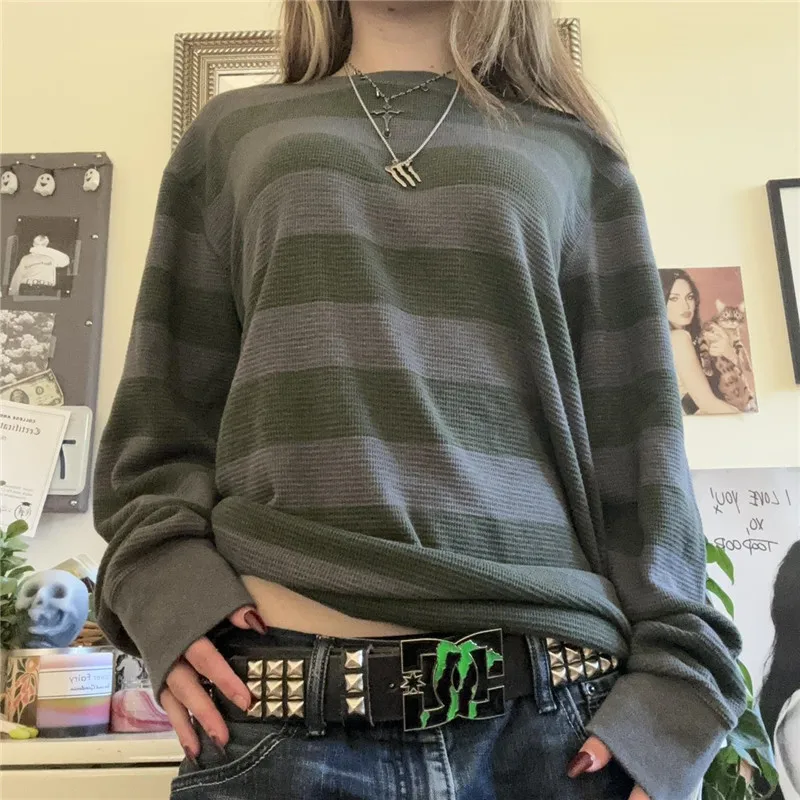 Cyflymder Y2k Grunge Shirt Vintage Aesthetic Graphic Baggy Long Sleeve Top Women Teen Girl Emo Harajuku Gothic Oversized Tee
