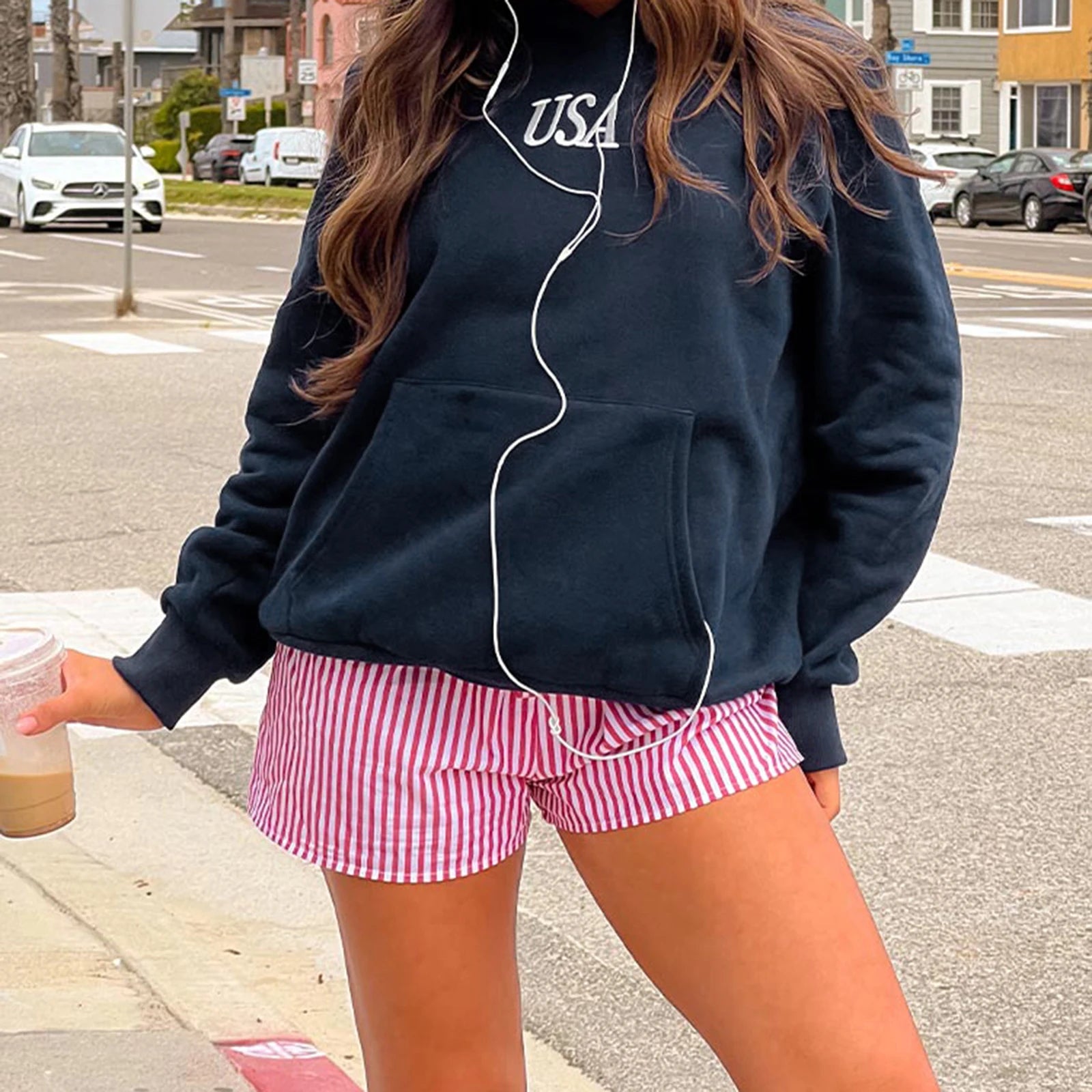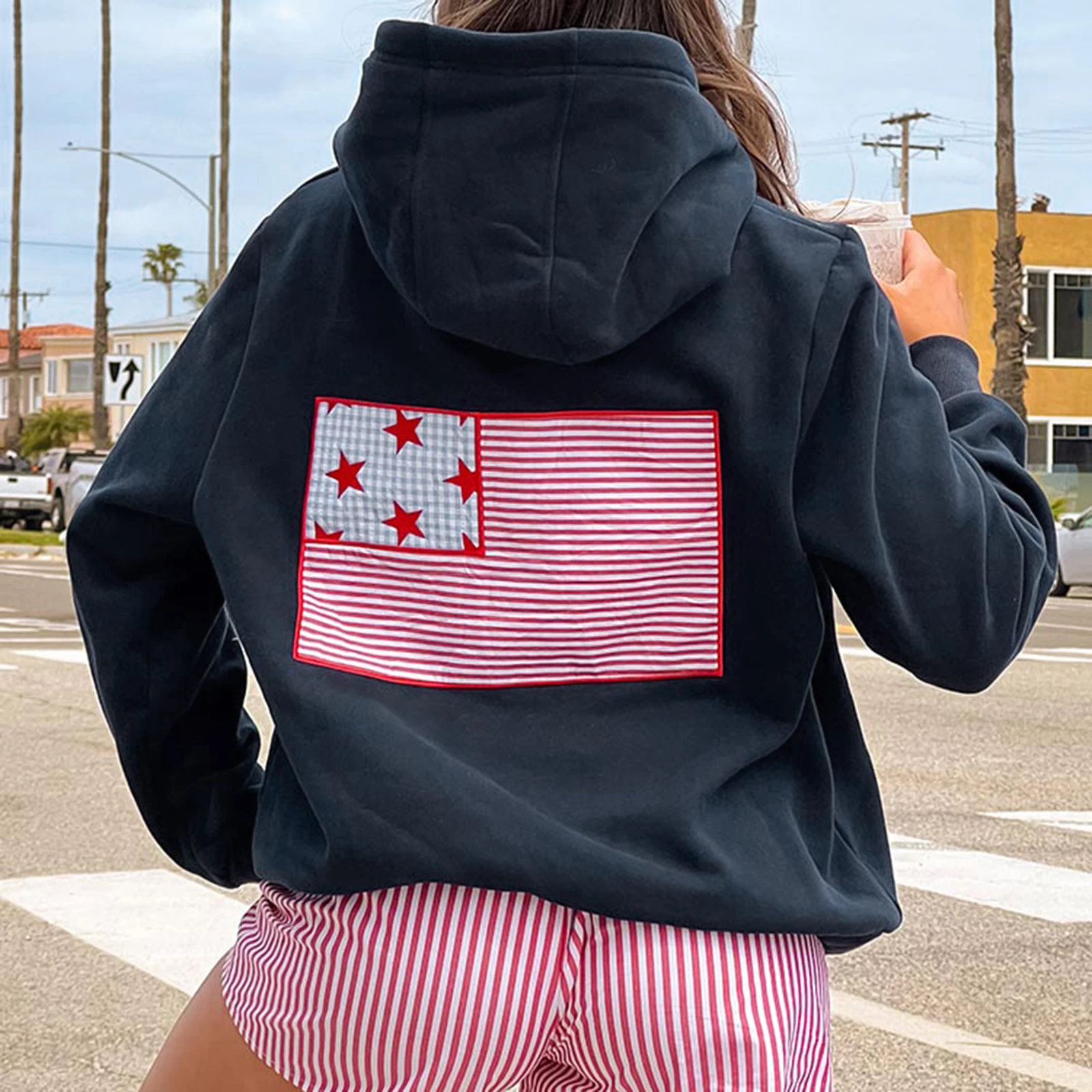 Cyflymder y2k Hoodies Sexy Women Letter American Flag Embroidered Loose Fit Long Sleeve Hooded Sweatshirt with Pocket Streetwear