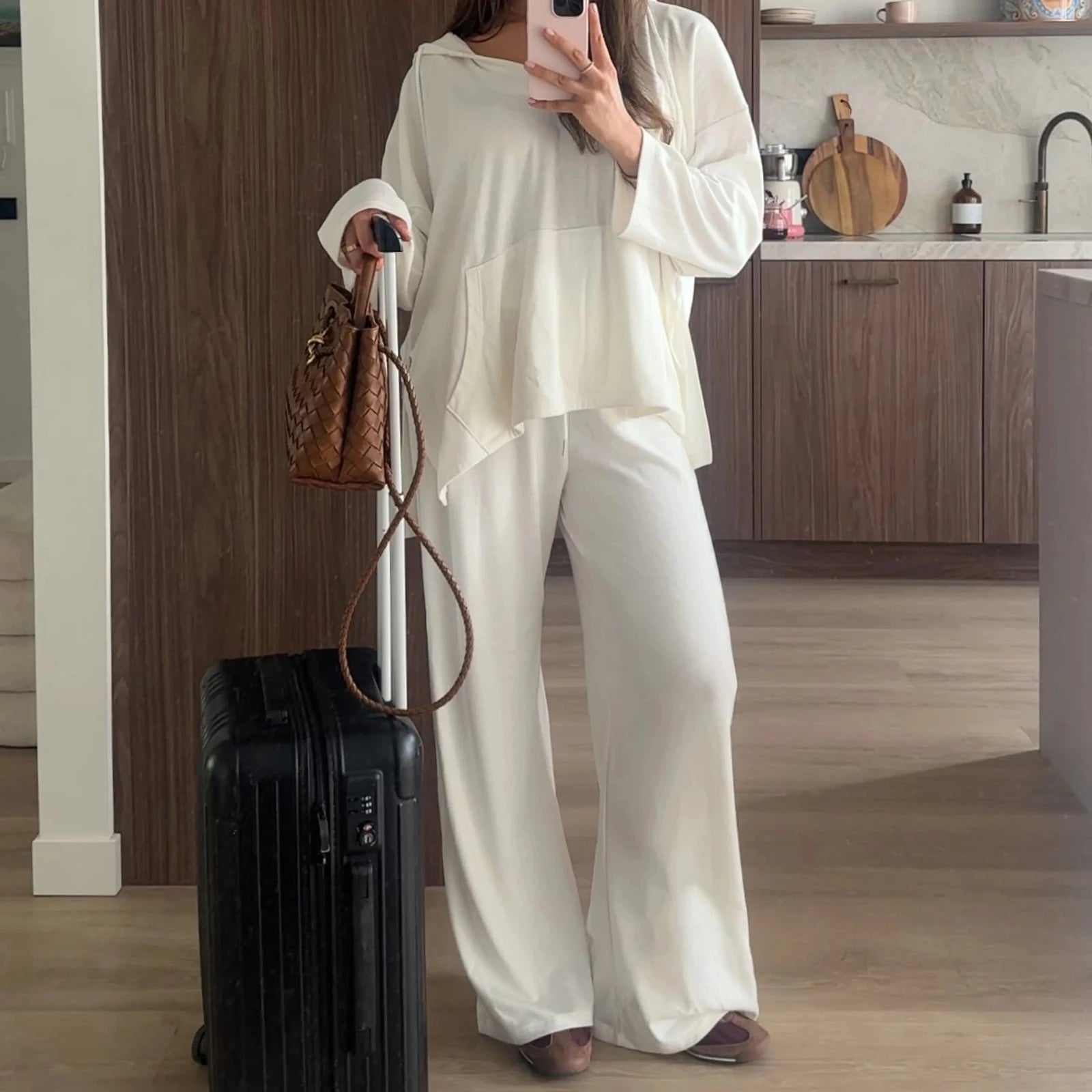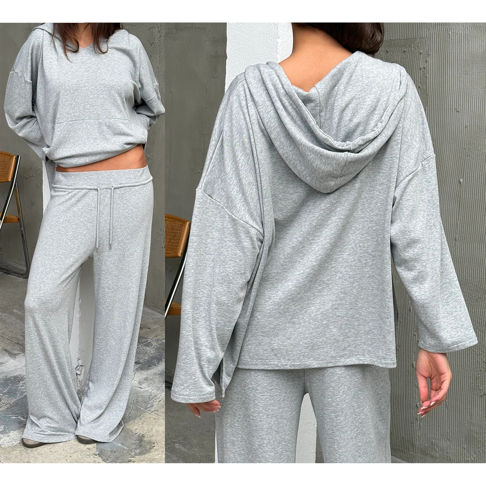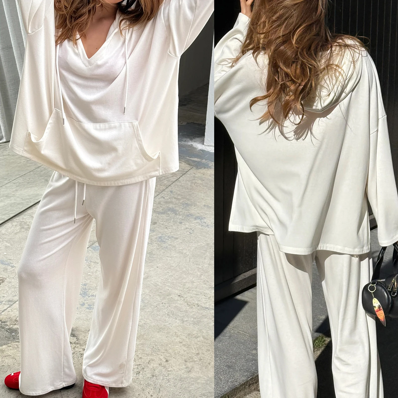 Cyflymder y2k Pants Set Women Fall Clothes Solid Color Long Sleeve Loose Fit Hoodie and Drawstring Pants with Pockets Activewear
