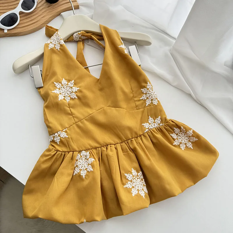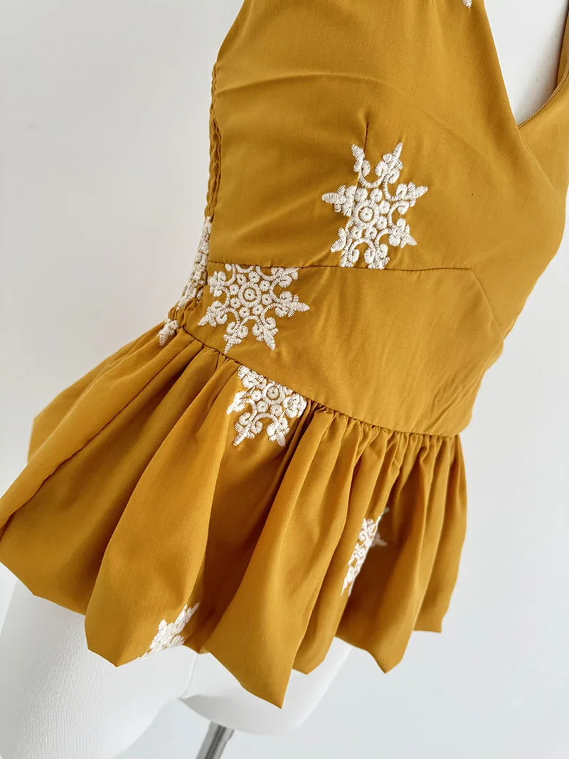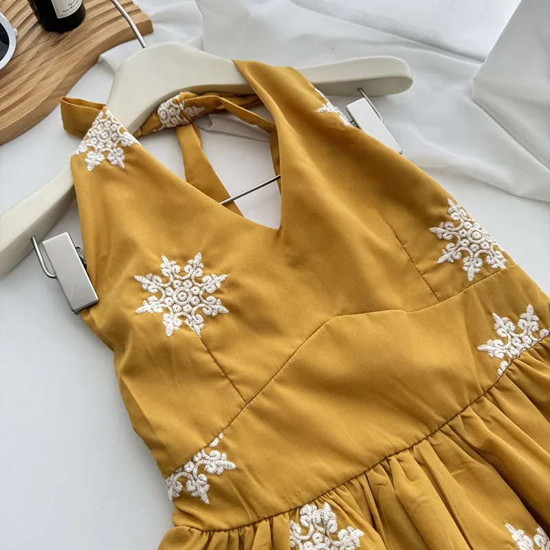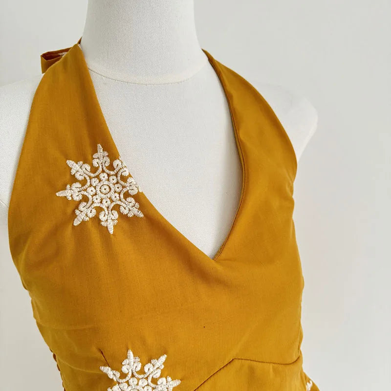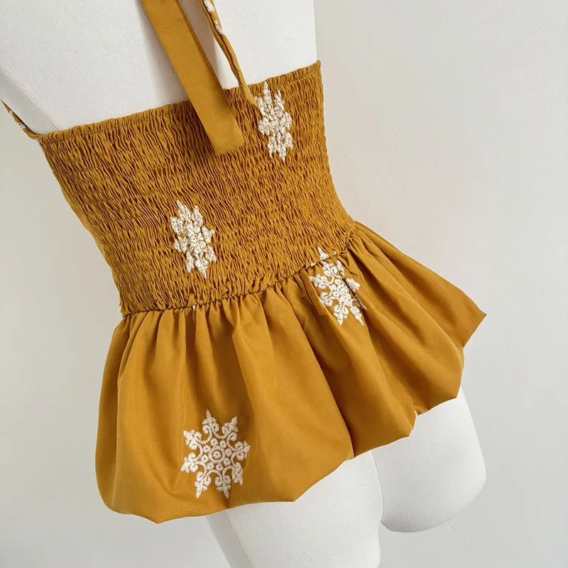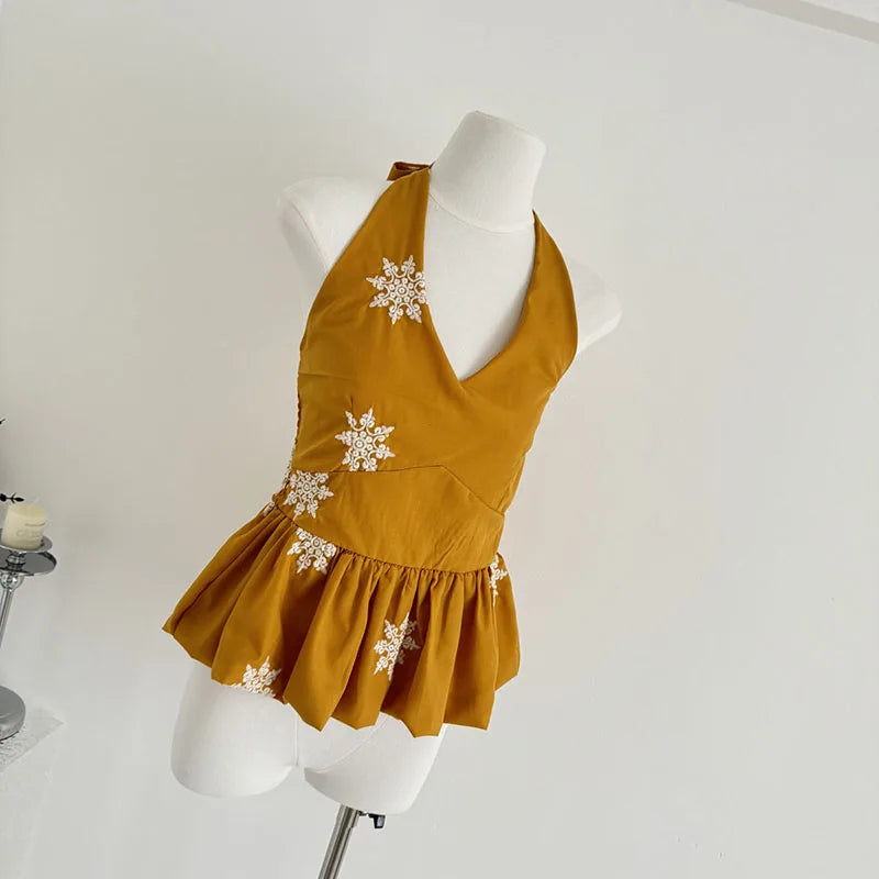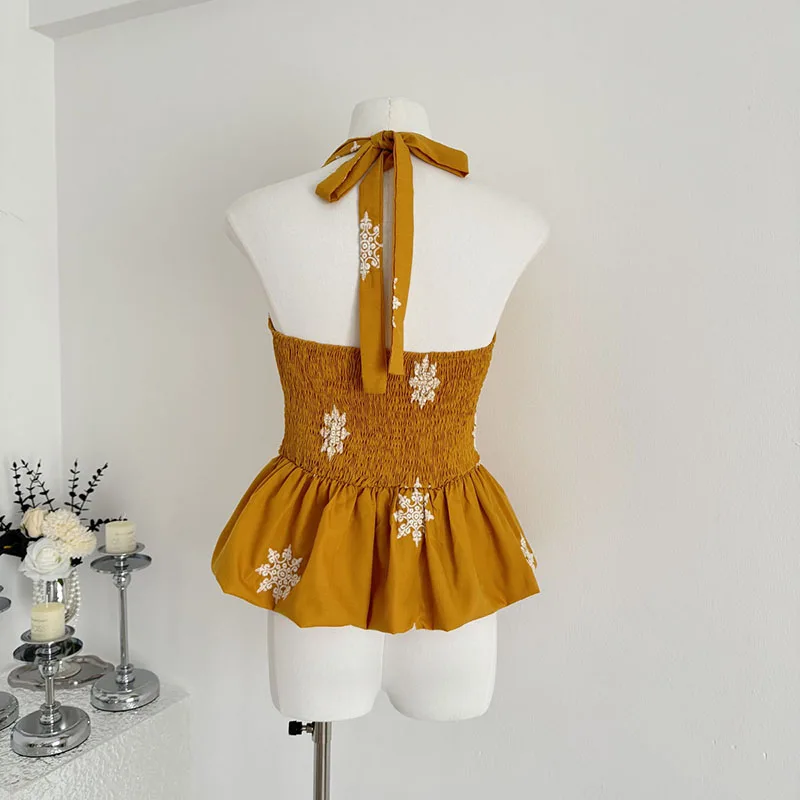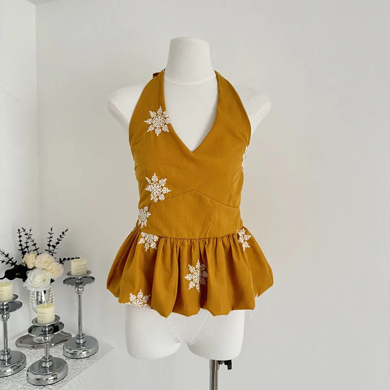 Cyflymder Y2K Sexy Halter Tops Women Embroidery Backless Tank Top Summer Gyaru V Neck Bandage Camis Korean Sleeveless Design Clothes New