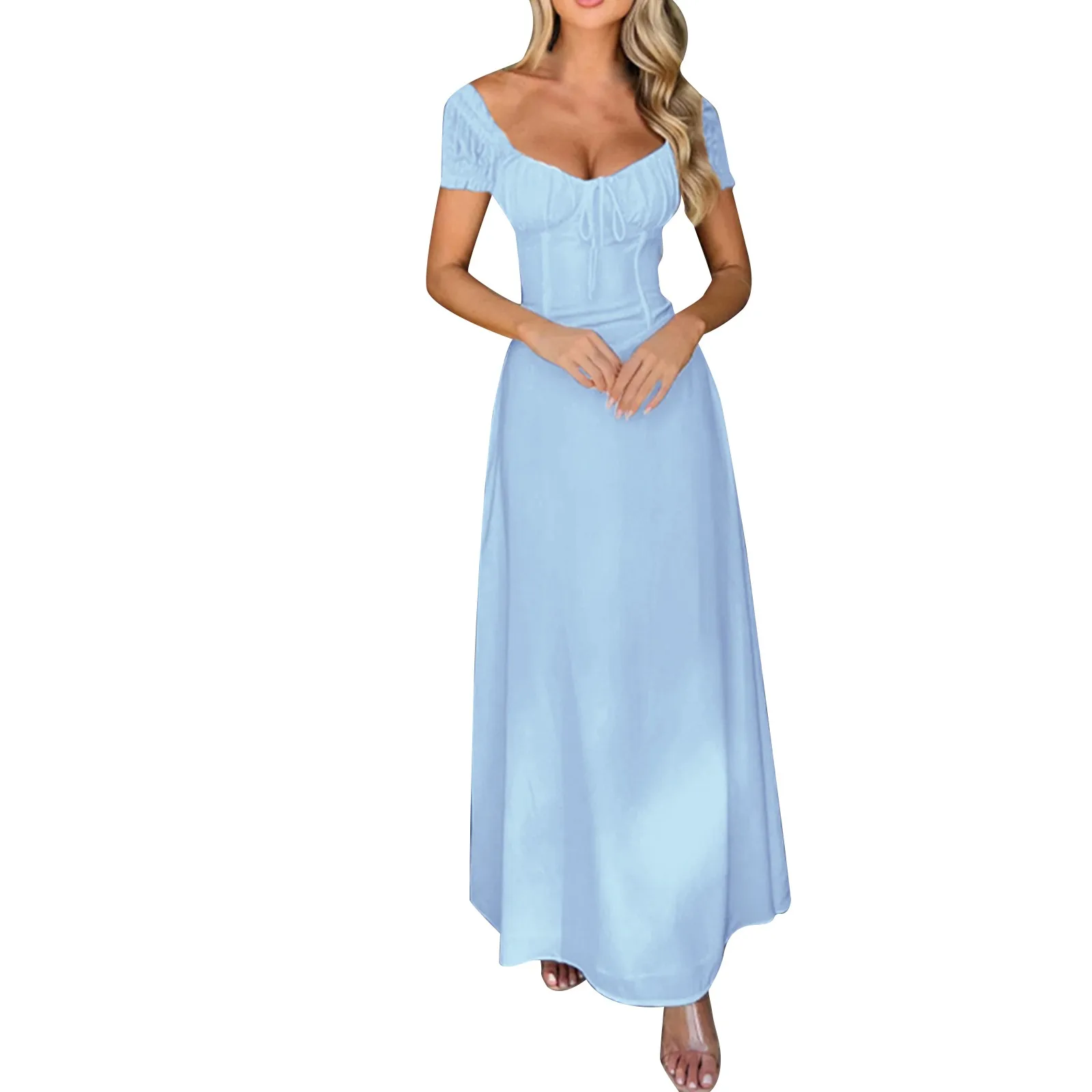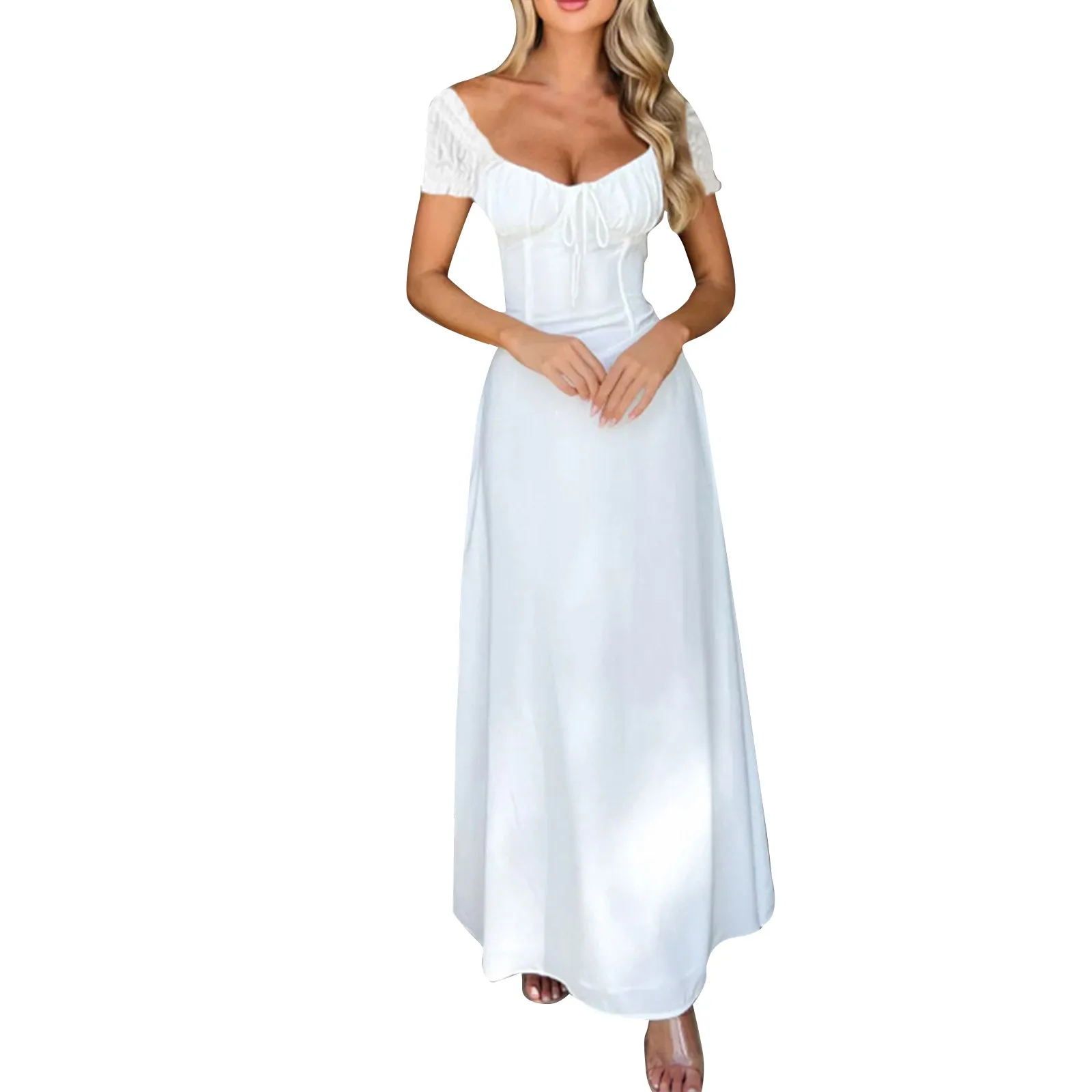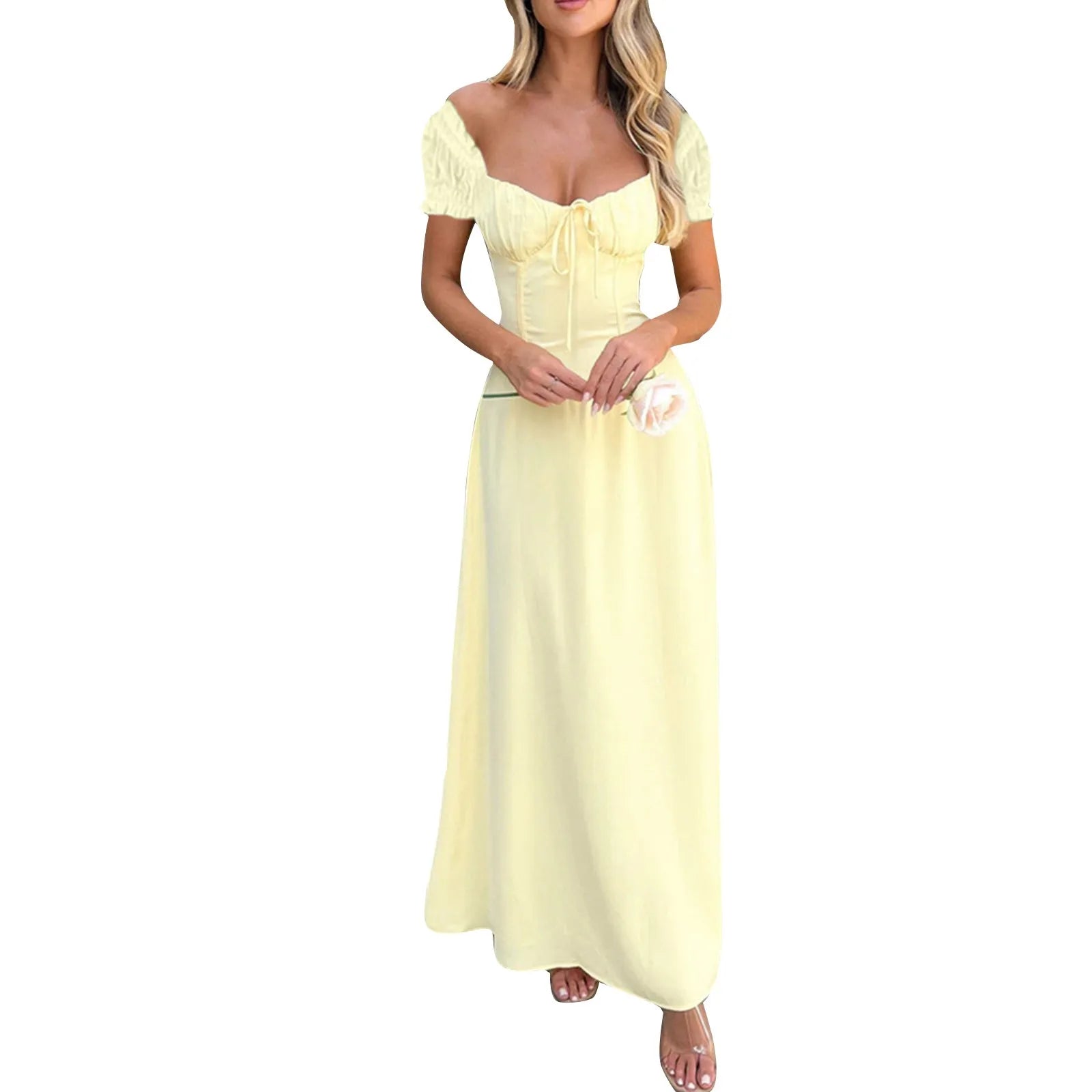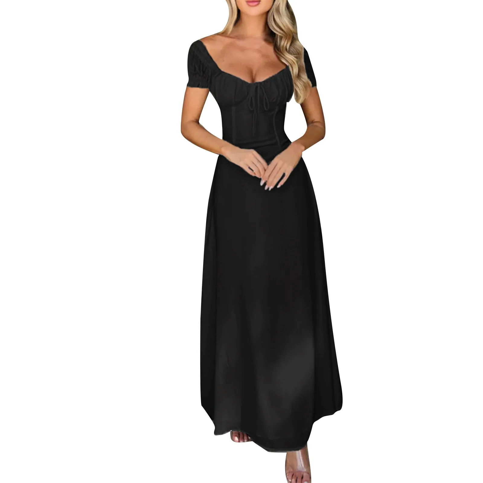 Cyflymder Y2K Sexy Women's Dresses Elegant Solid Color Summer Temperament Tie Drawstring Bubble Sleeve French Dresses Gothic Clothes ropa