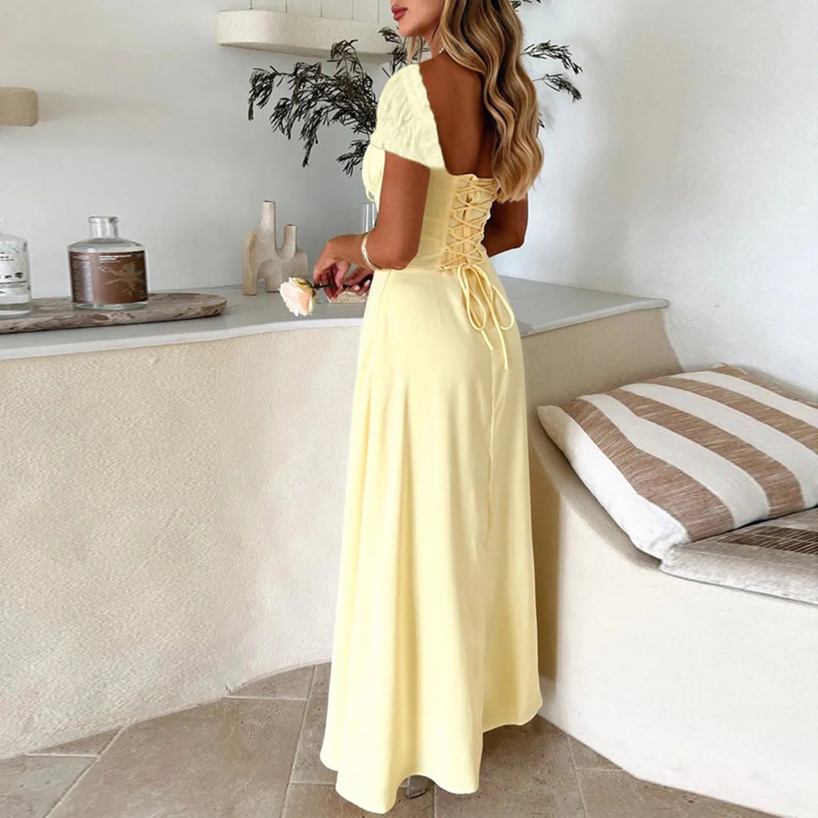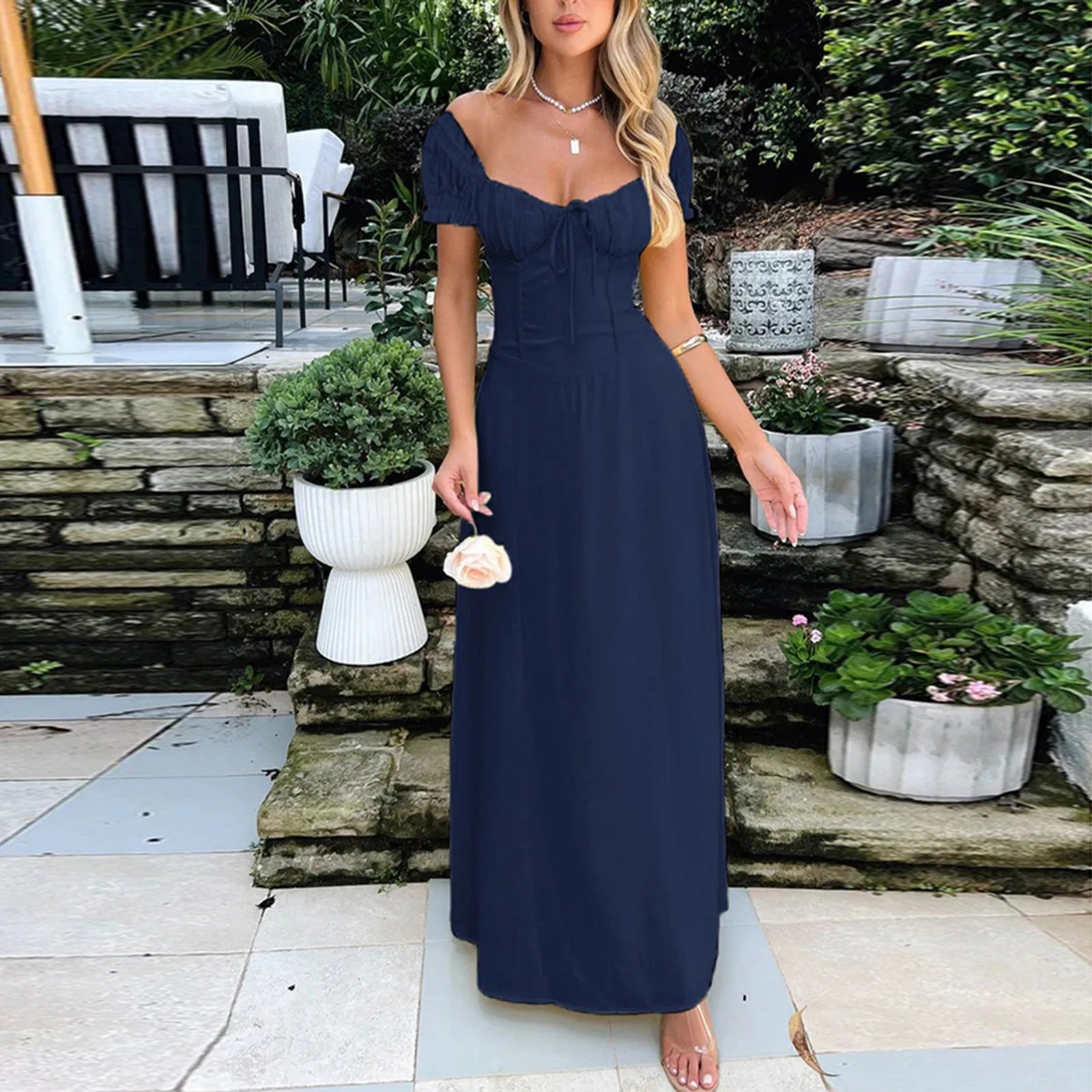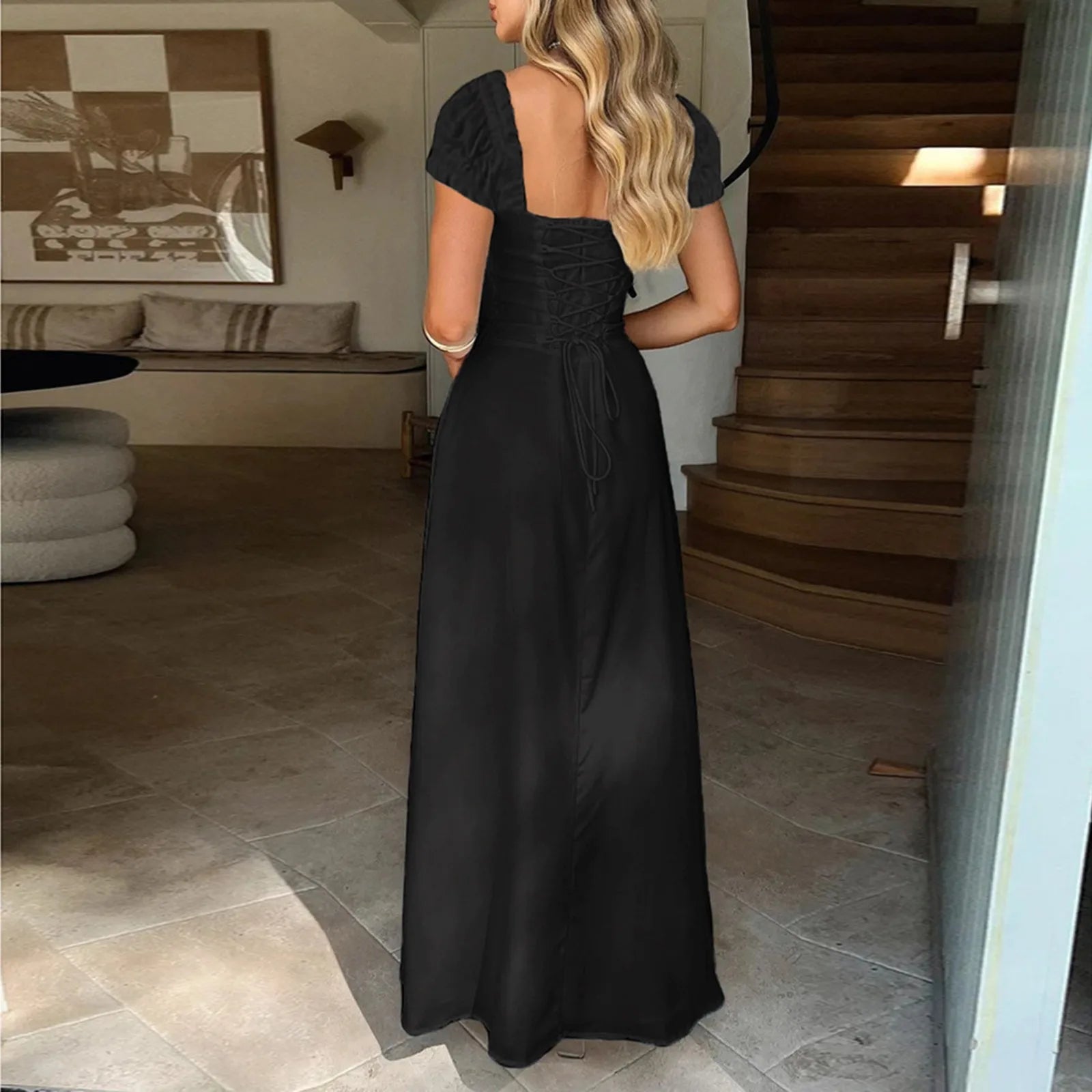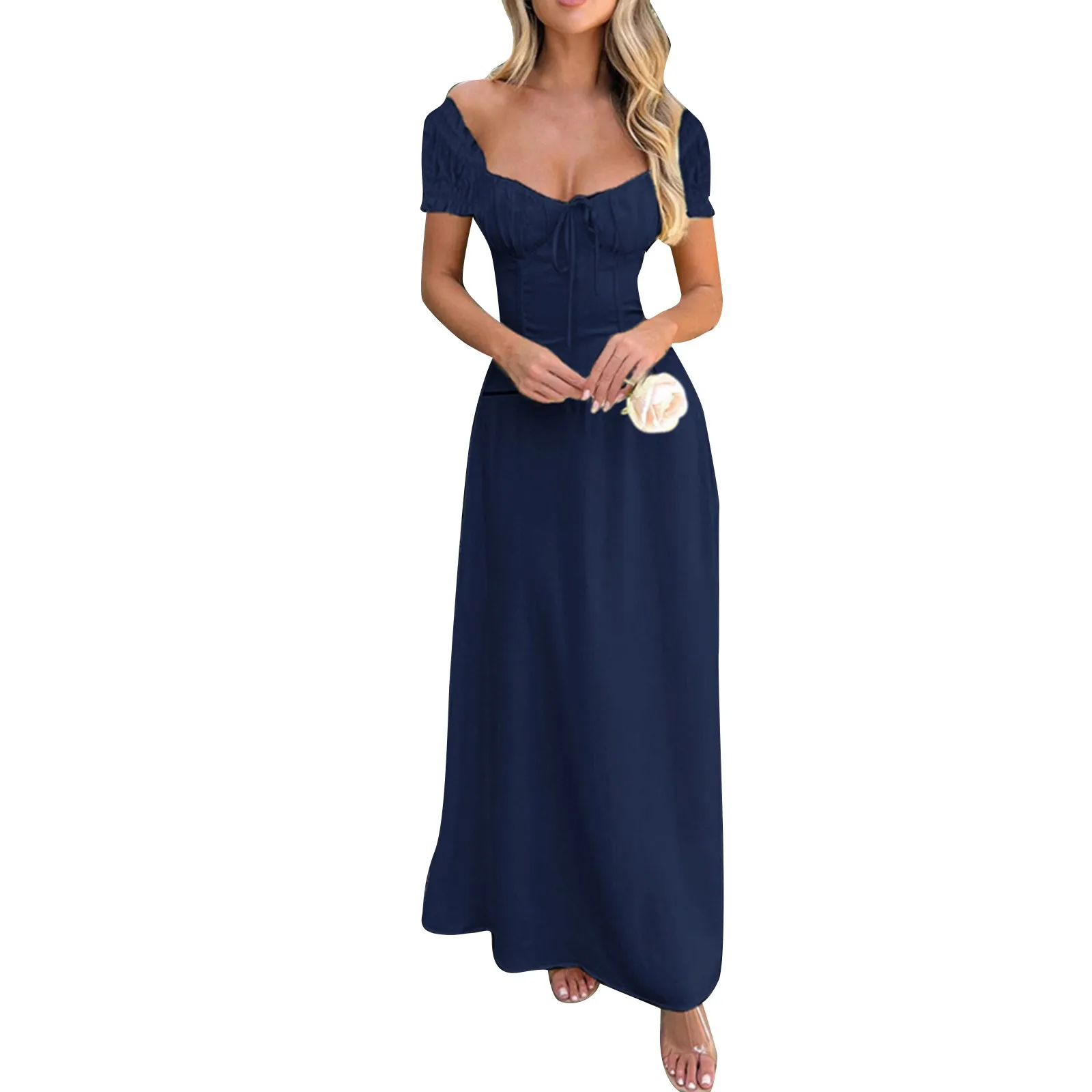 Cyflymder Y2K Sexy Women's Dresses Elegant Solid Color Summer Temperament Tie Drawstring Bubble Sleeve French Dresses Gothic Clothes ropa