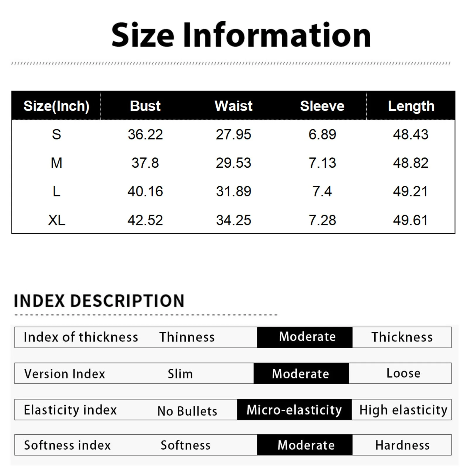 SizeBustWaistSleeveLengthS92cm/36.22''71cm/27.95''17.5cm/6.89''123cm/48.43''M96cm/37.80''75cm/29.53''18.1cm/7.13''124cm/48.82''L102cm/40.16''81cm/31.89''18.8cm/7.40''125cm/49.21''XL108cm/42.52''87cm/34.25''18.5cm/7.28''126cm/49.61''
