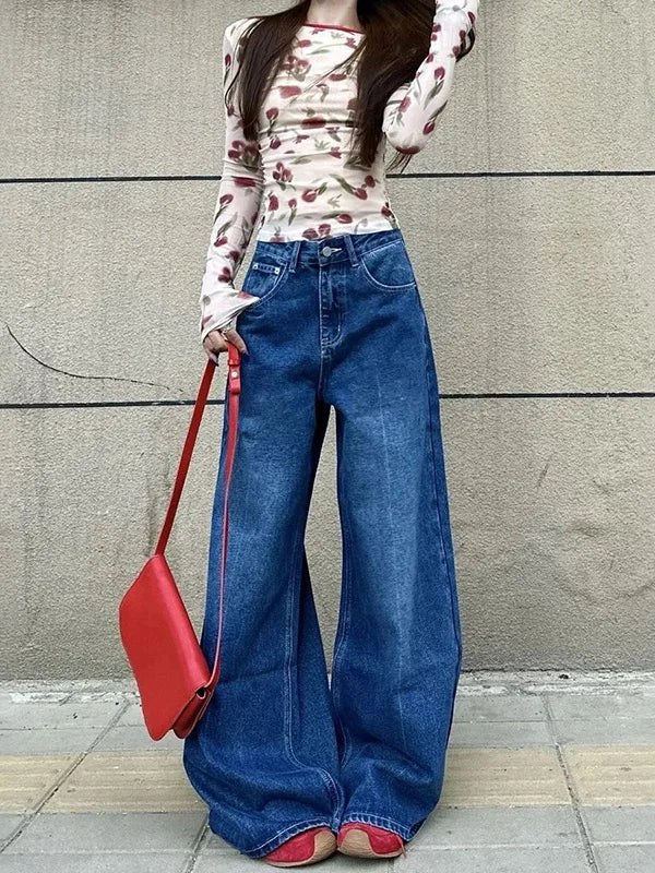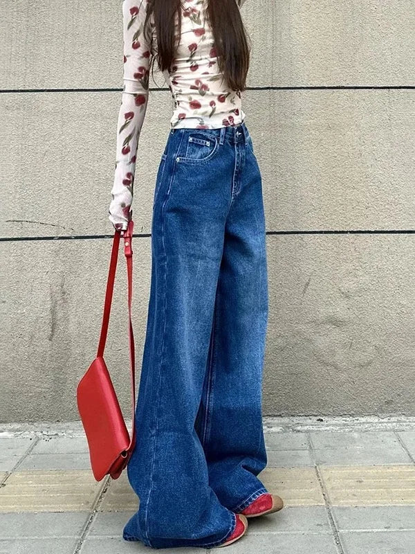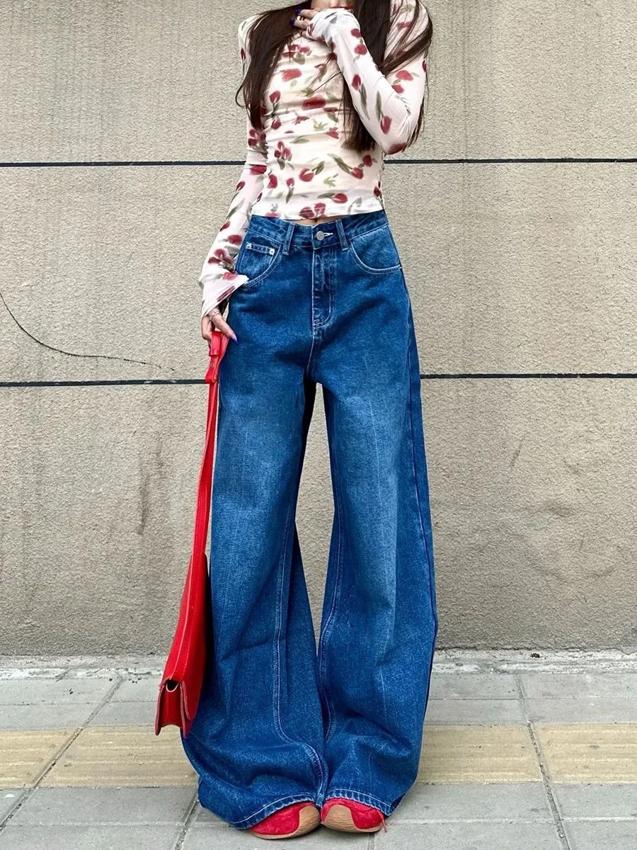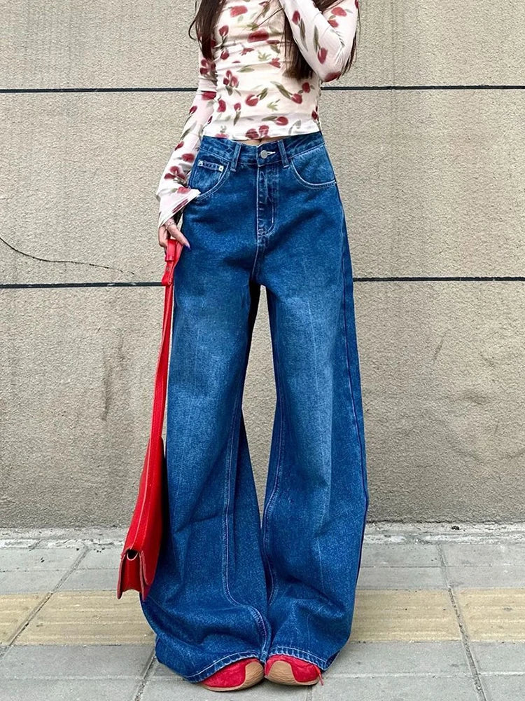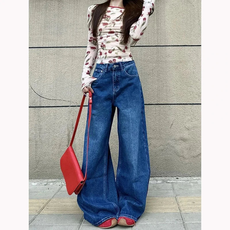 Cyflymder Y2K Spicy Girl Jeans Women Retro High Waisted Wide Leg Loose Slimming Straight Leg Floor Length Casual Drape Trousers