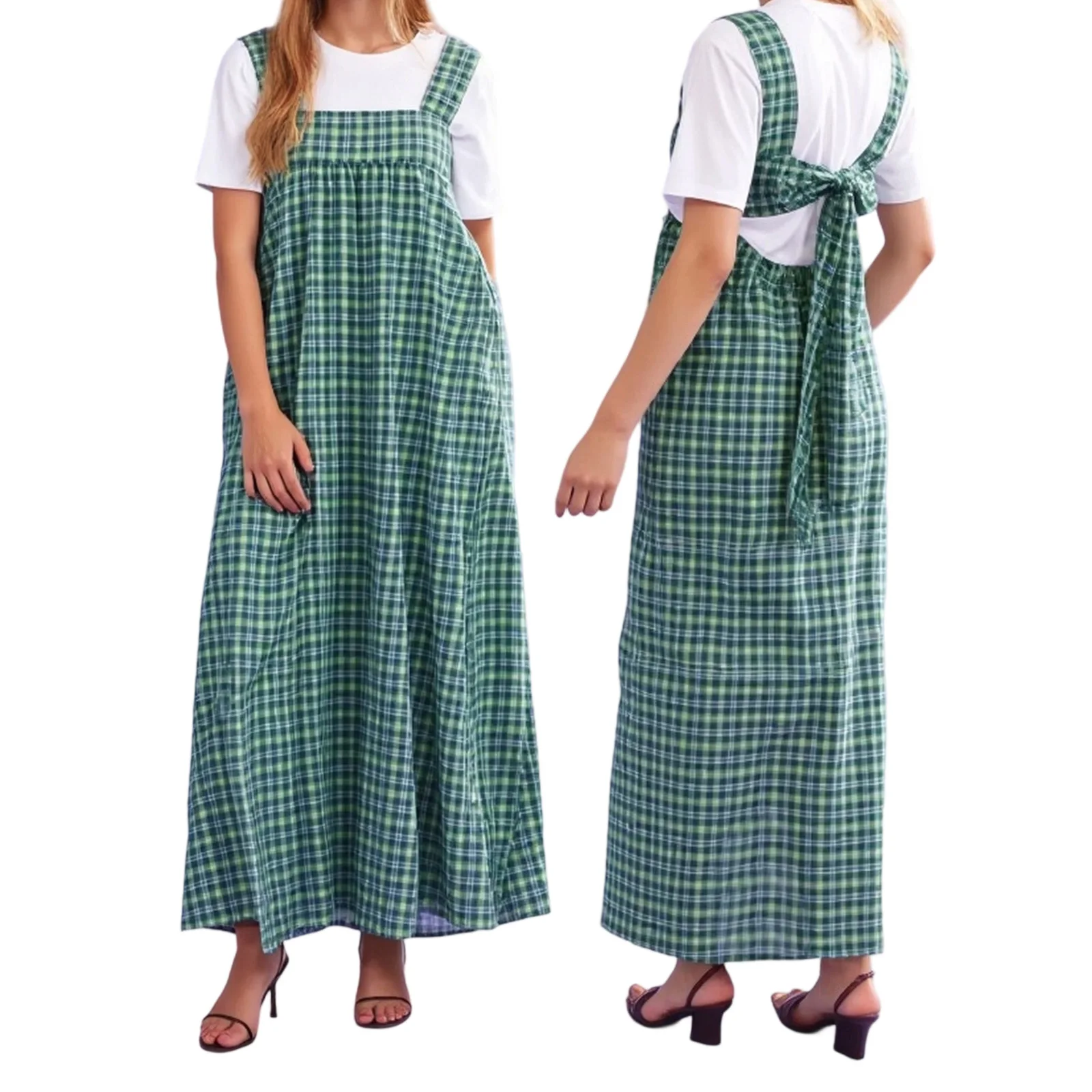 Cyflymder y2k Tank Dress Women Classic Plaid Print Square Neck Wide Shoulder Strap Long Dress Casual Party Dresses Streetwear