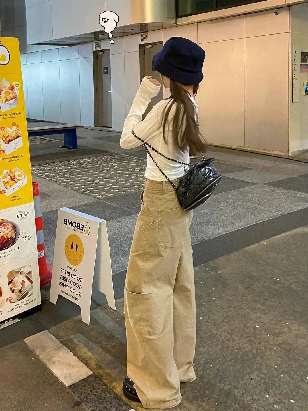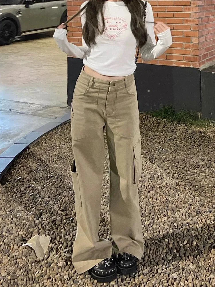 Cyflymder Y2K Wide Leg Jeans Women American Retro Workwear Pants High Waisted Spicy Girl Style Straight Leg Loose Fit Slimming Casual