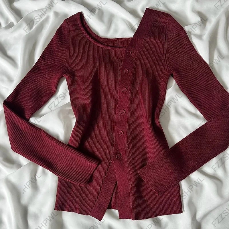 Cyflymder Y2K Women's Sweater Cardigan Chic Fashion Retro Harajuku Solid Color Irregular Emotional Girl Aesthetic Emotional Girls Cardigan