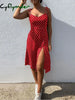 Dresses Sundress Summer Women Causal Polka Dot Sleeveless High Pleated elastic waist V-Neck Beach Dress Vestidos De Verano