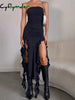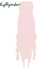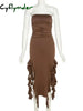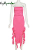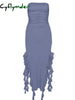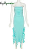 Elegant Strapless Midi Dress Women Summer Irregular Tassel Skinny Split Ruffles Bodycon Evening dresses Clubwear Vestido