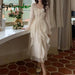 French Style Spring Autumn New Women's Solid Square Neck Patchwork Folds Elastic Waist Retraction Long Sleeve Chic Dress