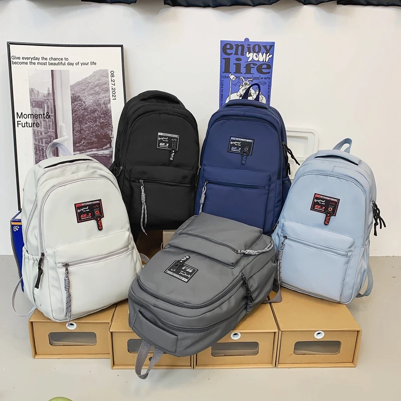 Fashion Men Backpack Waterproof Nylon Rucksack for College Boys Student Bookbag School Bag for Girls Black Travel Mochila