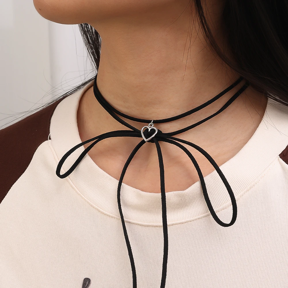 Tie Up Rope Heart Necklace for Women Minimal Hollow Heart Pendant Choker Bohemiean Clavicle Chain Jewelry Gift Decor