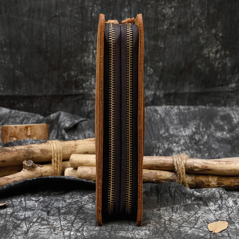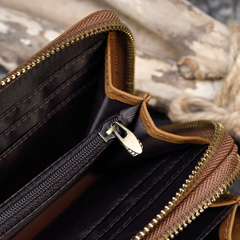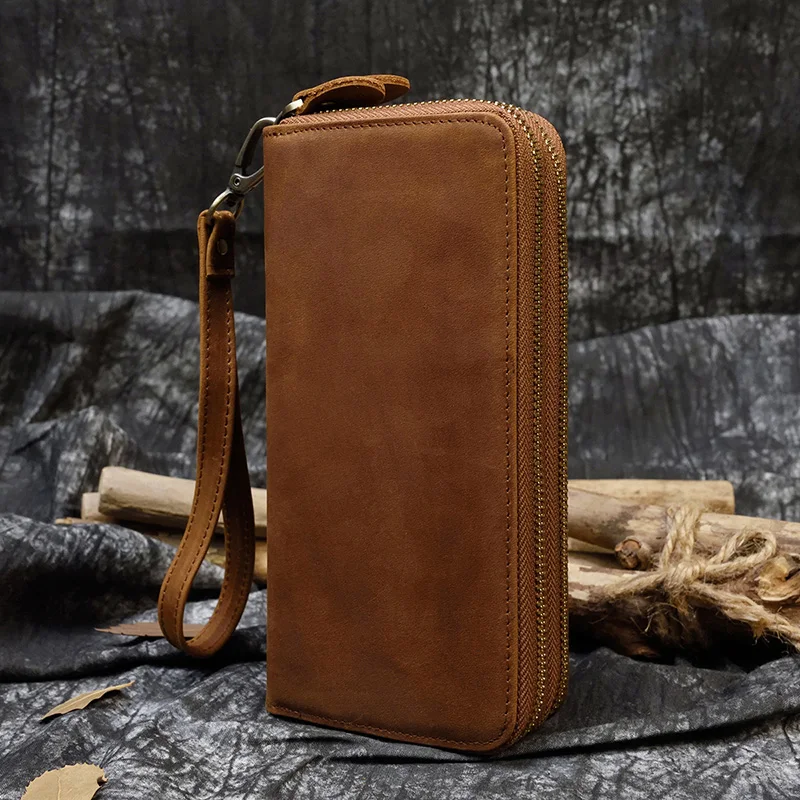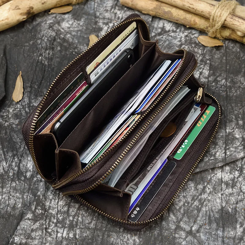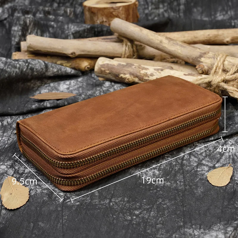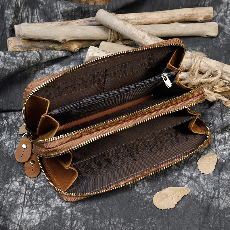 Genuine Leather Clutch Wallet For Men Cowskin Double Layer Zipper Purse Card Holder Male Big Hand Wallets Pone Pouch