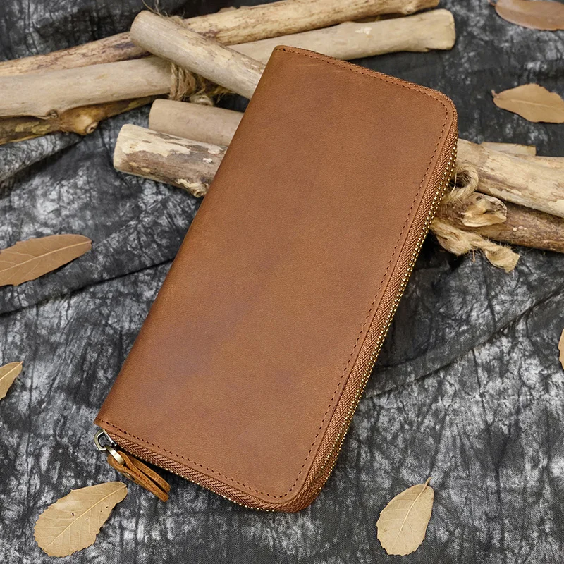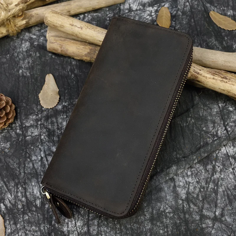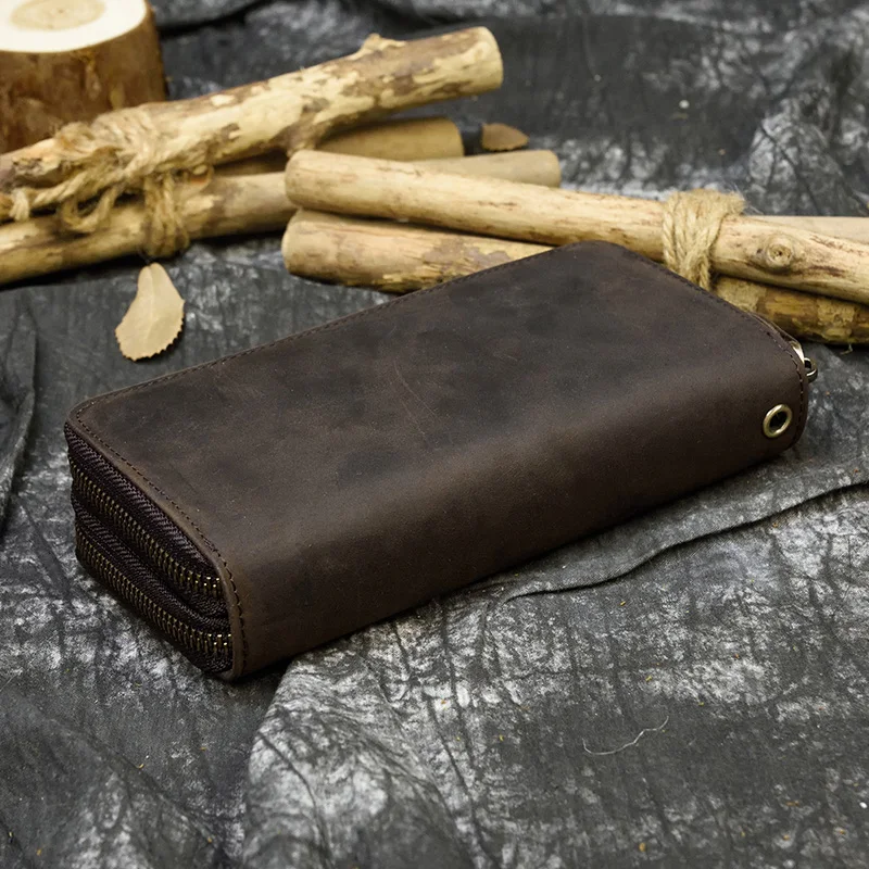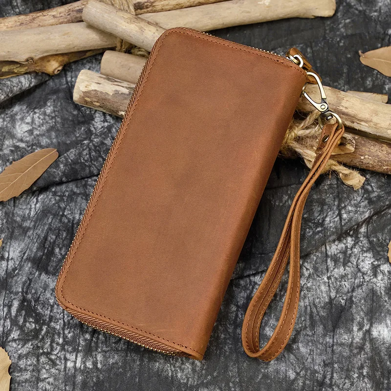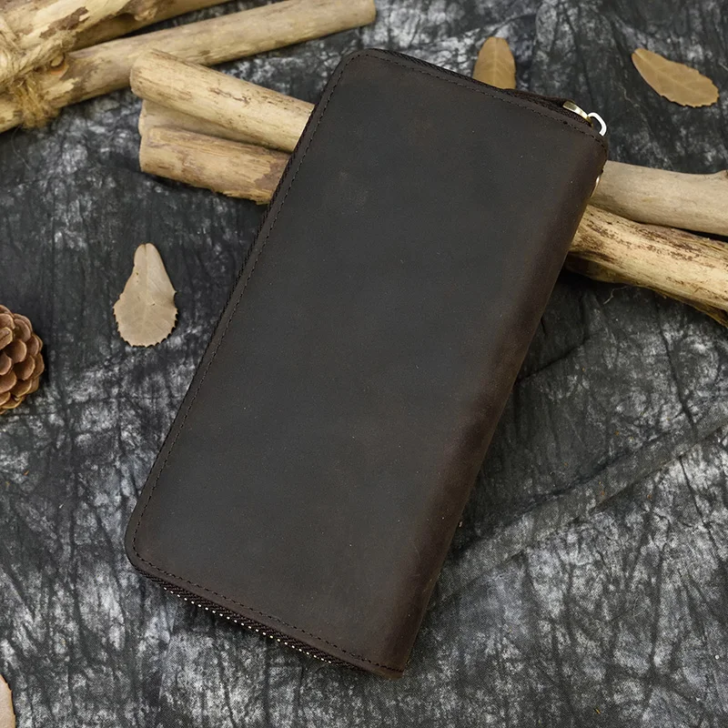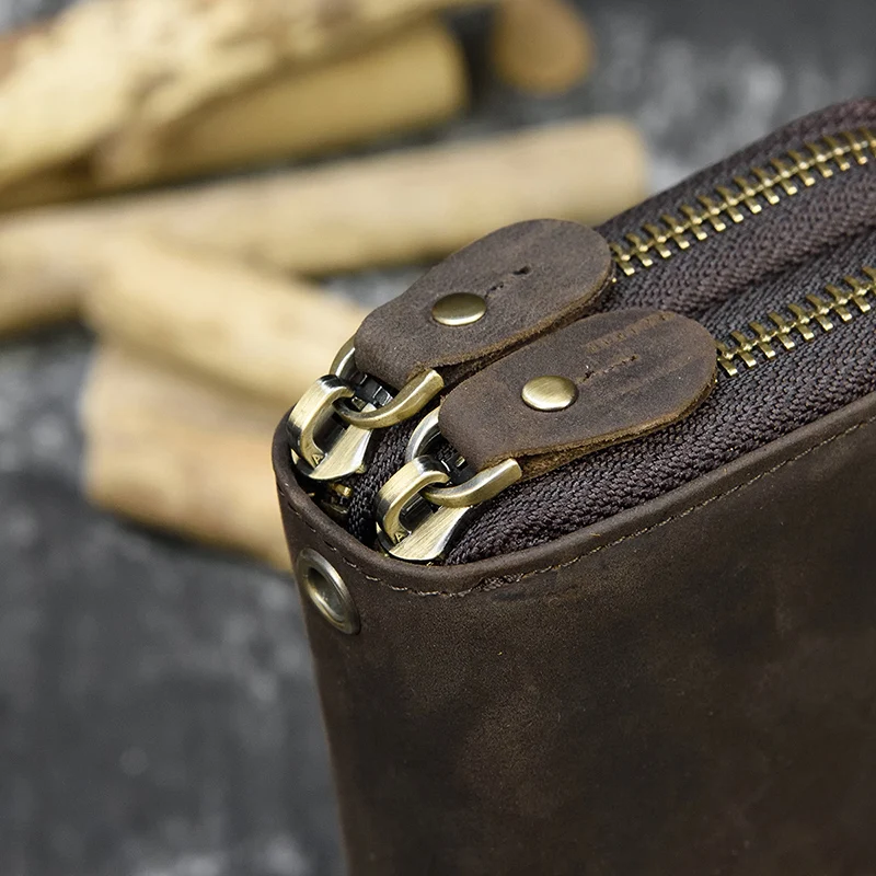 Genuine Leather Clutch Wallet For Men Cowskin Double Layer Zipper Purse Card Holder Male Big Hand Wallets Pone Pouch