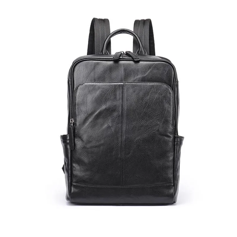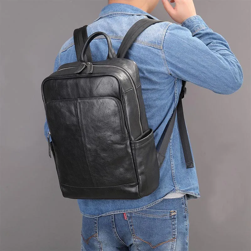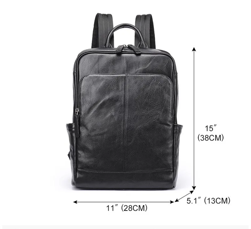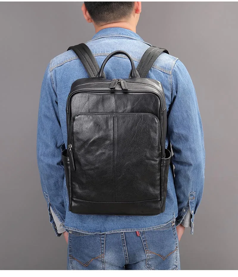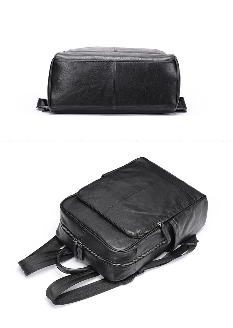 Genuine Leather Men Laptop Backpack Soft Cowhide 14 Inch Bagpack Travel Bag Women Leather Shoulder Bag School Bags Black
