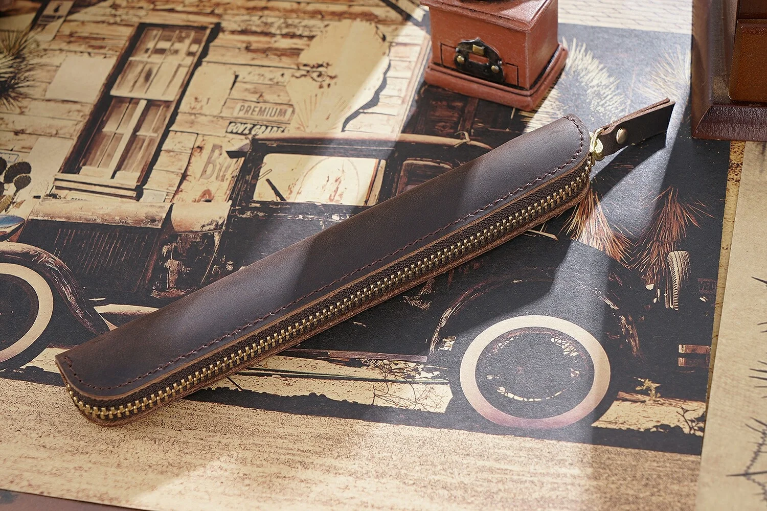 Genuine Leather Zipper Pen Bag Mini Small Pencil Case Apple Electronic Writing Pen Protective Sheath Creative Vintage Style