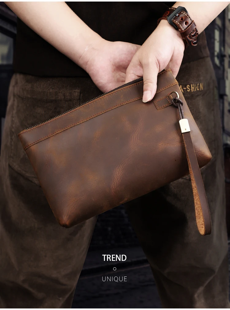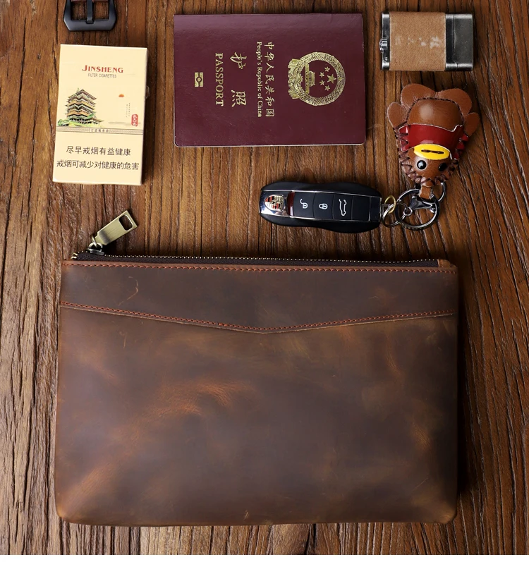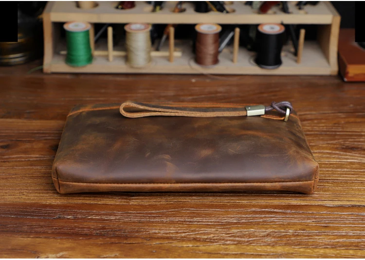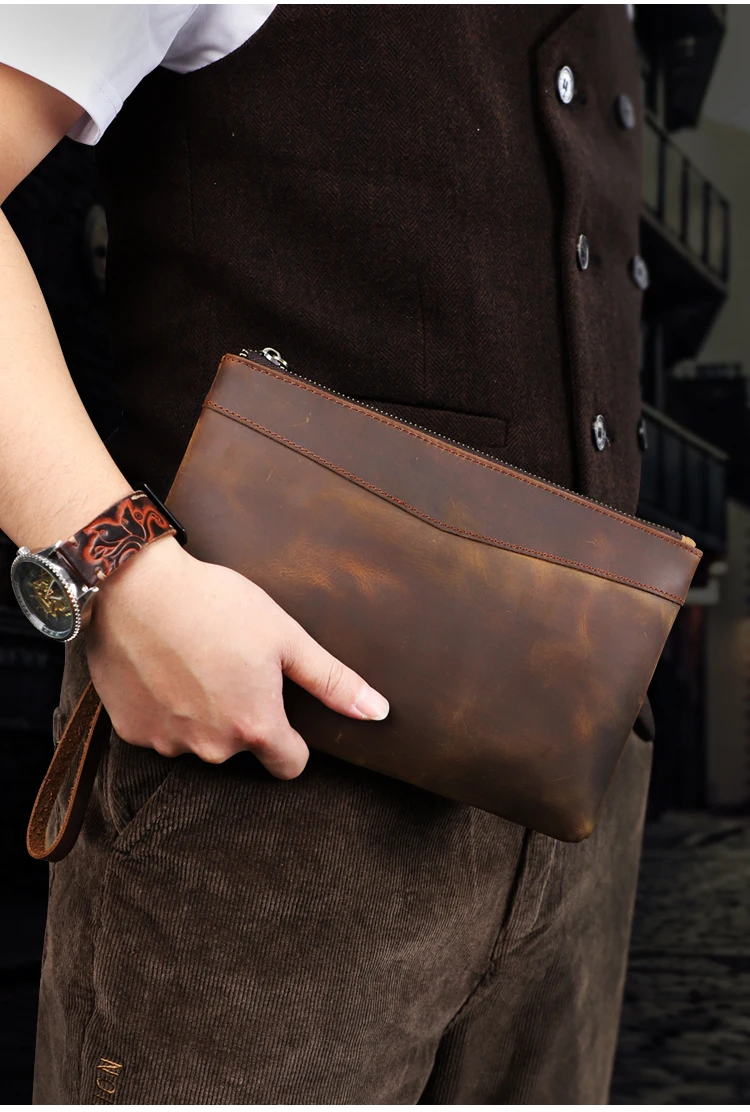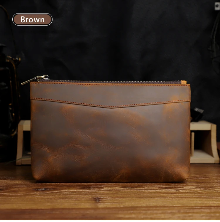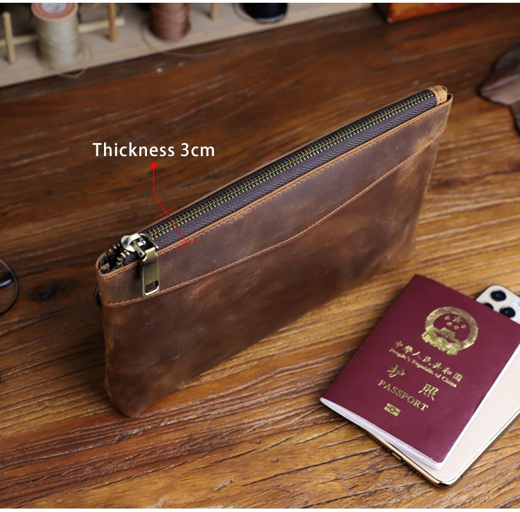 Handmade Genuine Leather Clutch Wallet Retro Long Handbag Large Capacity Organizer Hand Bag For Men
