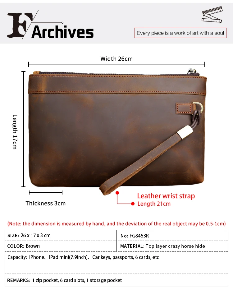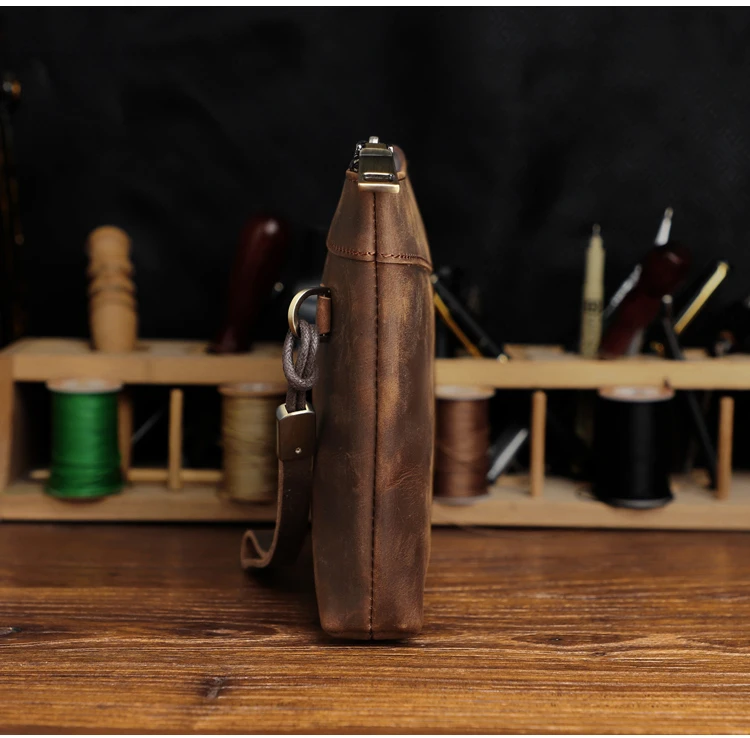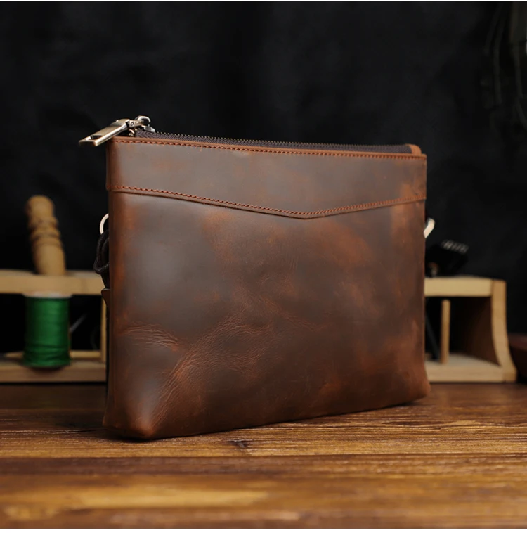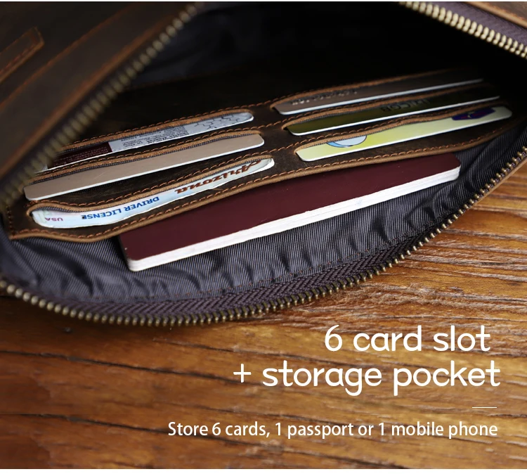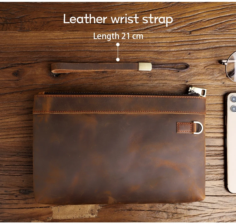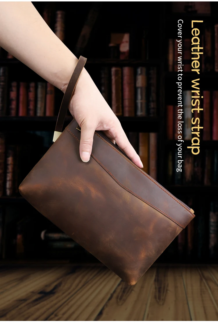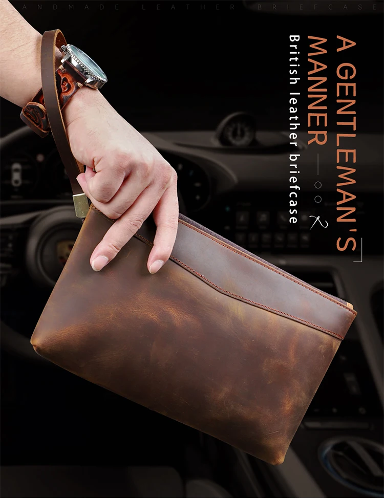 Handmade Genuine Leather Clutch Wallet Retro Long Handbag Large Capacity Organizer Hand Bag For Men