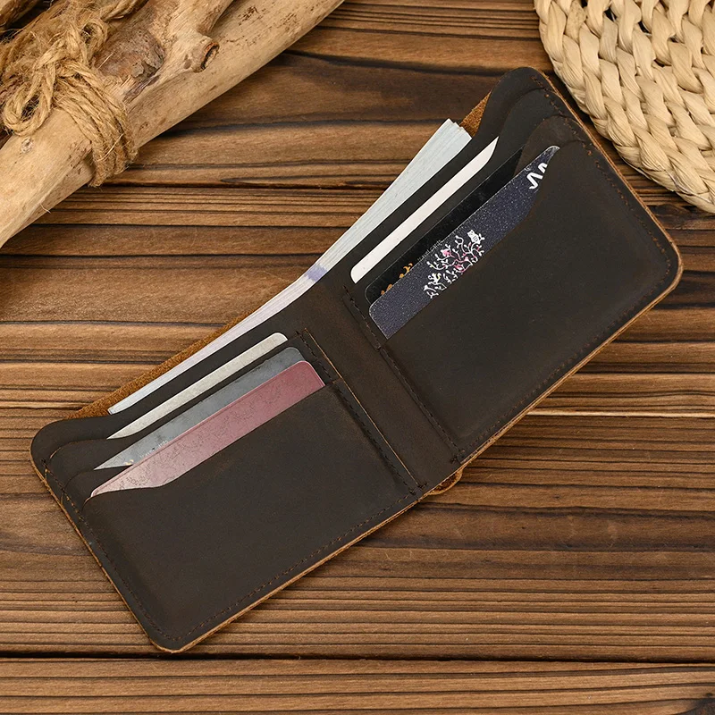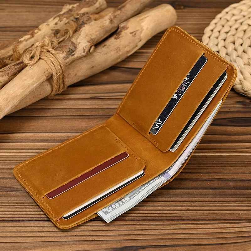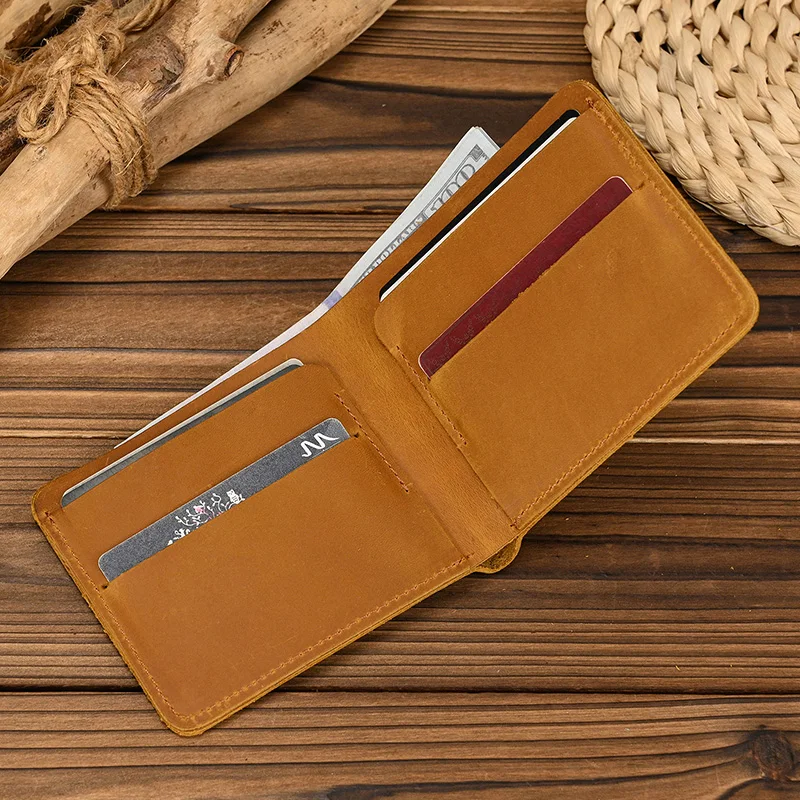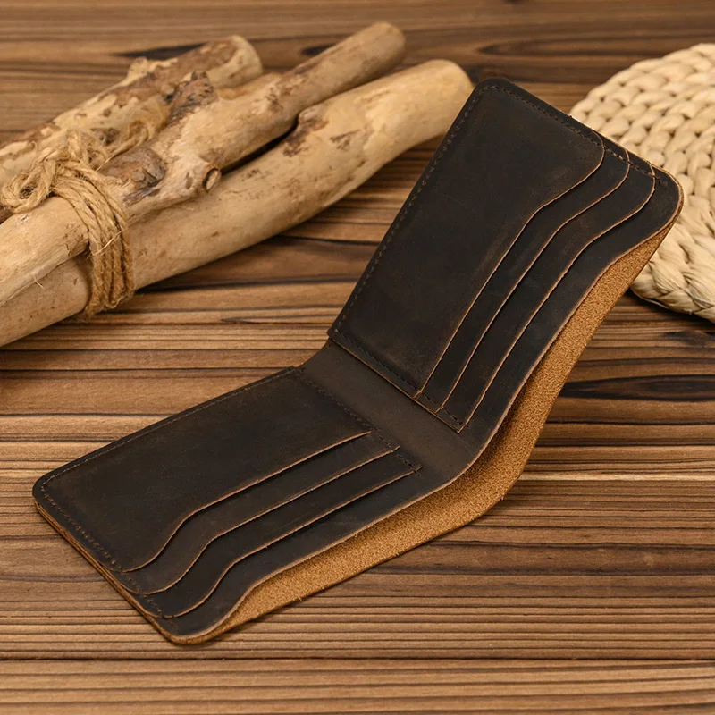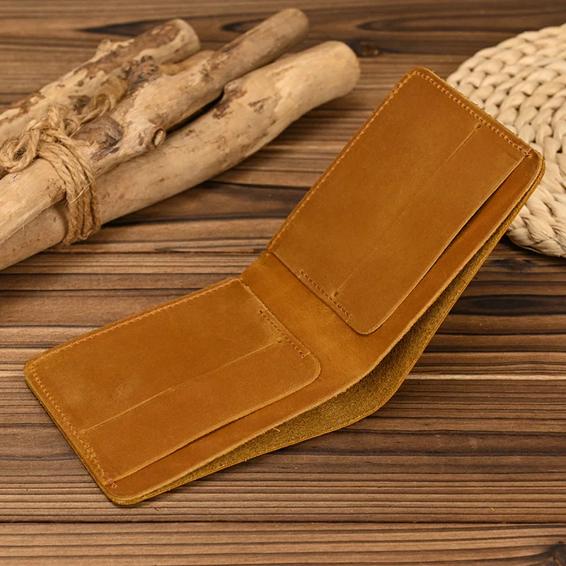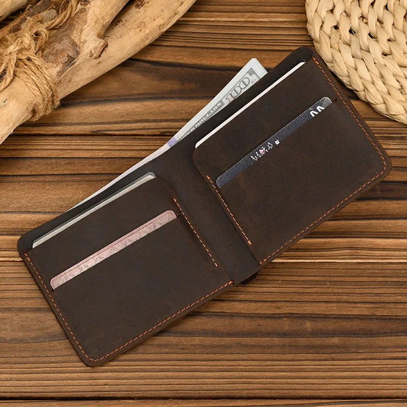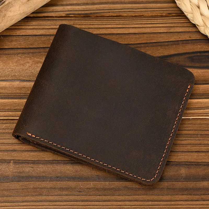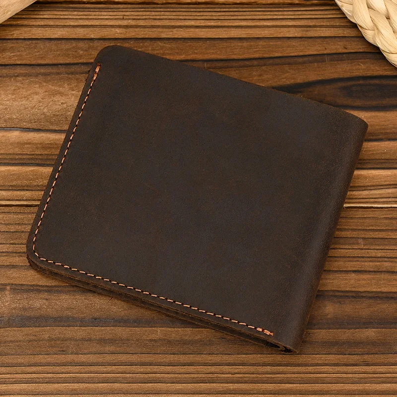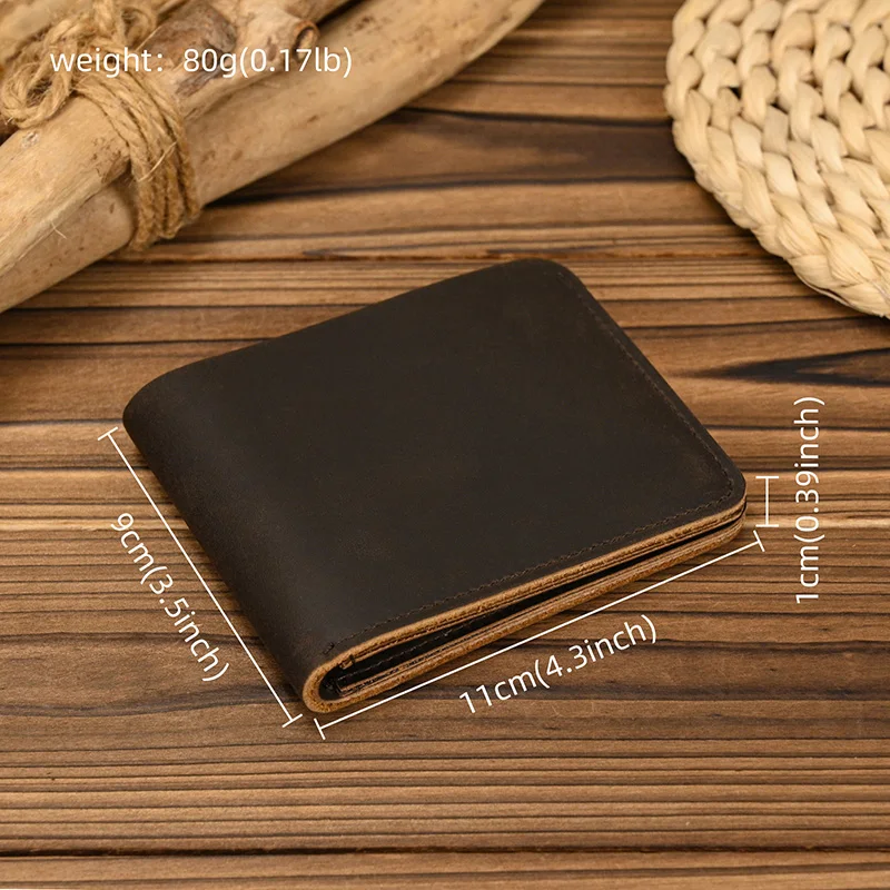 Handmade Vintage Crazy horse Leather Wallet Men Genuine Leather Short Wallet Slim Coin Purse Male Money Clips Money bag