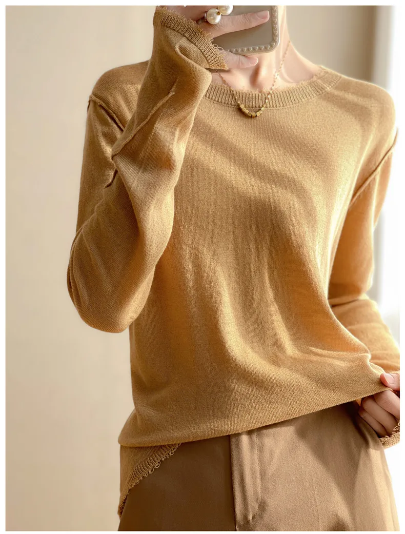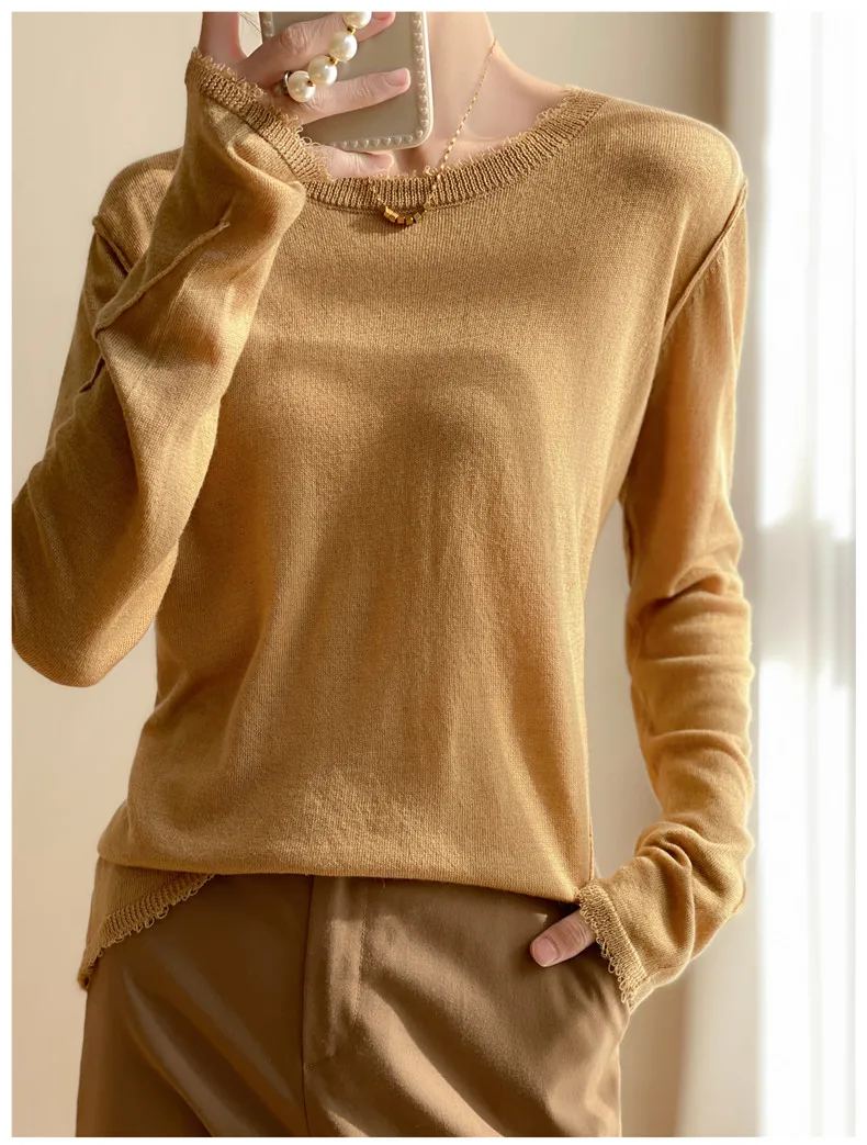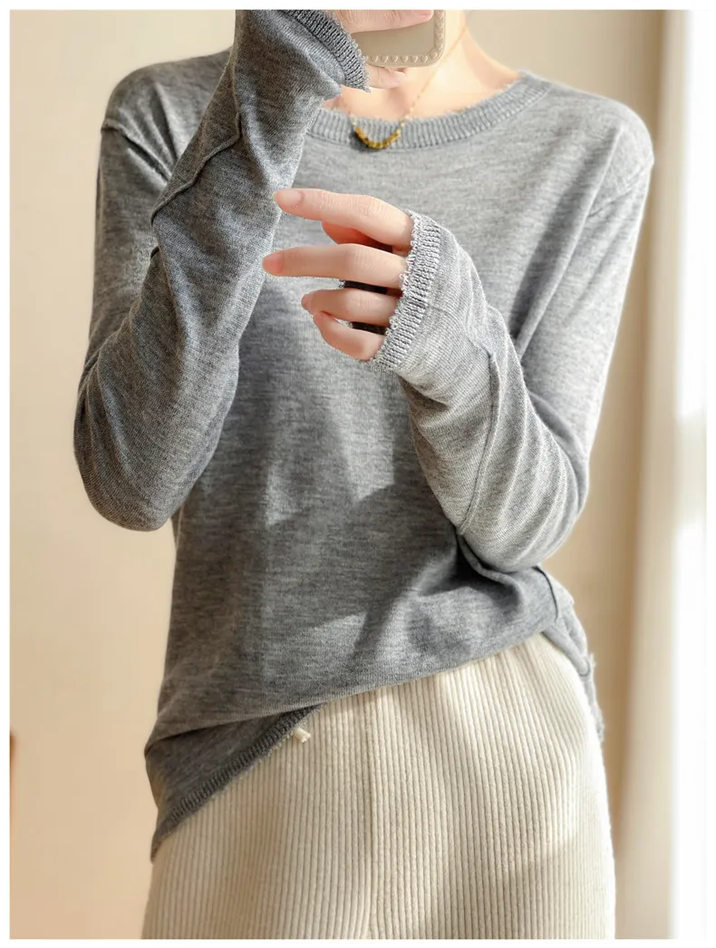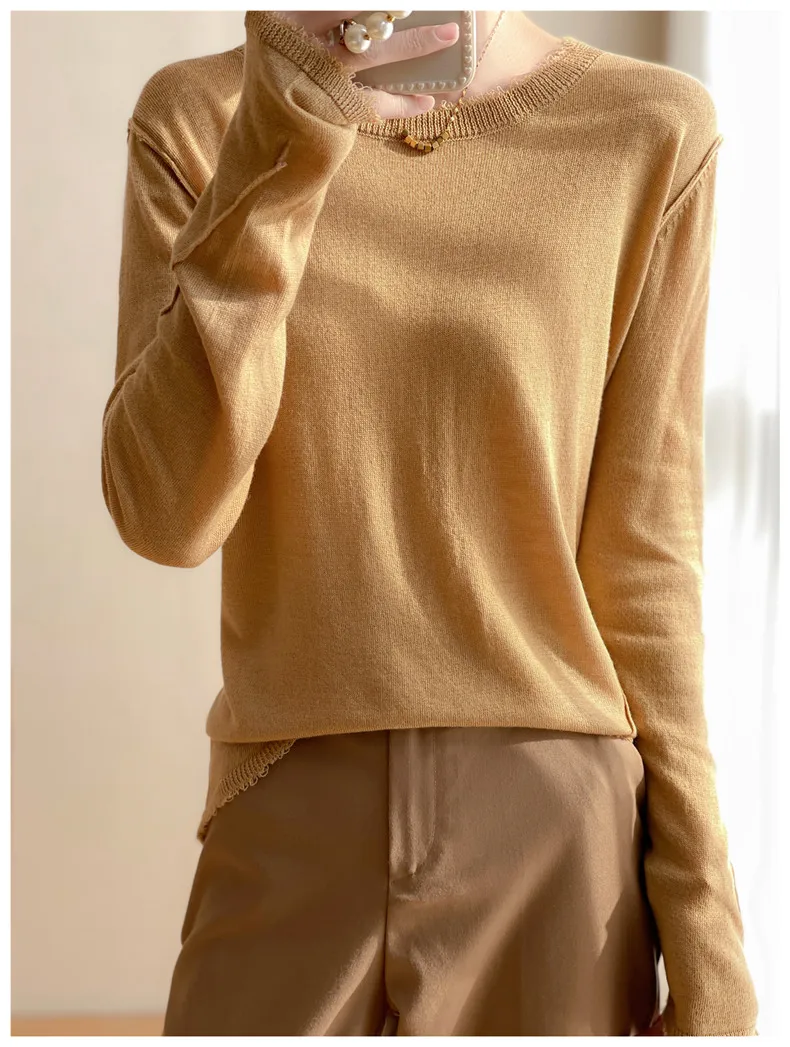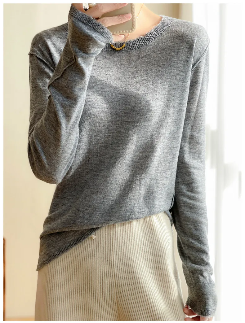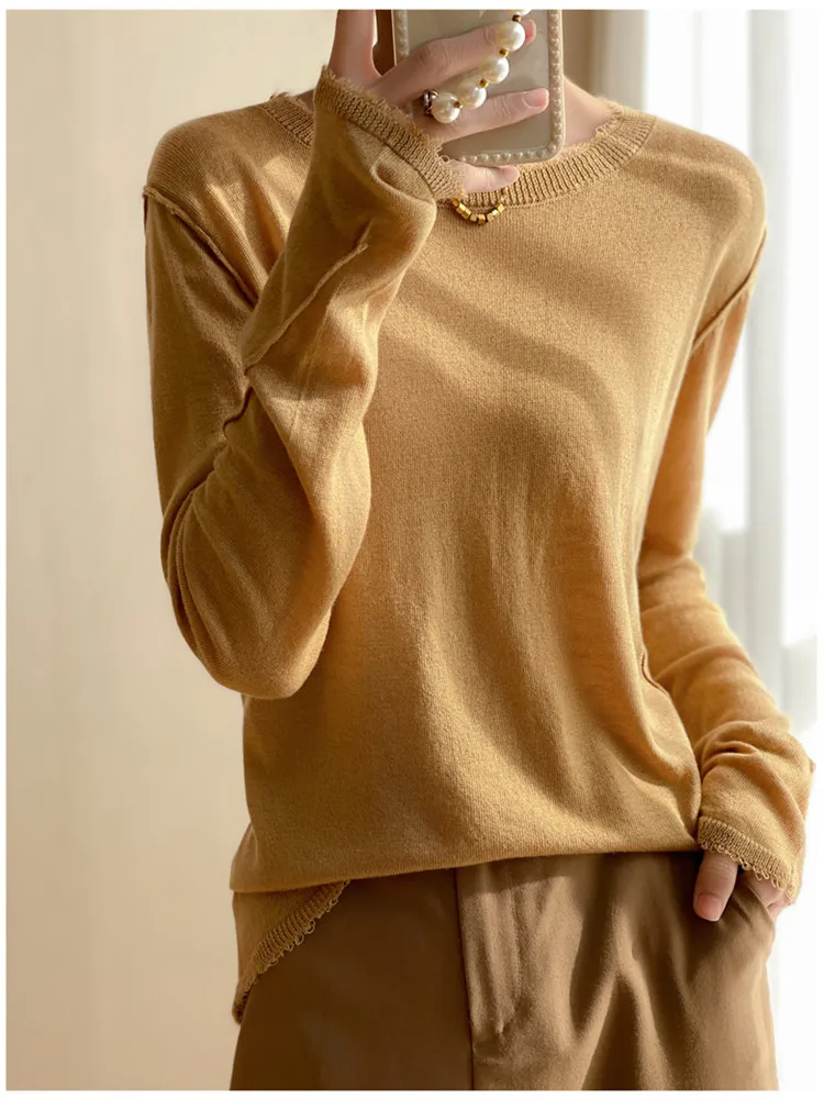 Single Yarn Worsted Wool Fashion Loose Knit Top Lightweight Comfortable Soft Waxy Sweater Long Sleeve
