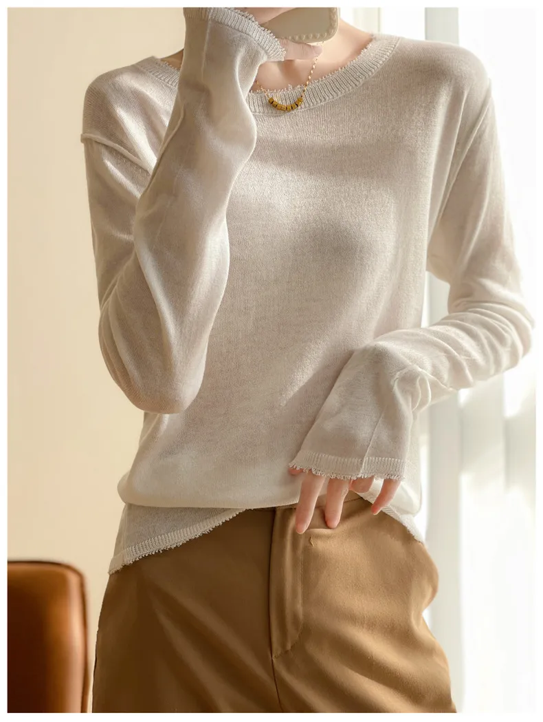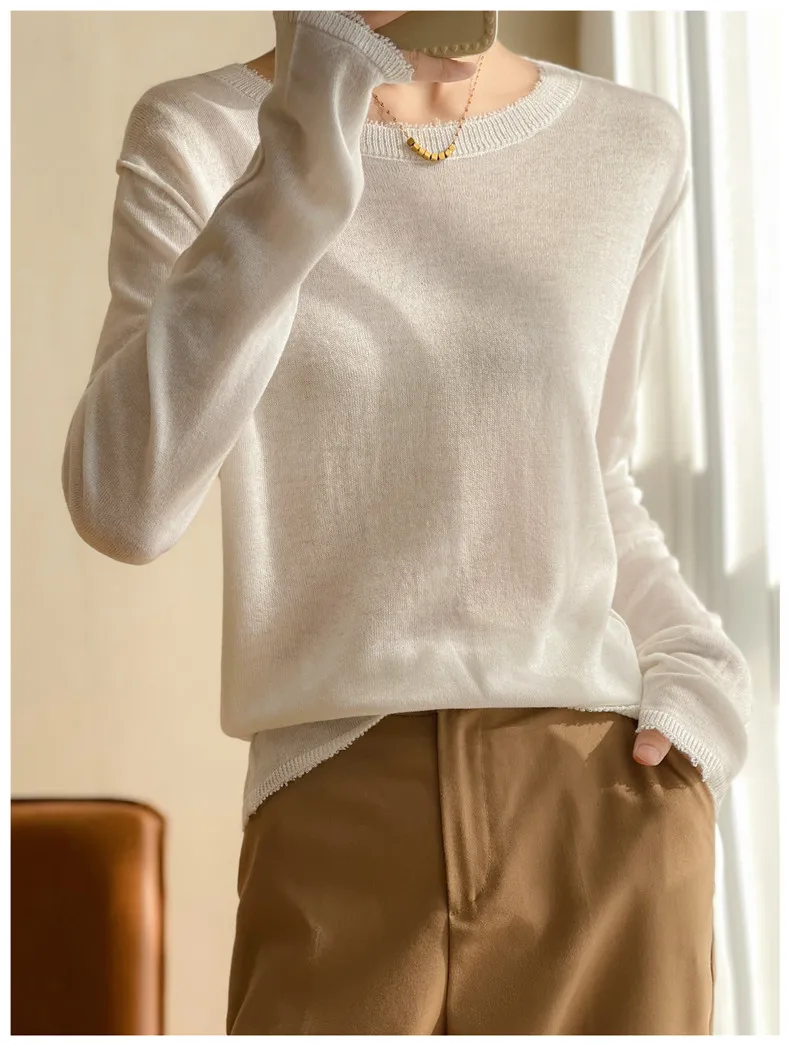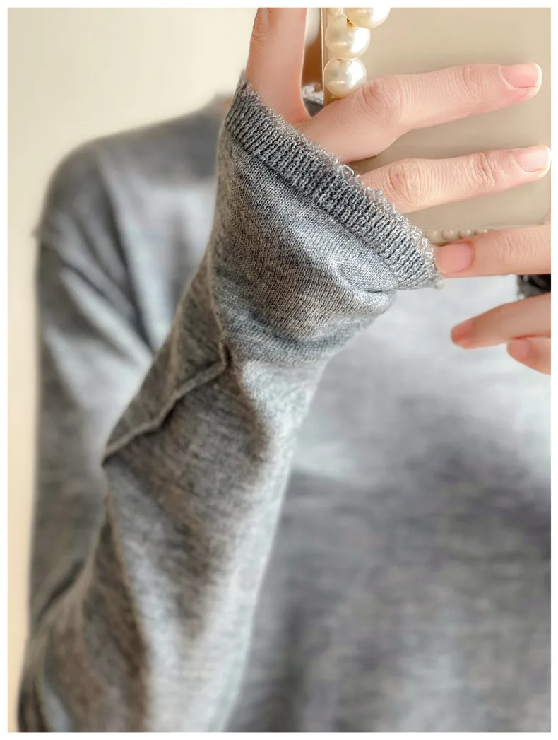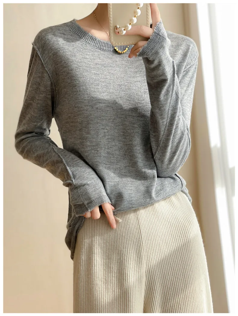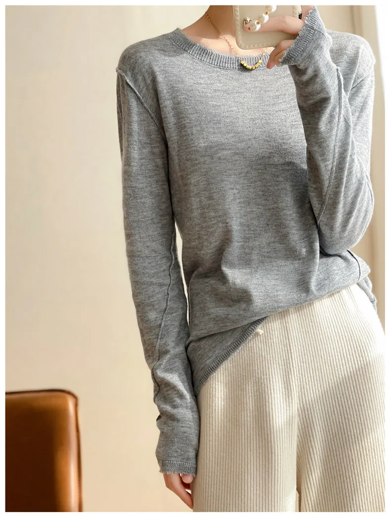 Single Yarn Worsted Wool Fashion Loose Knit Top Lightweight Comfortable Soft Waxy Sweater Long Sleeve