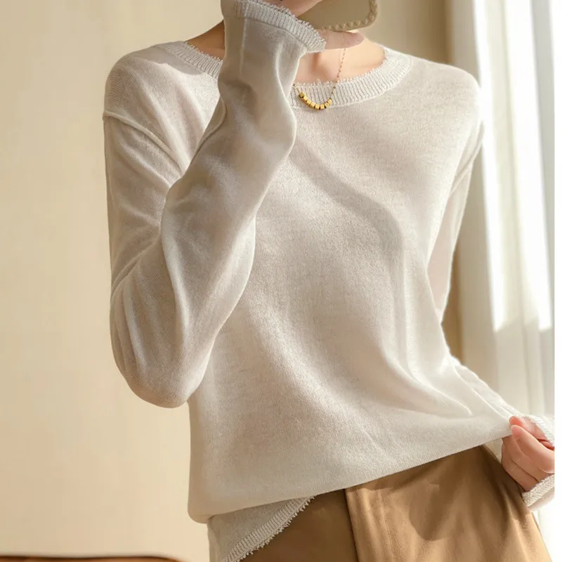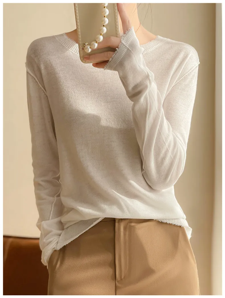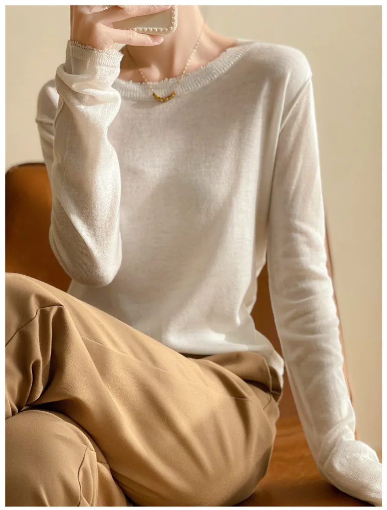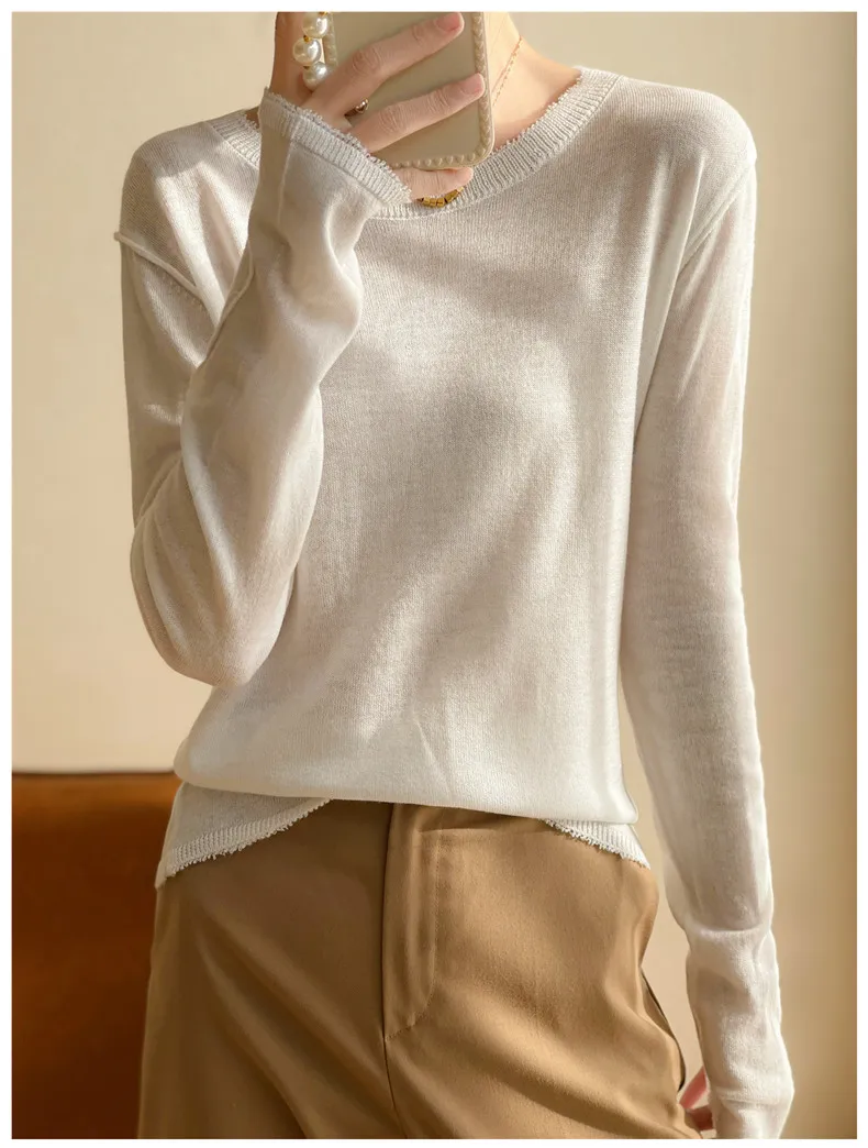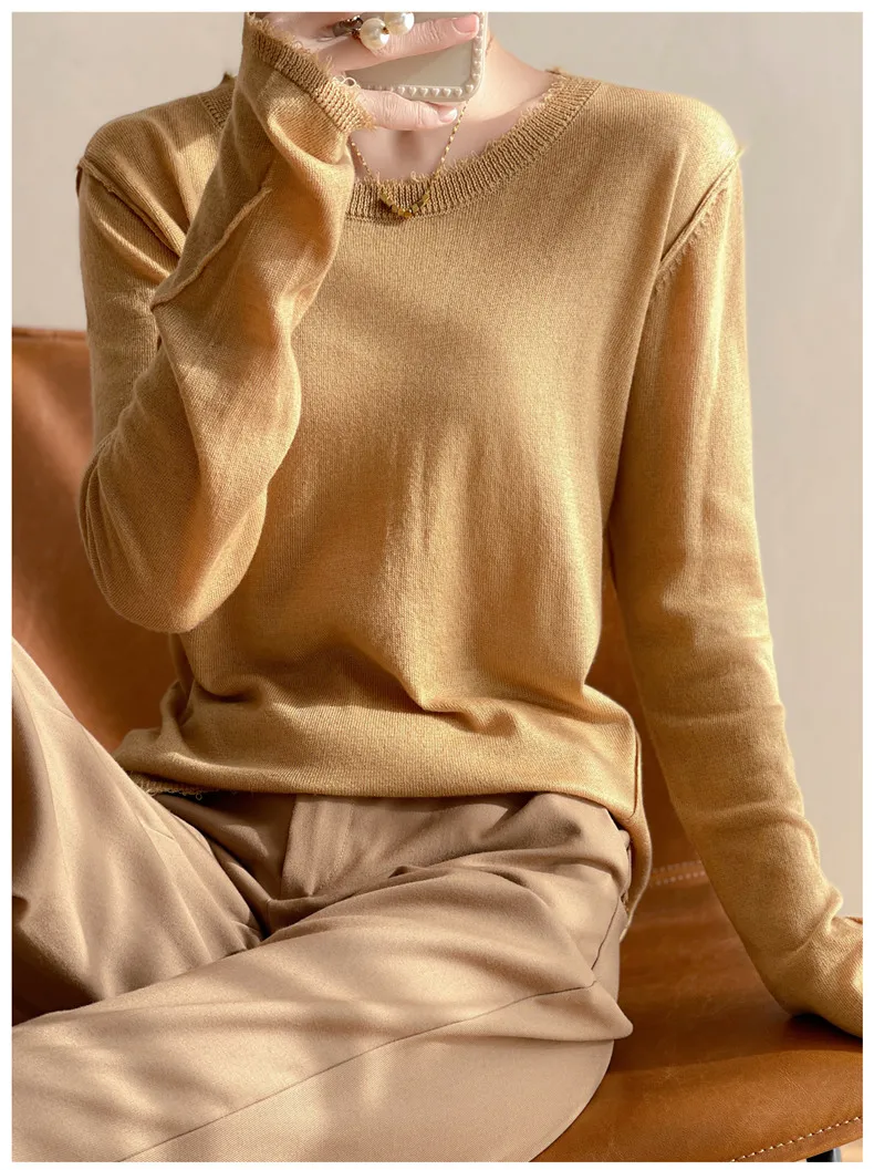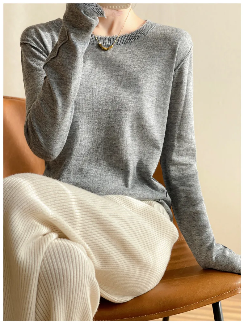 Single Yarn Worsted Wool Fashion Loose Knit Top Lightweight Comfortable Soft Waxy Sweater Long Sleeve