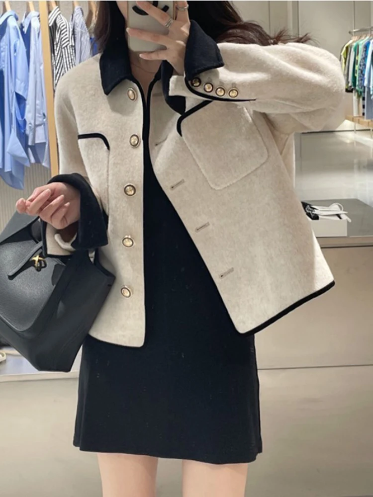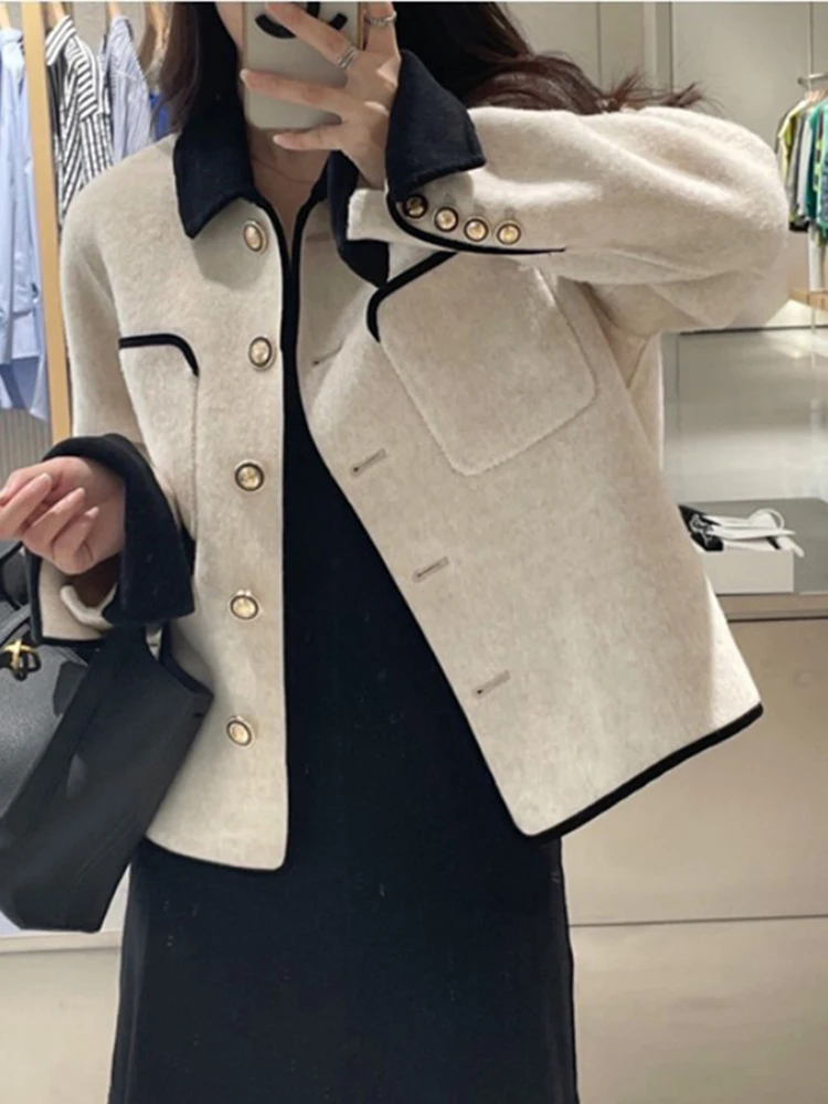 Jackets for Women Turn-down Collar Single Breasted Coat Autumn Winter Pocket Long Sleeve Fashion Female Outerwear