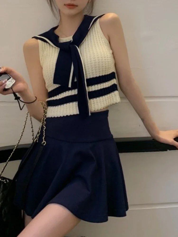 Japanese Kawaii Y2k Two Piece Set Women Preppy Style Elegant Sweet Mini Skirts Suit Female Chic Tops+Fairy Pantskirt 2024 Spring