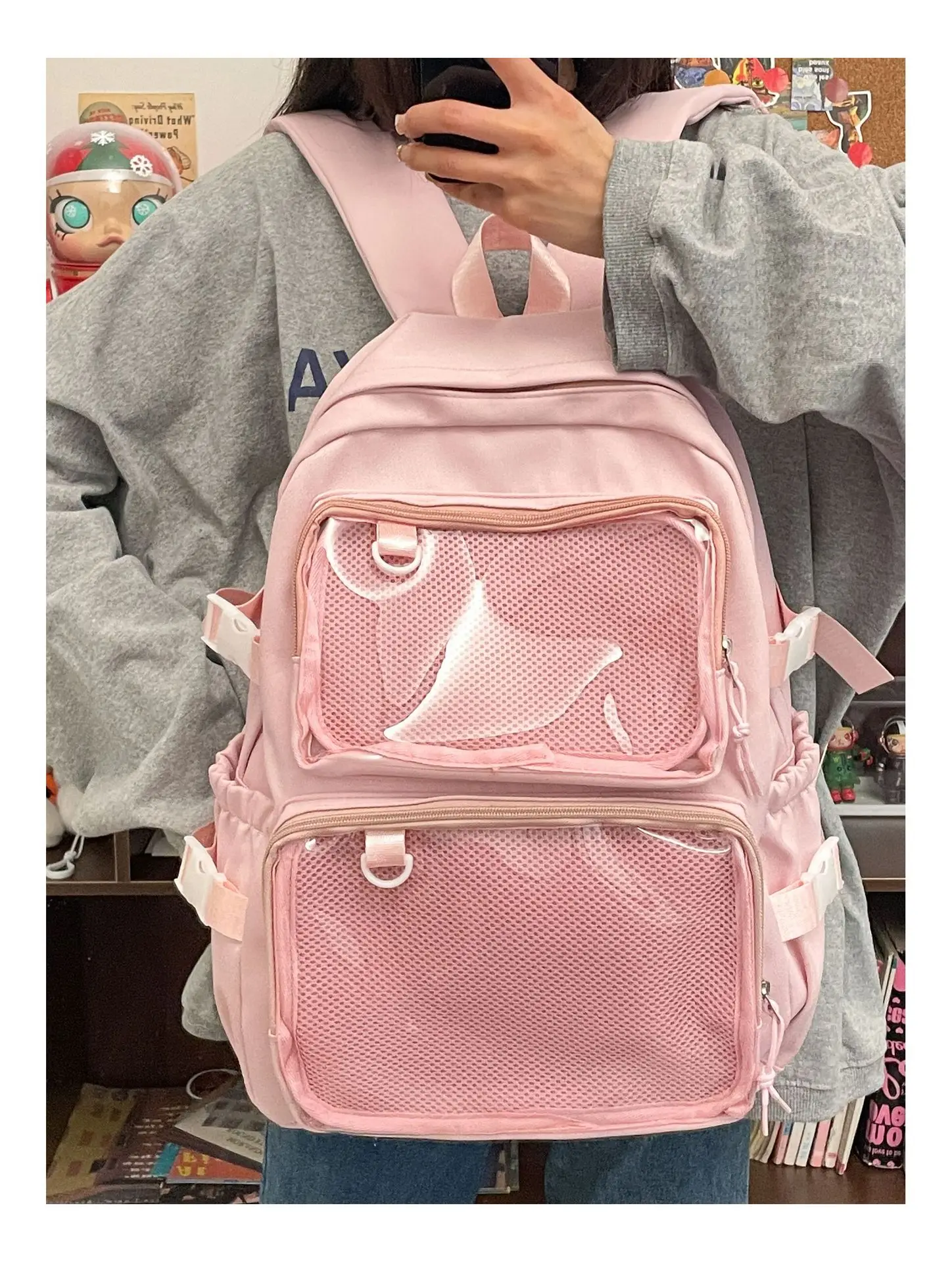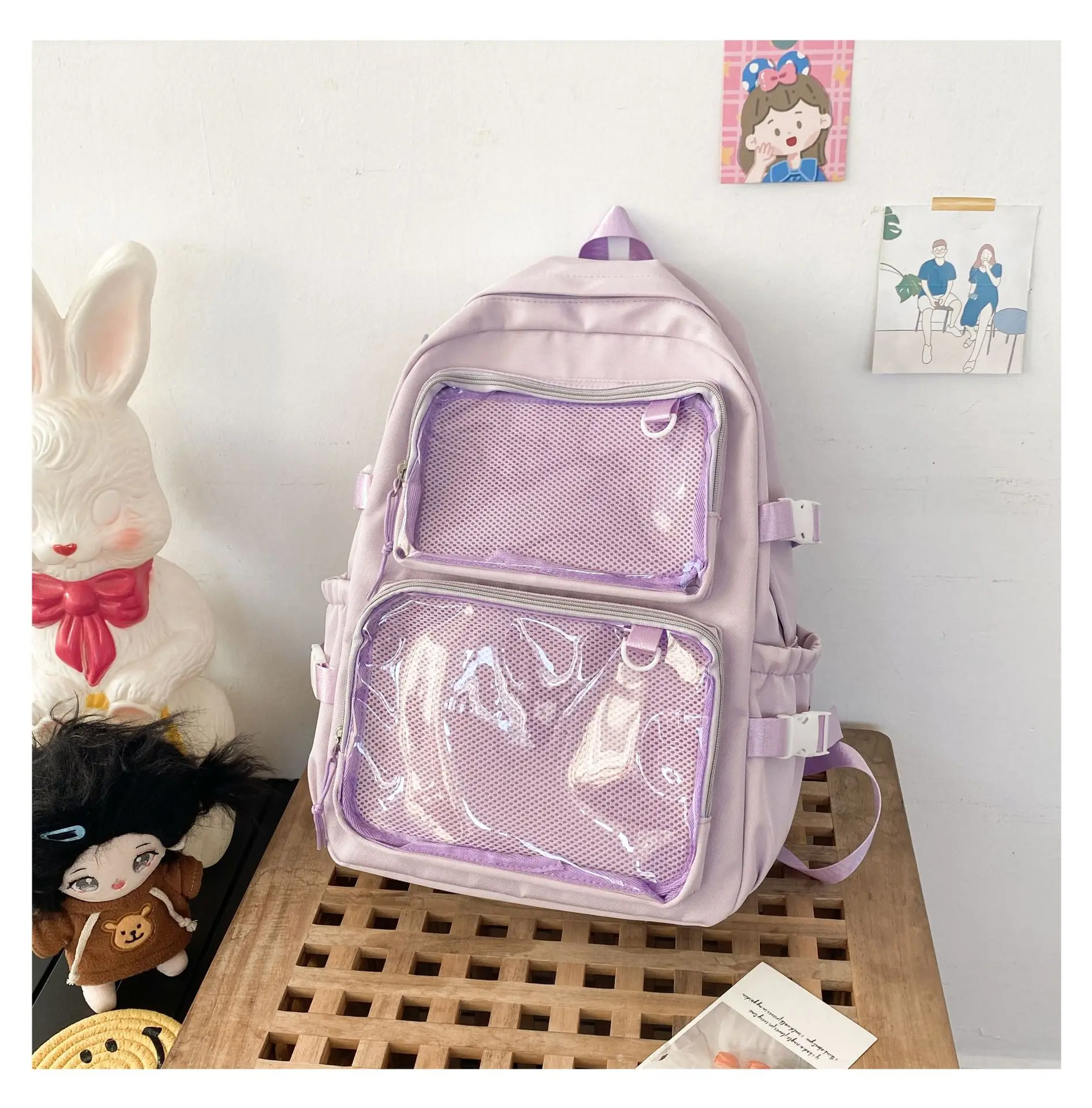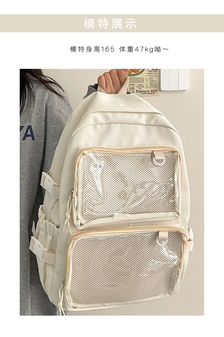 BACK TO SCHOOL Kawaii Backpack Women Transparent Pocket Itabag Large-capacity Laptop Backpack School Bags For Girls High School JK Bag Mochilas