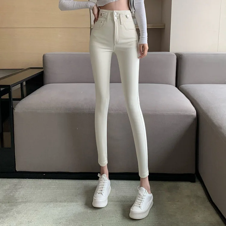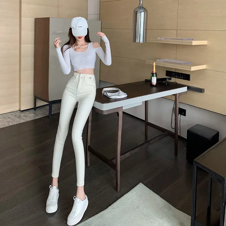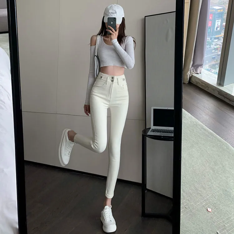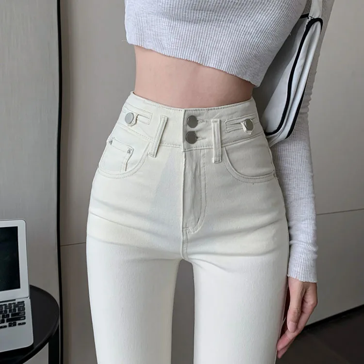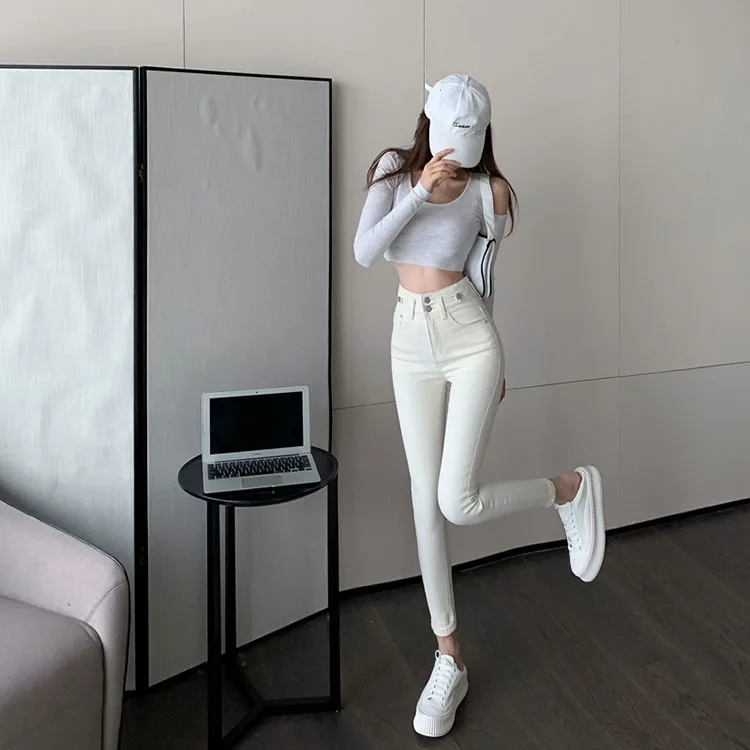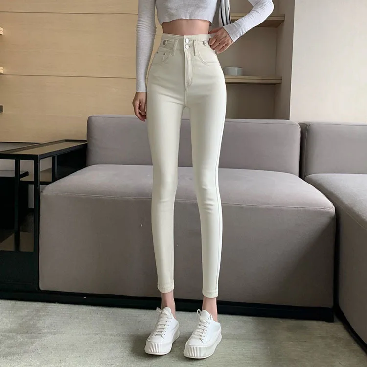Korean Fashion Apricot Skinny Pants Women High Waist Stretch Jeans Pants Sexy Pencil Capris Streetwear Hip Lift Denim Legging
