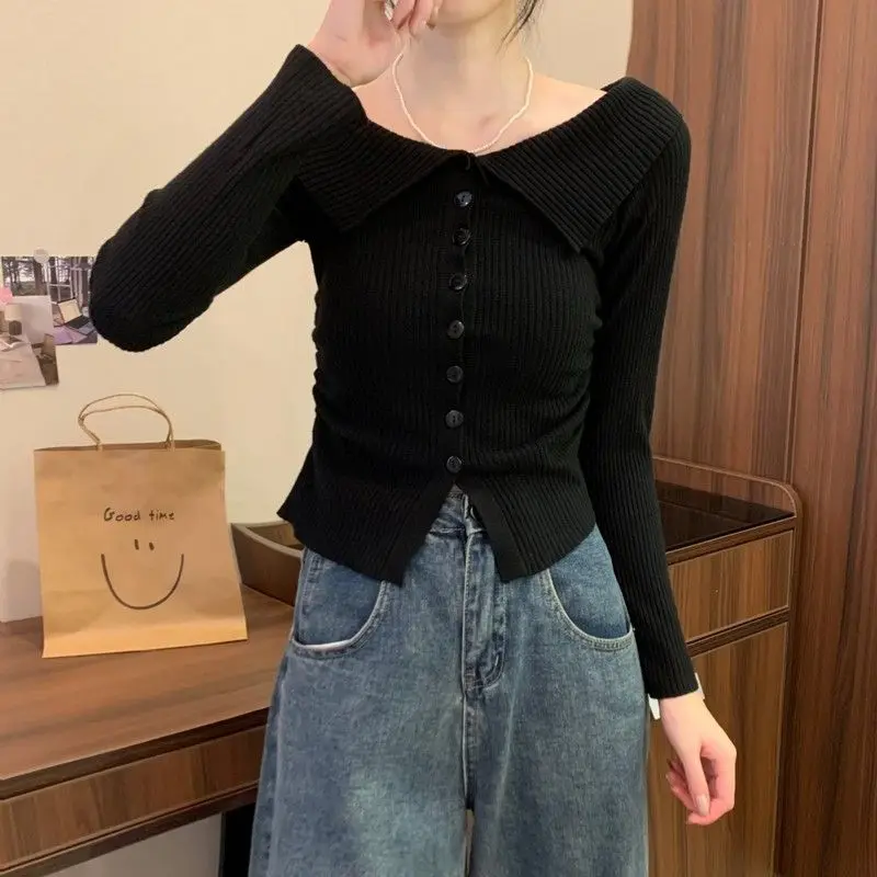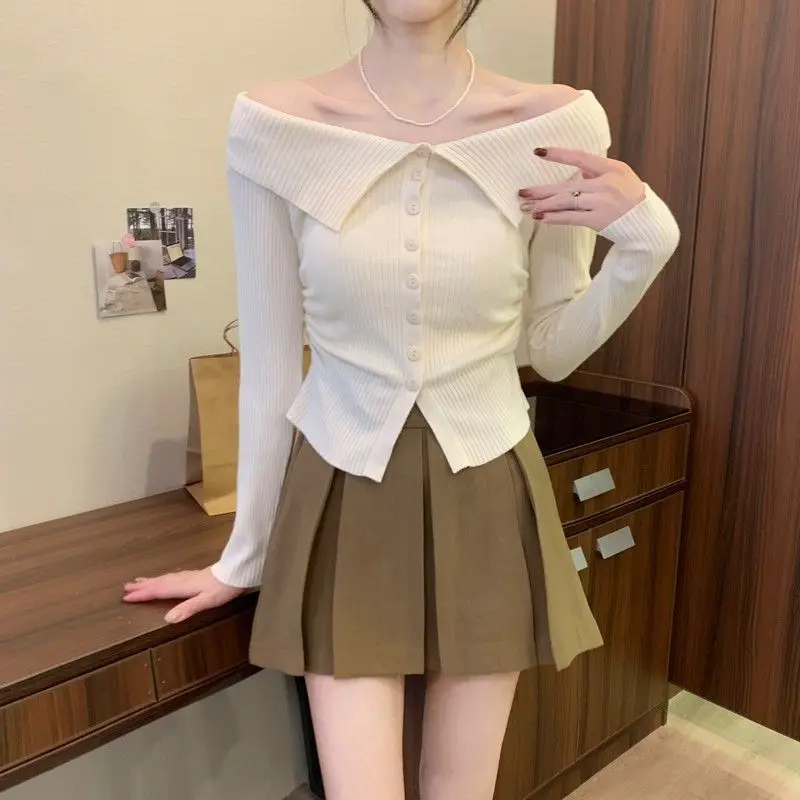 Korean Style Off Shoulder Sweaters Women Elegant Sexy Knitted Pullover Fashion Solid Long Sleeve Autumn Winter Jumpers