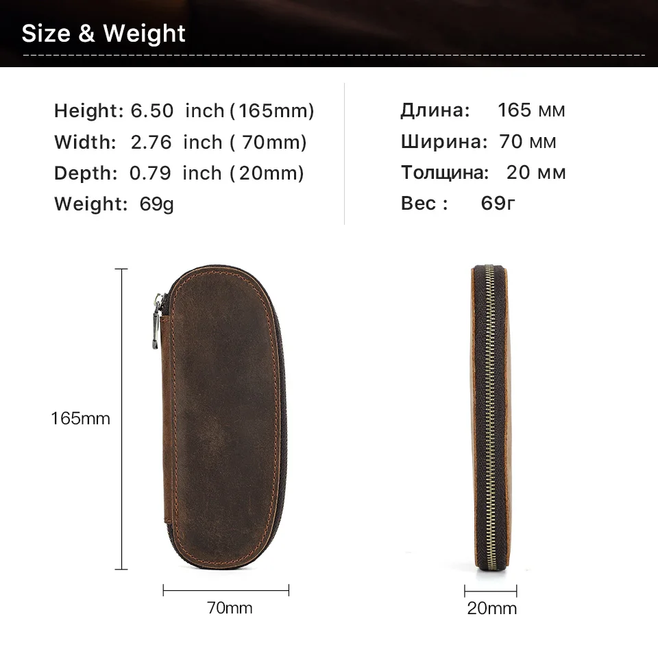 Luxury Leather Pencil Case Zipper Retro Fountain Pen Pouch Bag For Ofiice School Students Boys Girls Cowhide Men Pen Holder