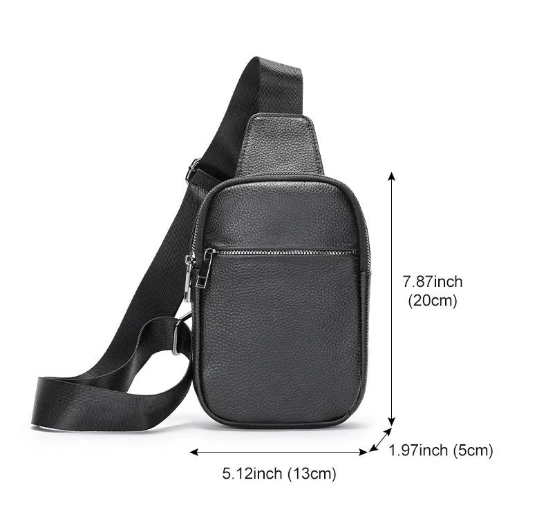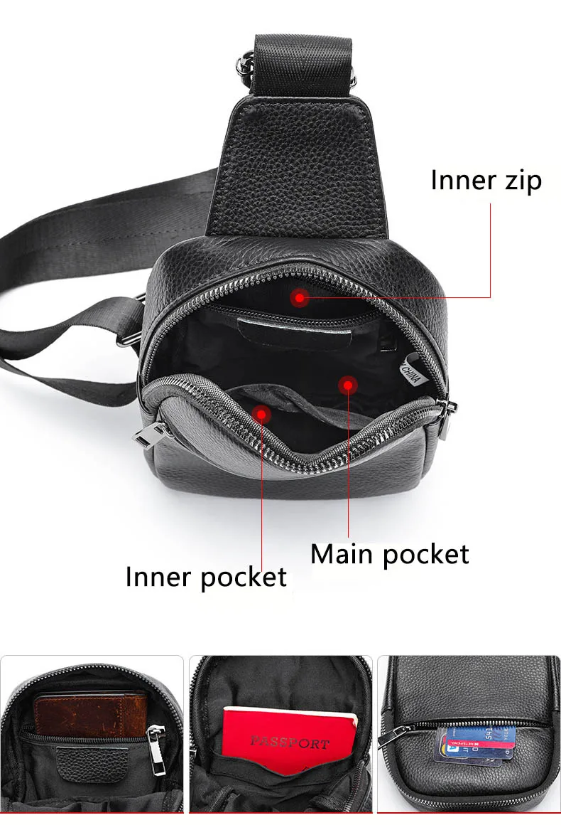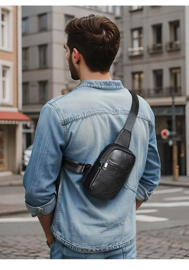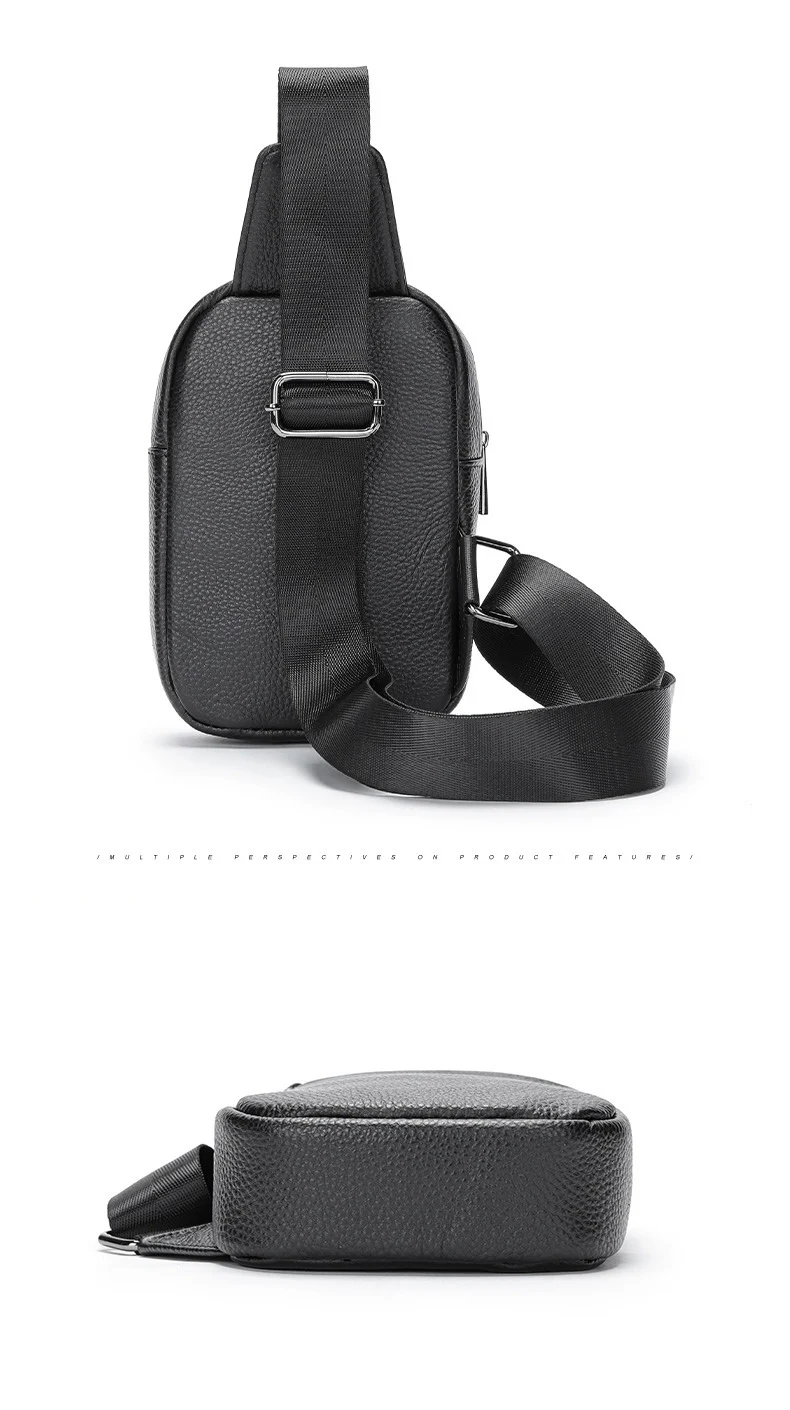 Male Chest Bags Genuine Leather Crossbody Bag Men Sling Chest Pack for Men Chest Bag Leather Casual Men One Shoulder Bag Black