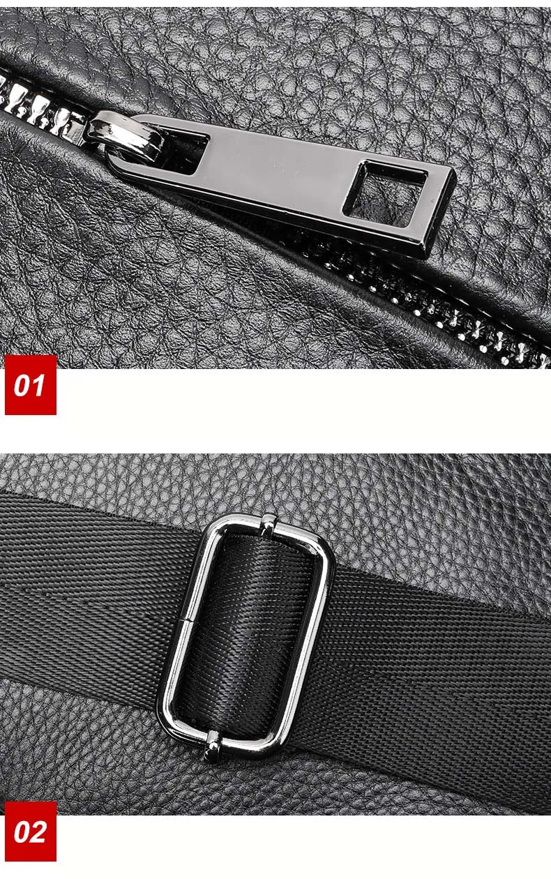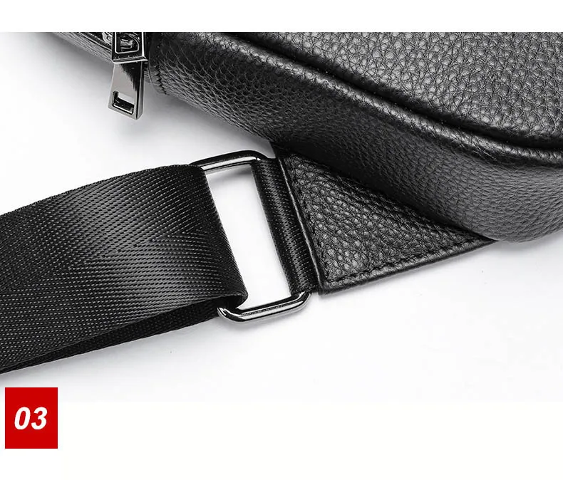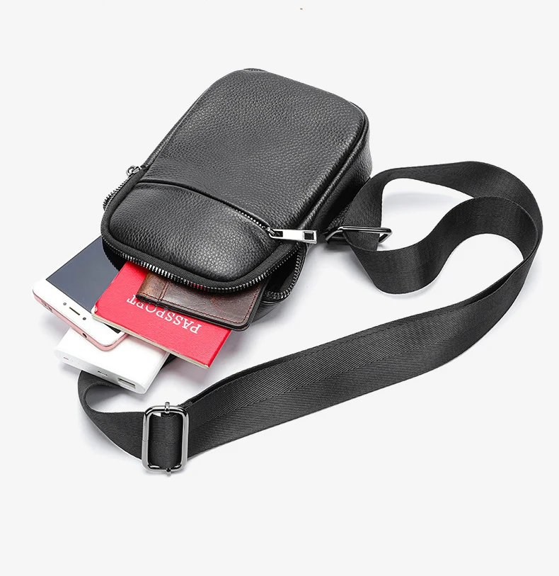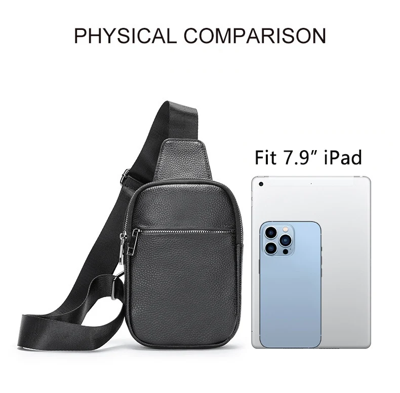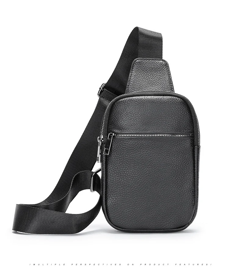 Male Chest Bags Genuine Leather Crossbody Bag Men Sling Chest Pack for Men Chest Bag Leather Casual Men One Shoulder Bag Black