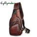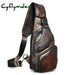 Men Original Crazy horse Leather Casual Triangle Crossbody Chest Sling Bag Design Travel One Shoulder Bag Daypack Male 8015