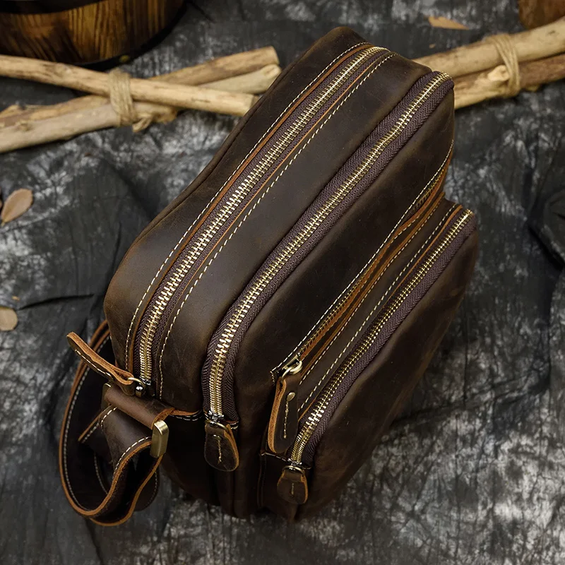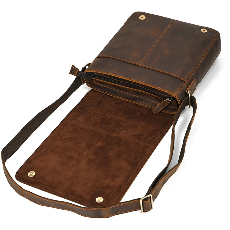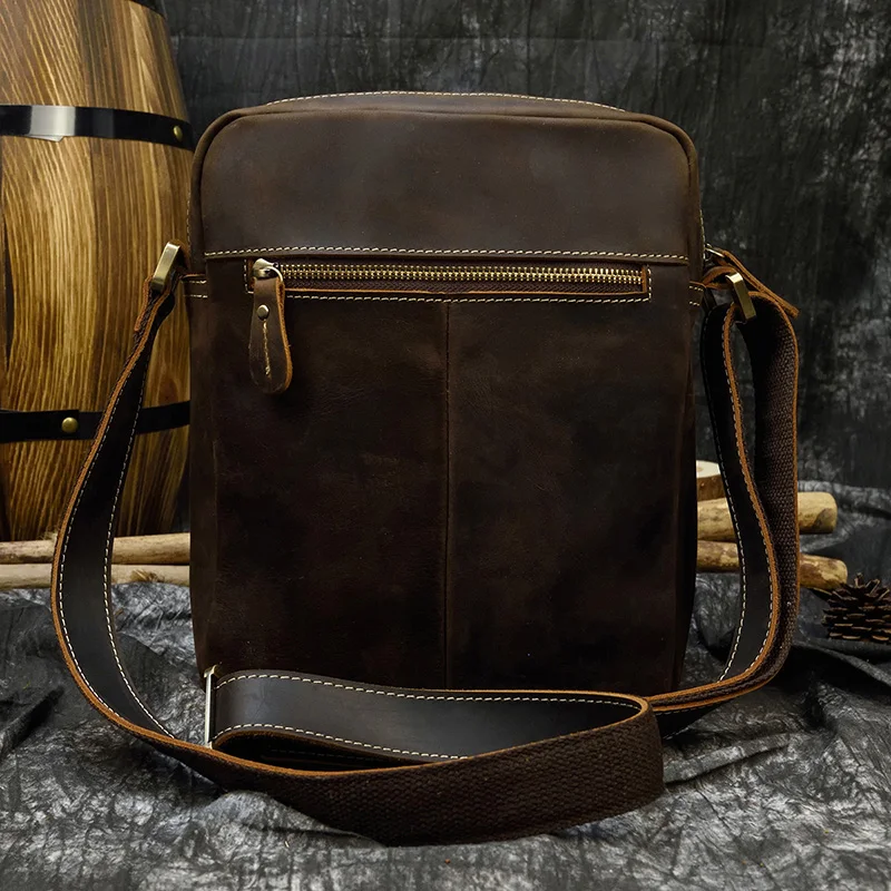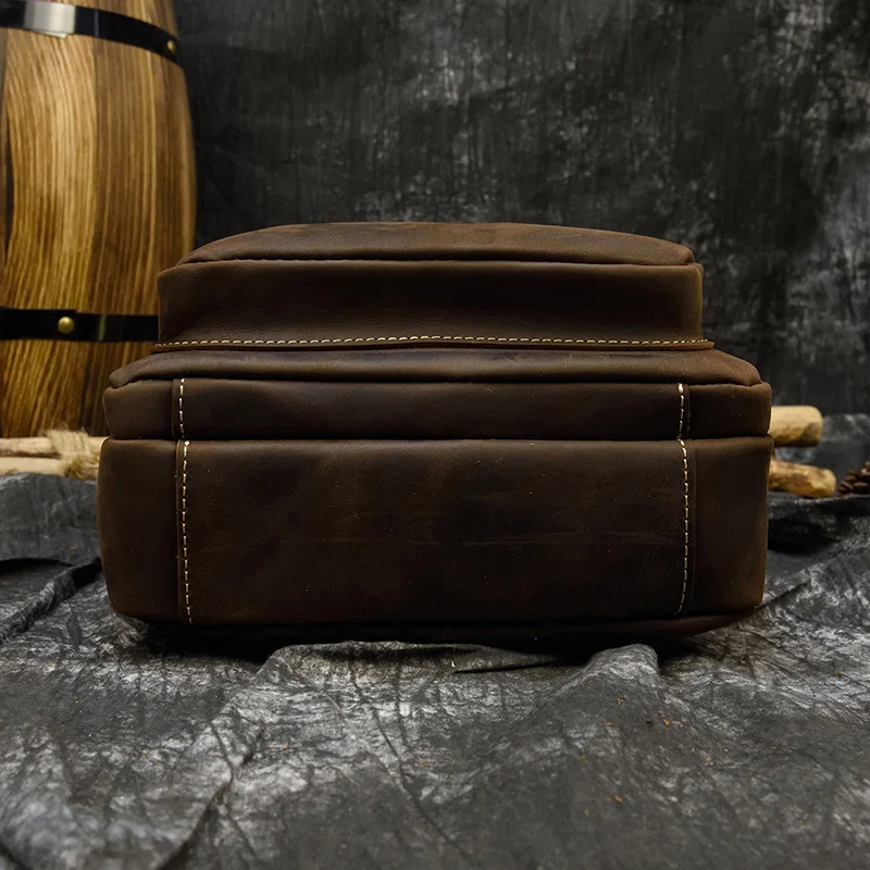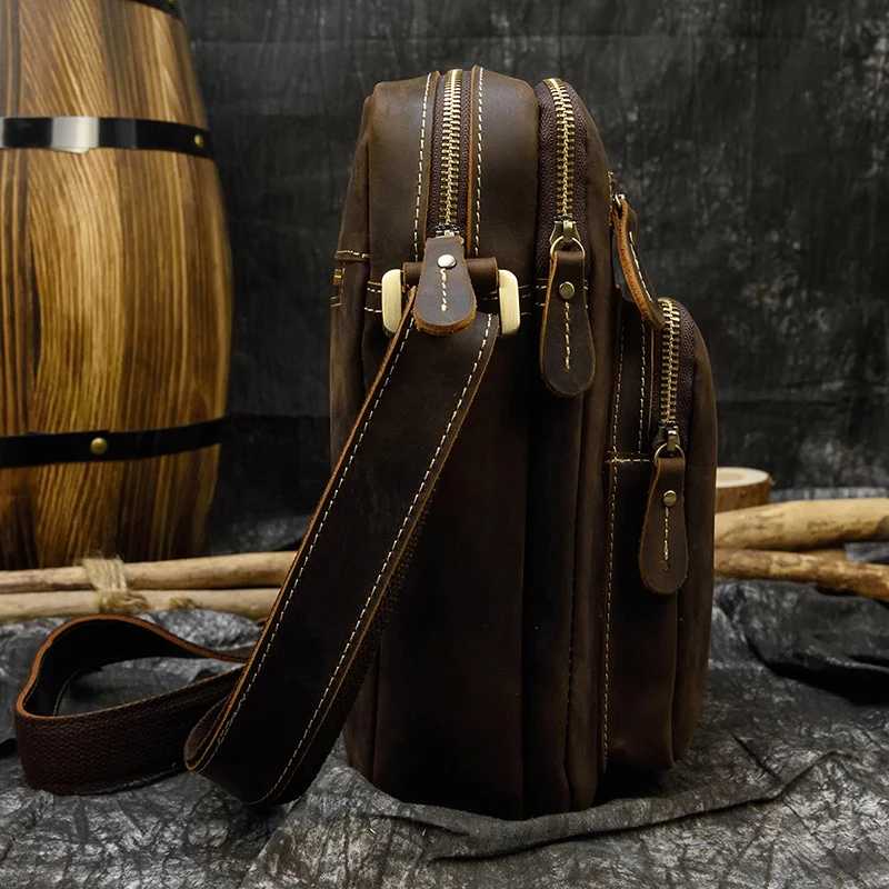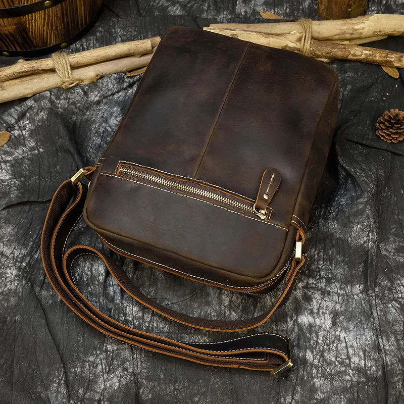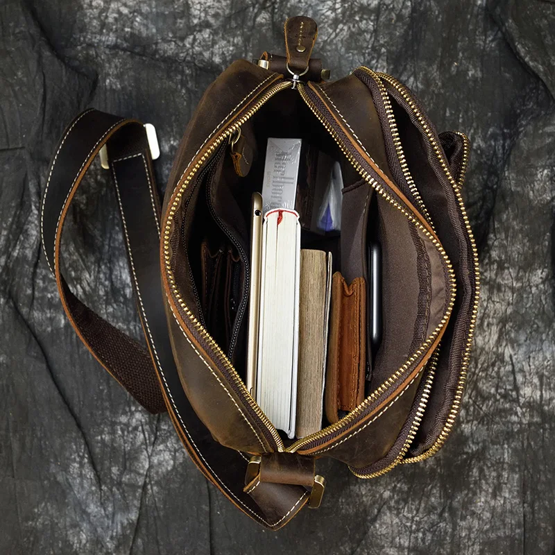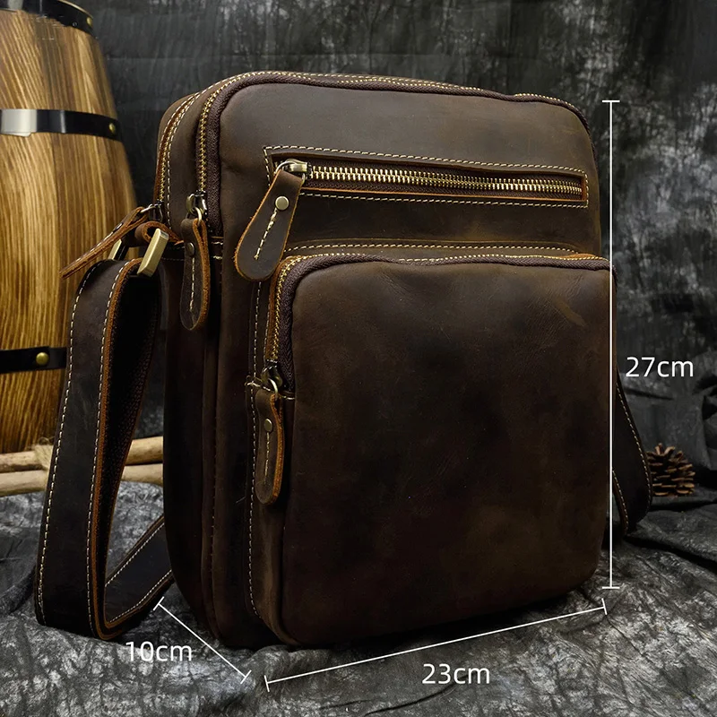 Men's Crazy Horse Leather Shoulder Bag iPad Genuine Leather Messenger Bag Vintage Casual Travel Bag Durable Leather Book Bag