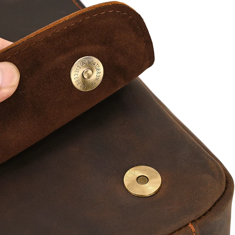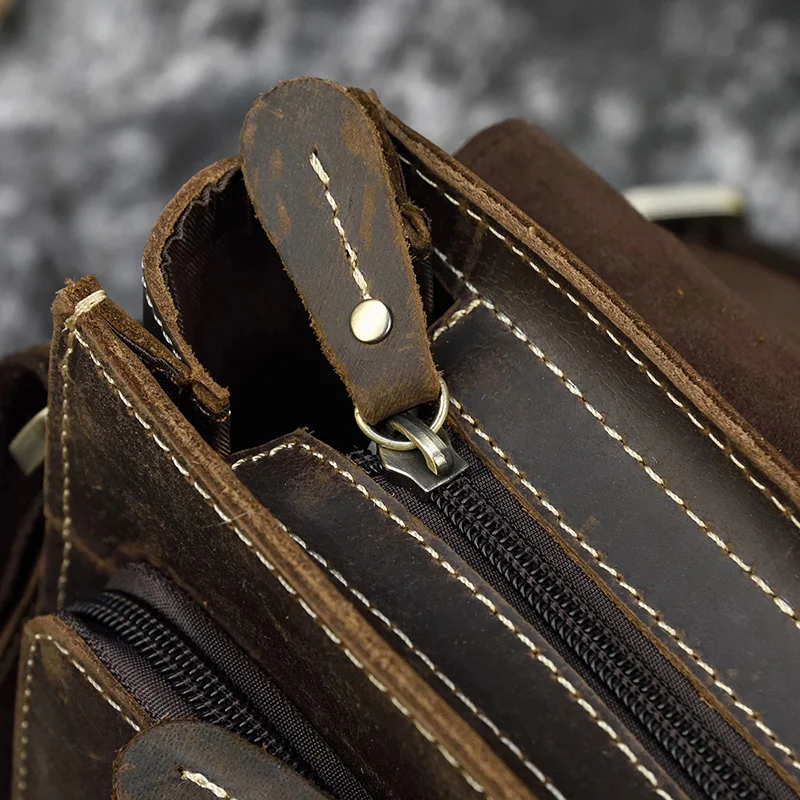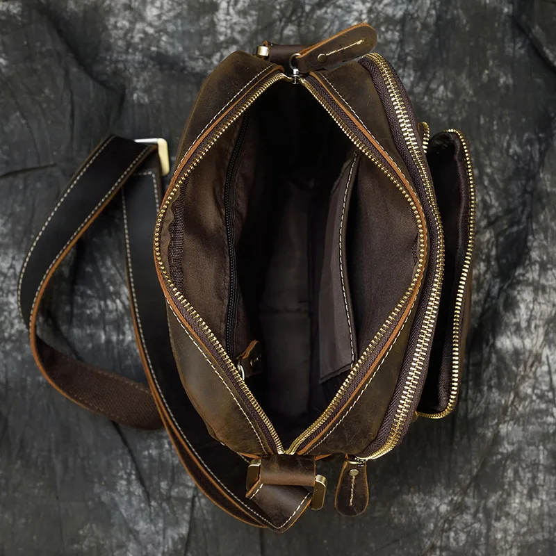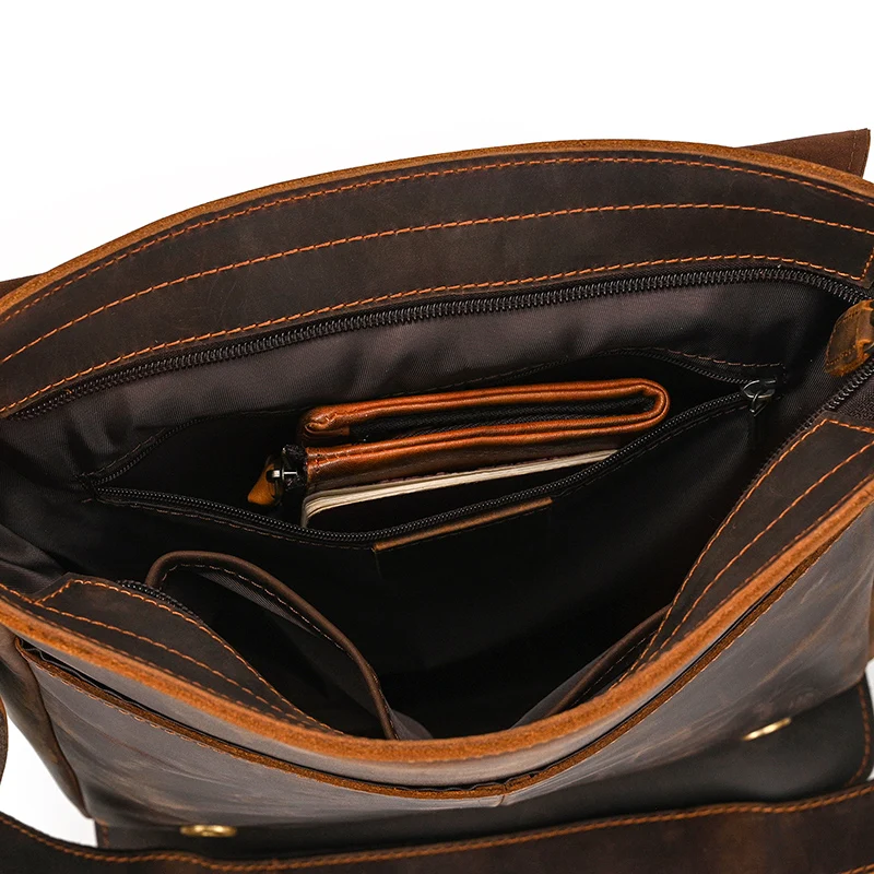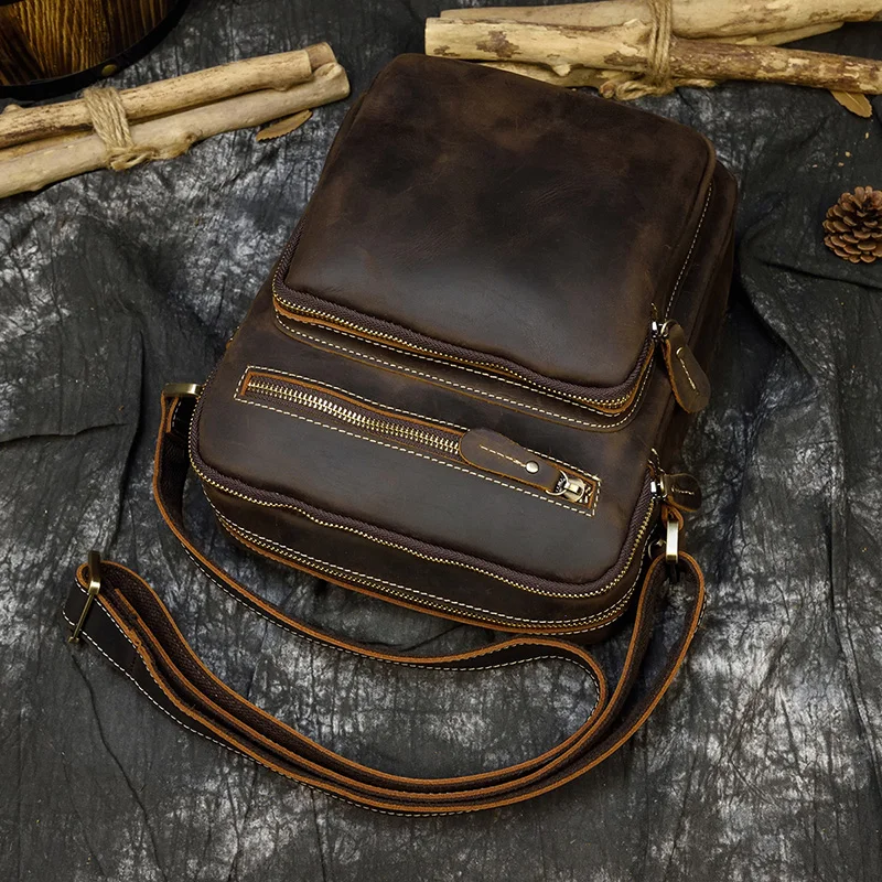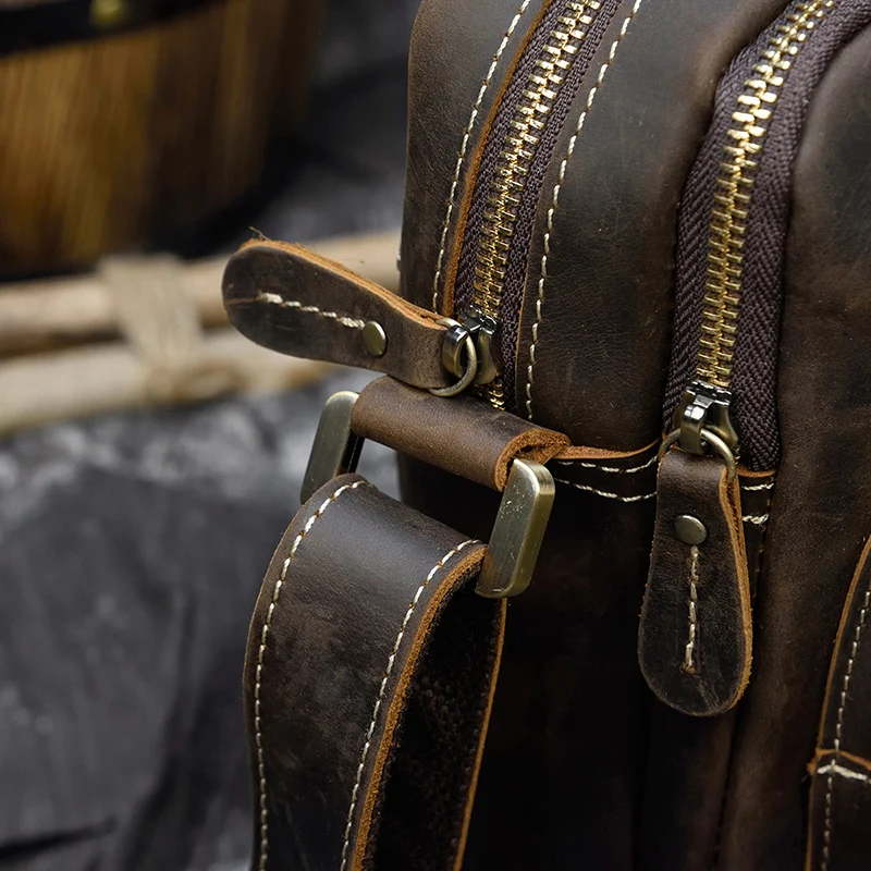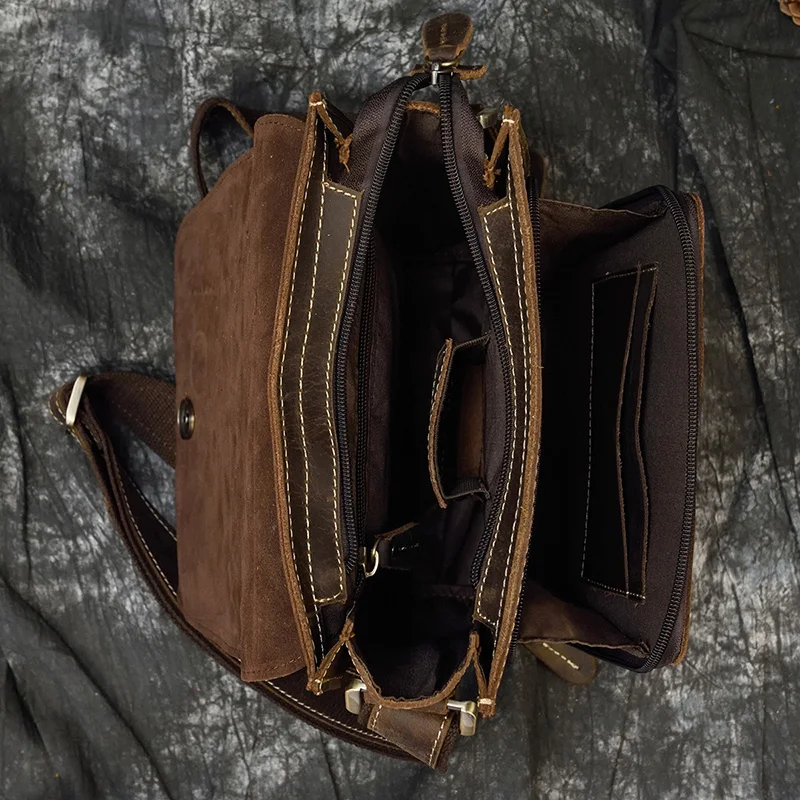 Men's Crazy Horse Leather Shoulder Bag iPad Genuine Leather Messenger Bag Vintage Casual Travel Bag Durable Leather Book Bag