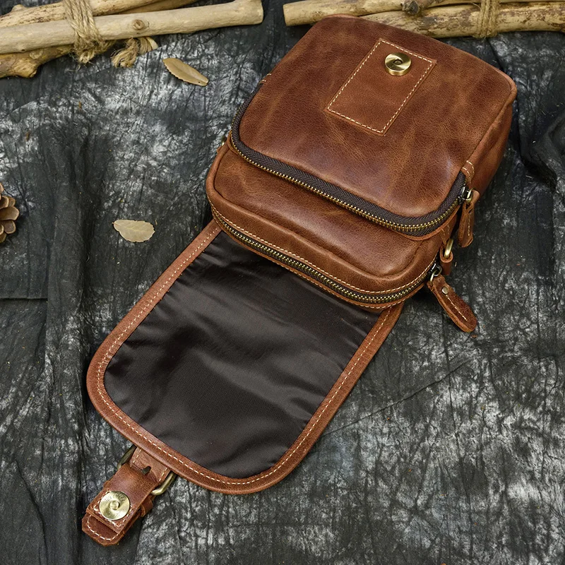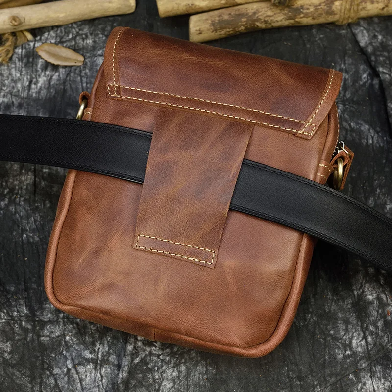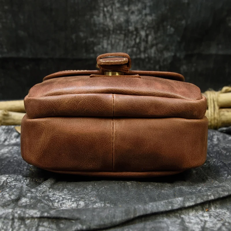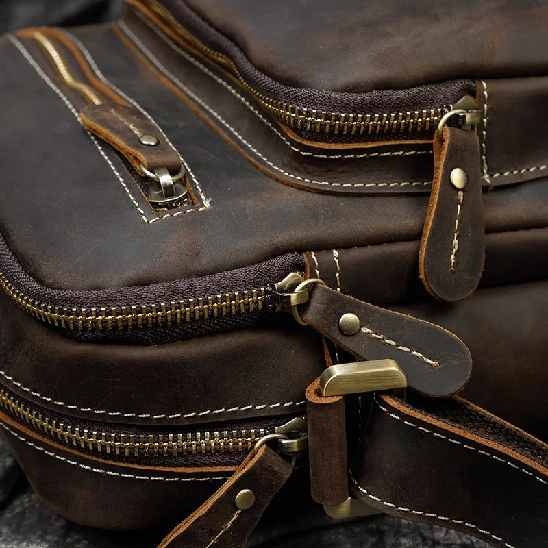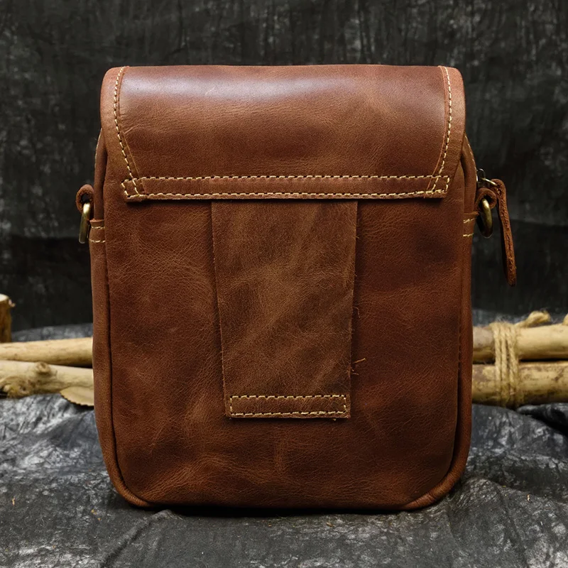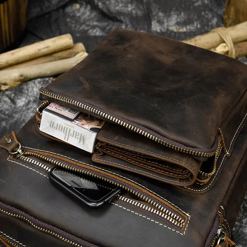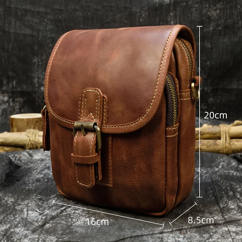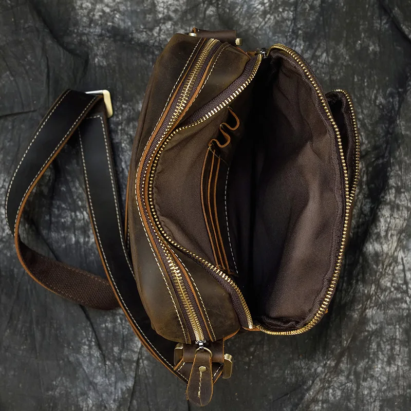 Men's Crazy Horse Leather Shoulder Bag iPad Genuine Leather Messenger Bag Vintage Casual Travel Bag Durable Leather Book Bag