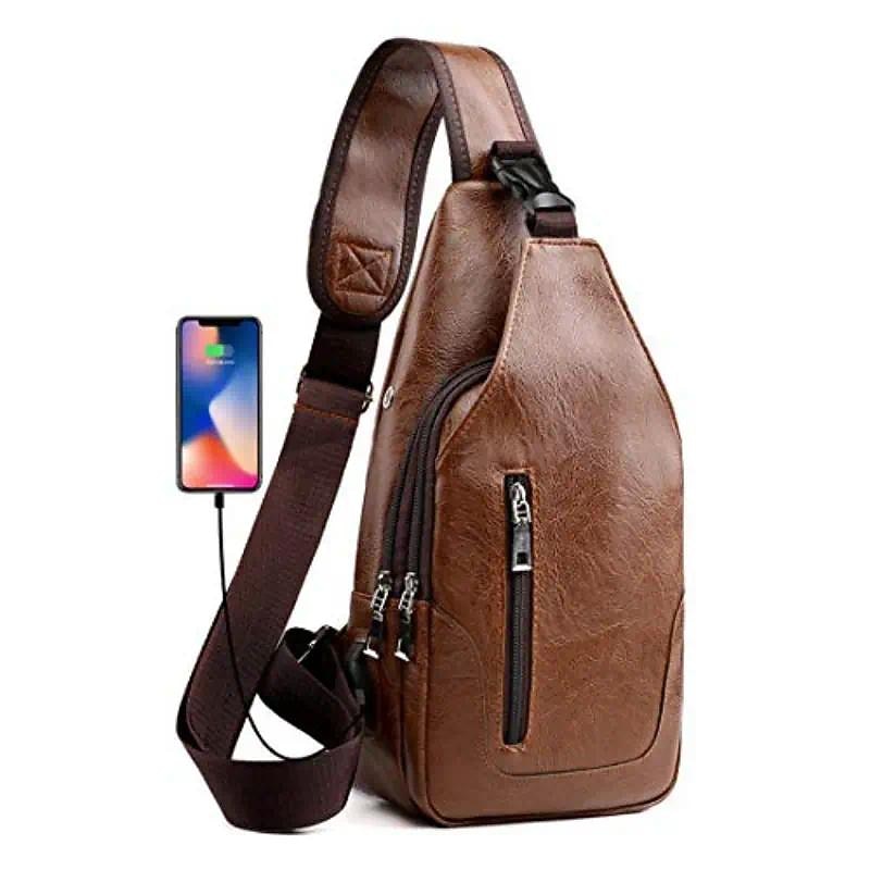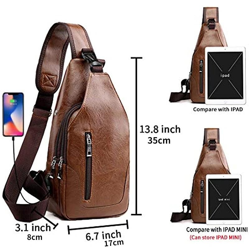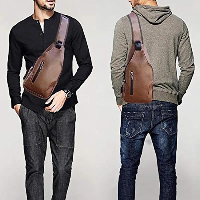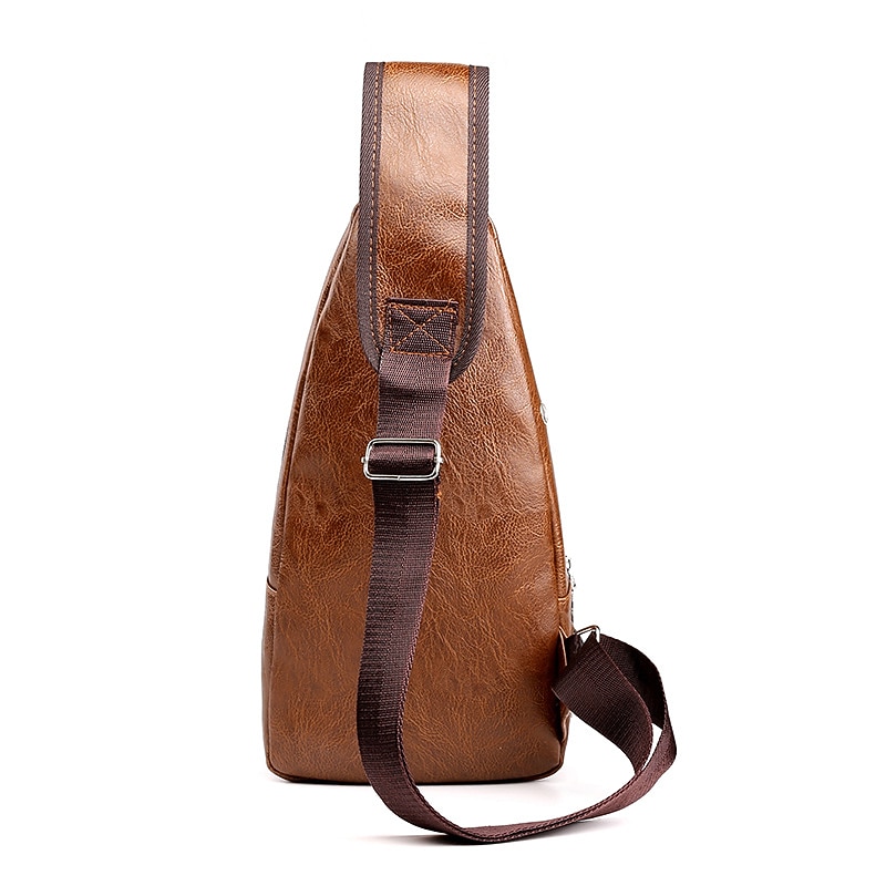 Men's Crossbody Bag Shoulder Bag Chest Bag Leather Outdoor Daily Holiday Zipper Large Capacity Waterproof Lightweight