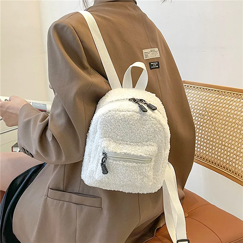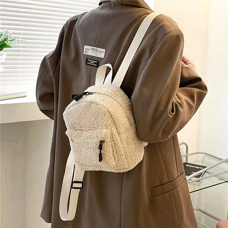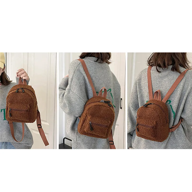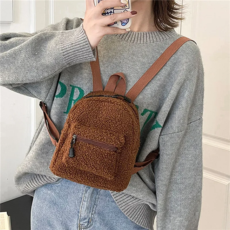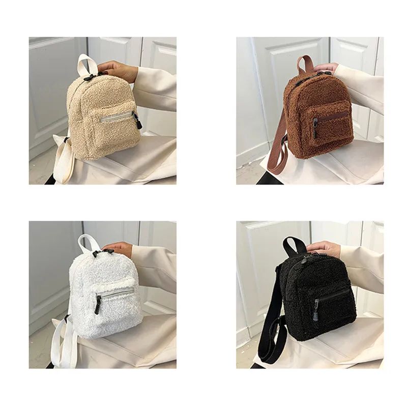 Mini Women's Backpacks Trend 2023 Plush Female Bag Solid Small Feminina Backpack School Bags For Teen Girls Knapsack