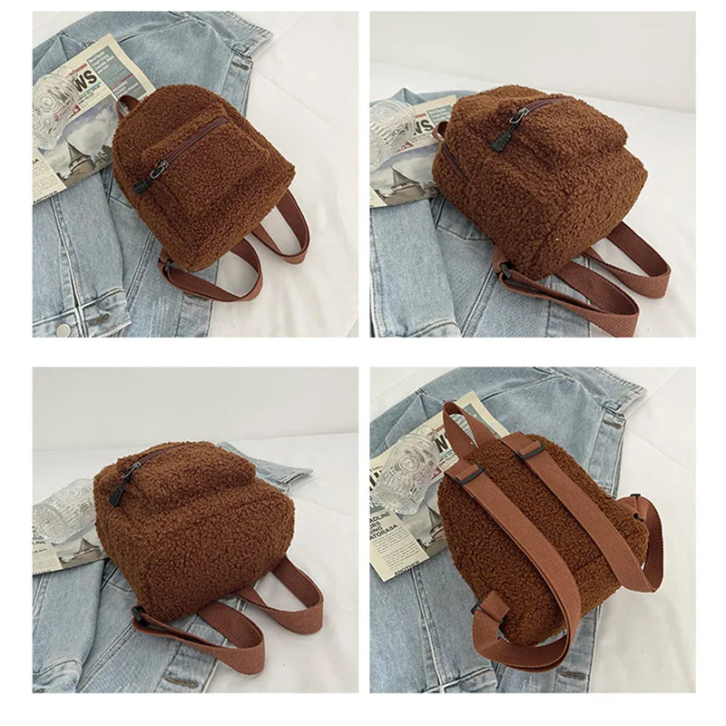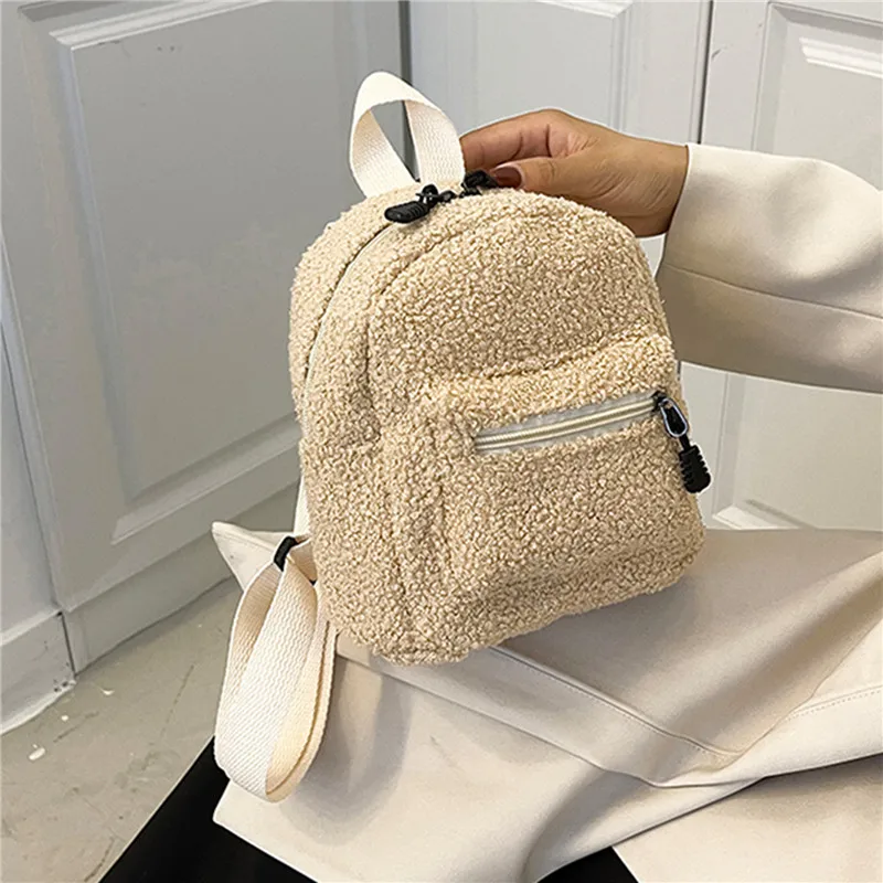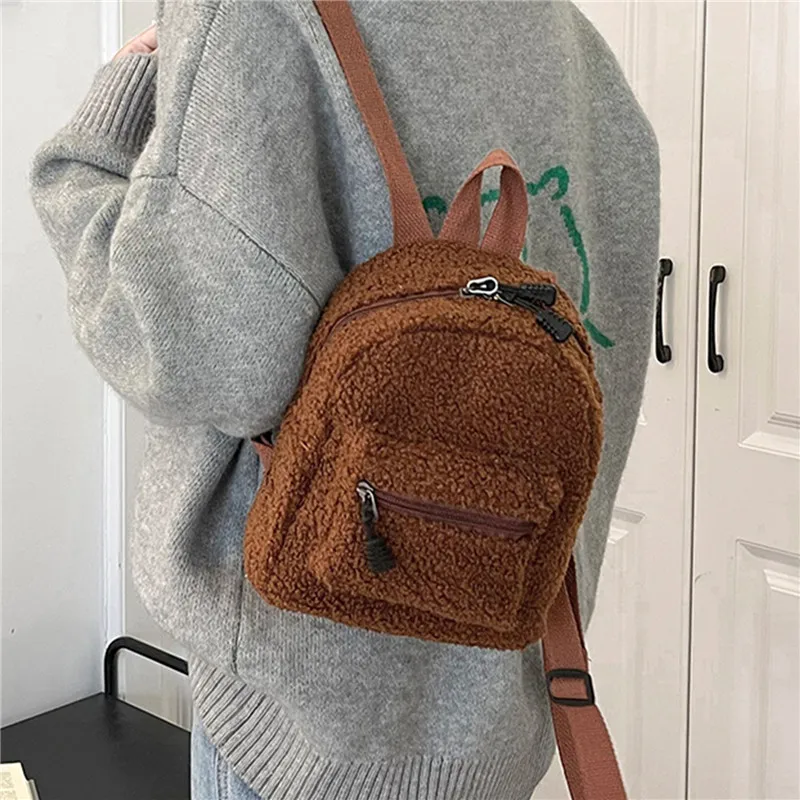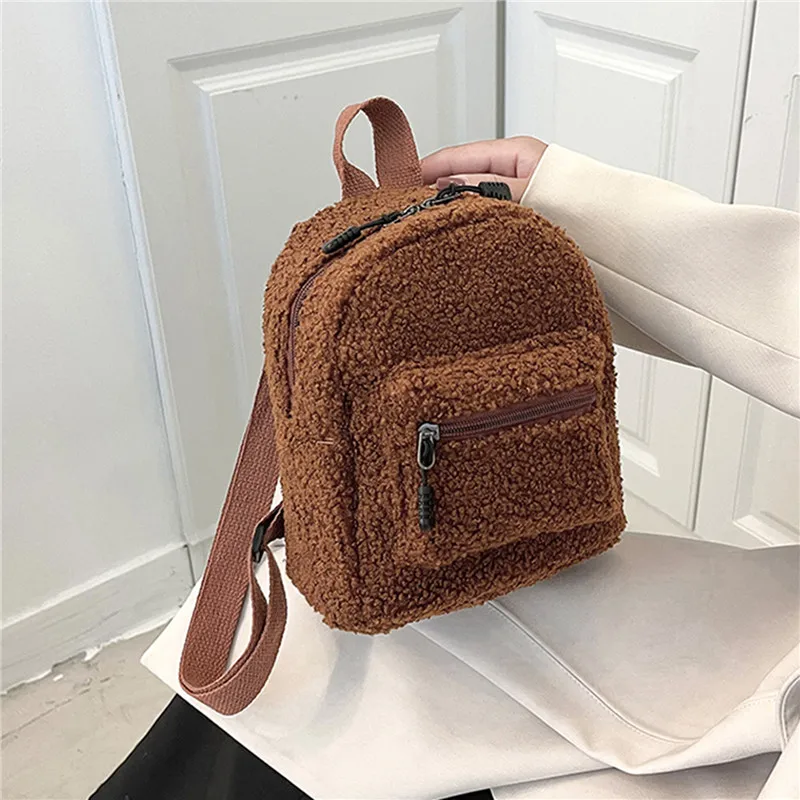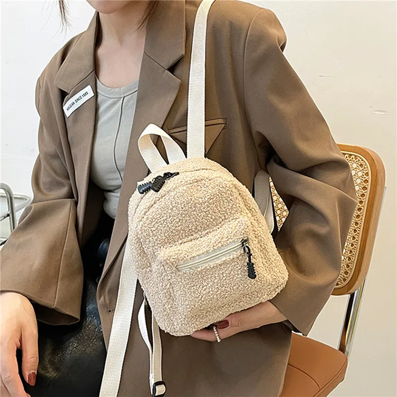 Mini Women's Backpacks Trend 2023 Plush Female Bag Solid Small Feminina Backpack School Bags For Teen Girls Knapsack