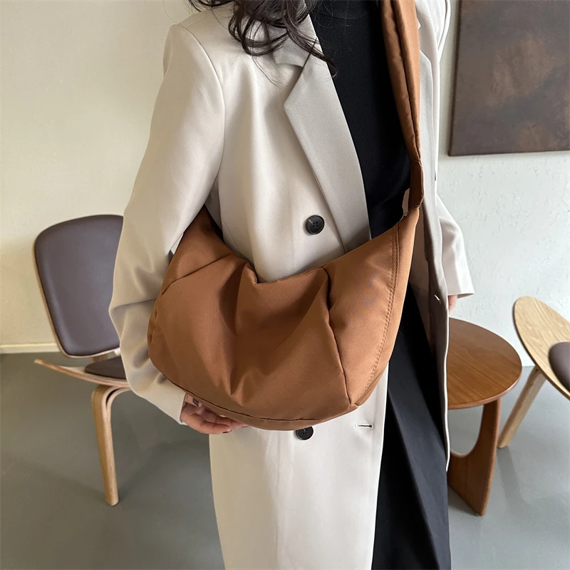Casual Nylon Women Bags Shoulder Bag Woman Crossbody Bag Hobo Bags Dumpling Bag Large Capacity Female Half Moon Totes