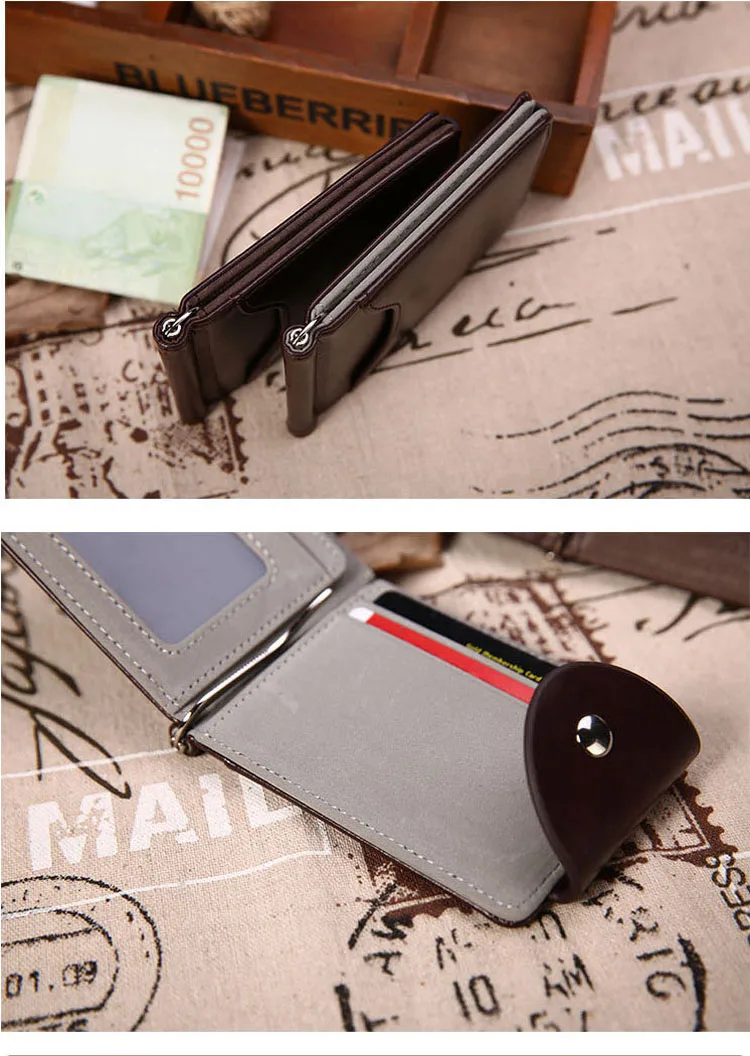 Cyflymder New Fashion Mini Men's Leather Money Clip Wallet Pocket Purse with Metal Clamp Man Slim Credit Card Bag ID Holder for Male